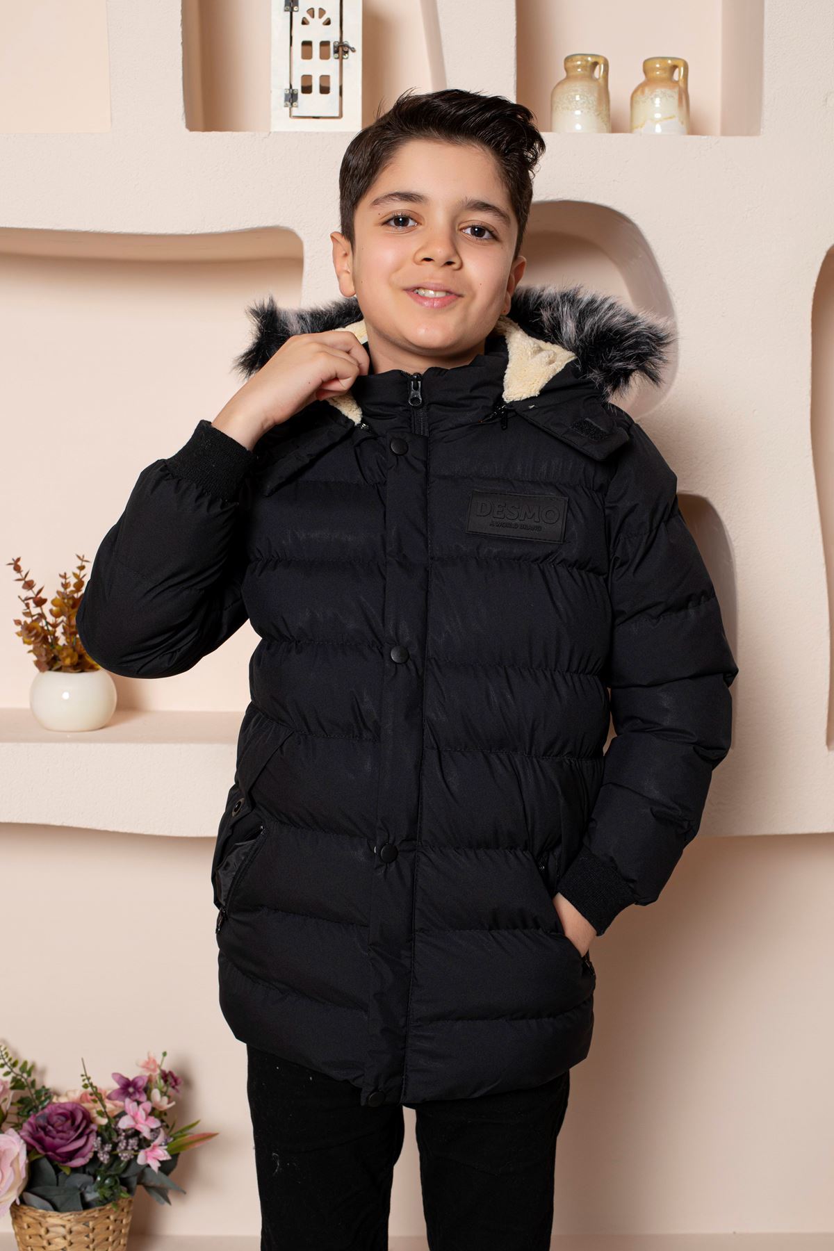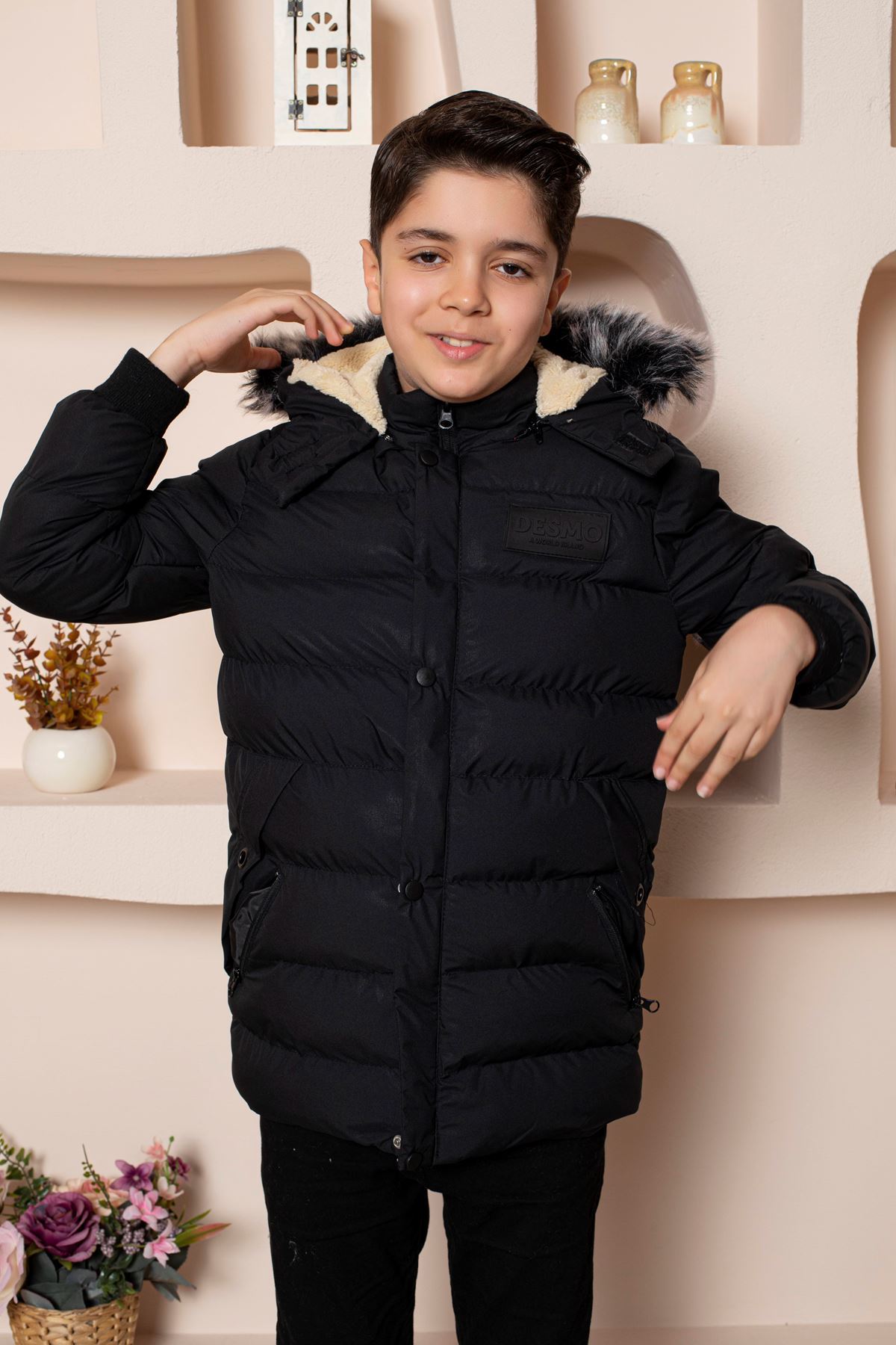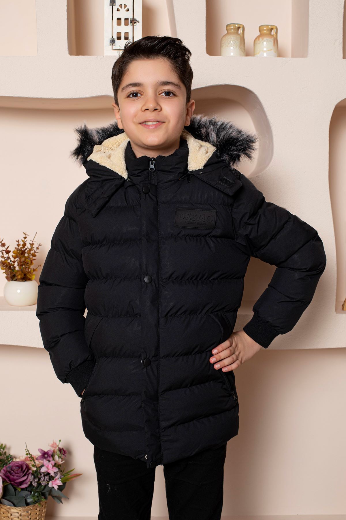 Kapşonlu İçi Yünlü Erkek Çocuk Şişme Mont