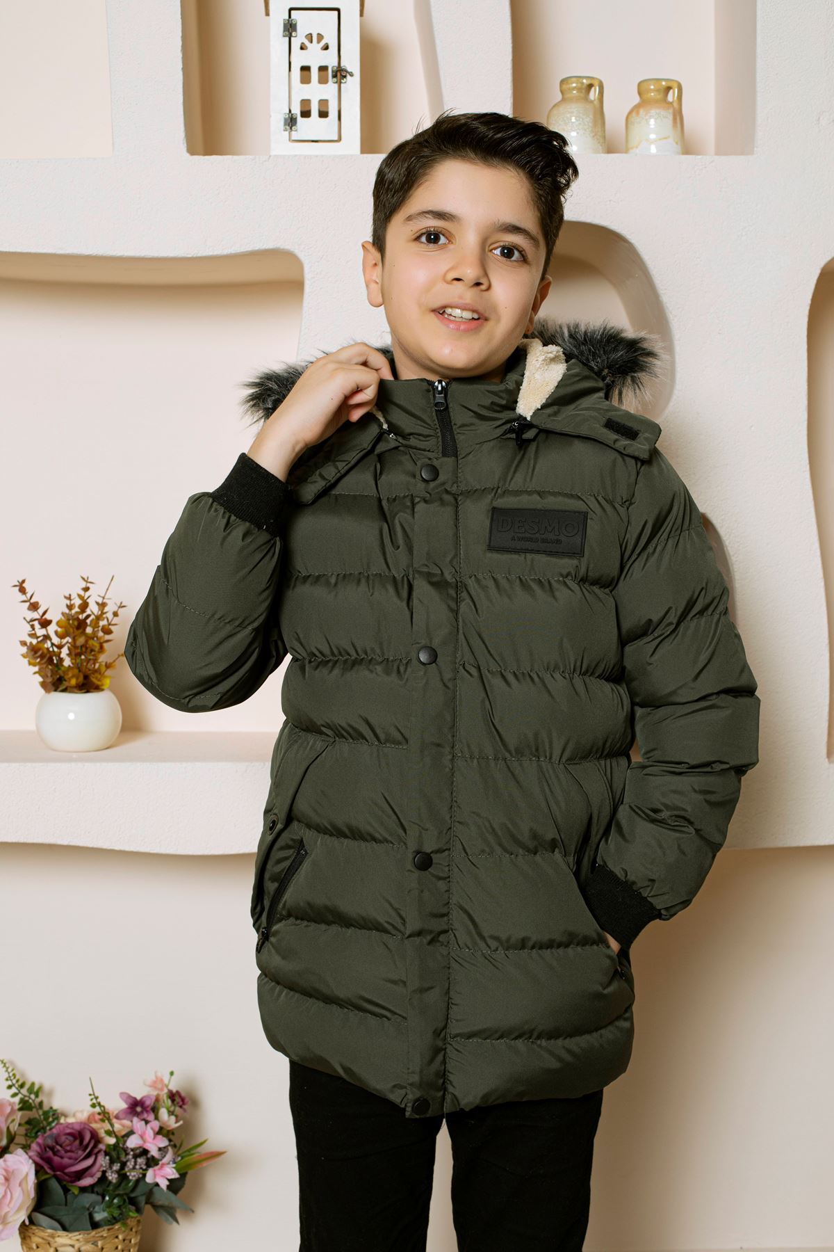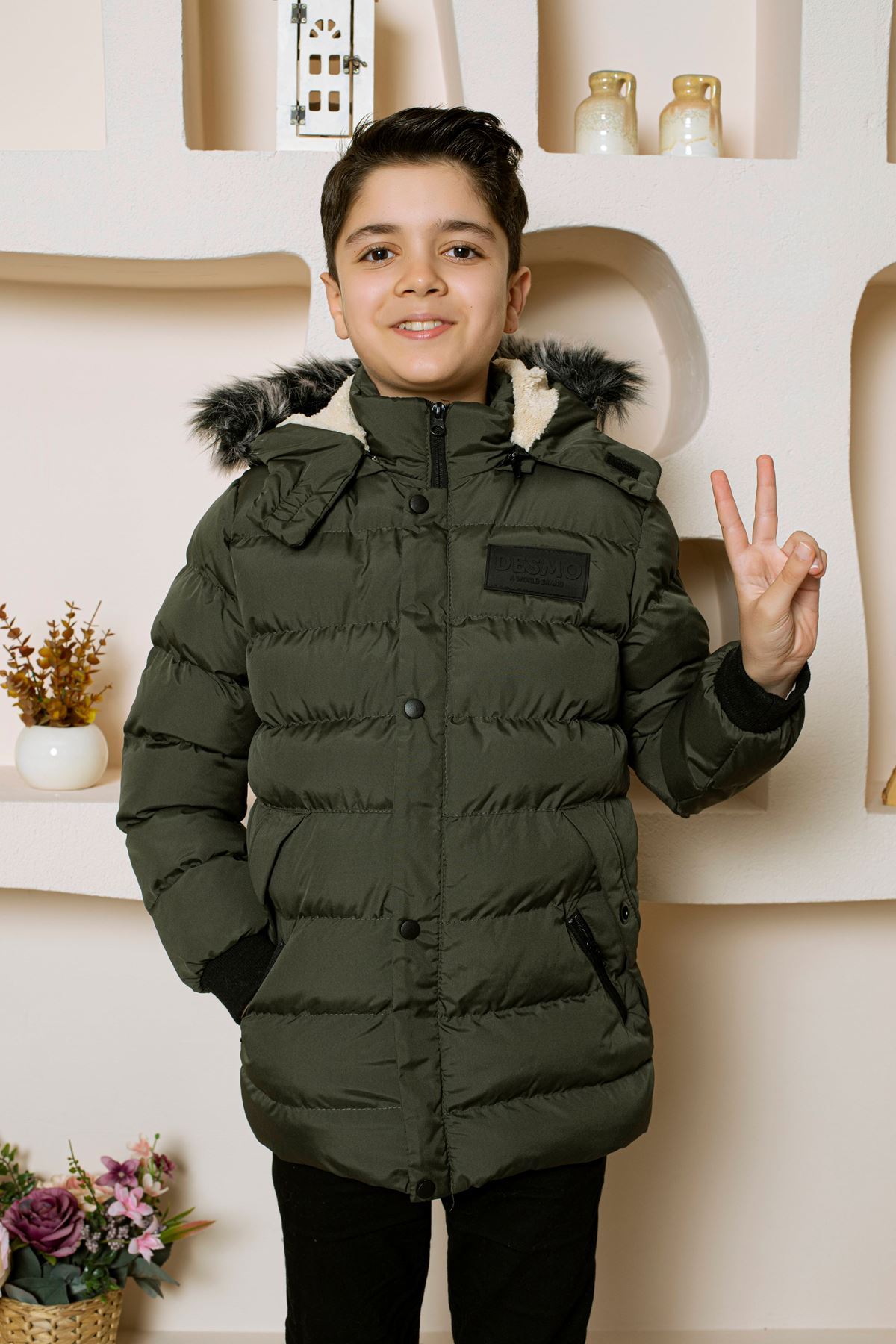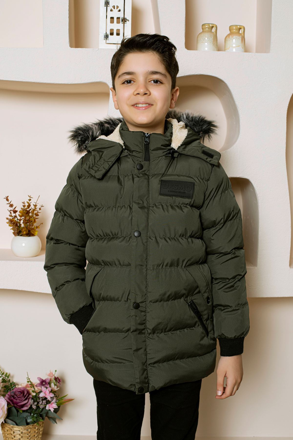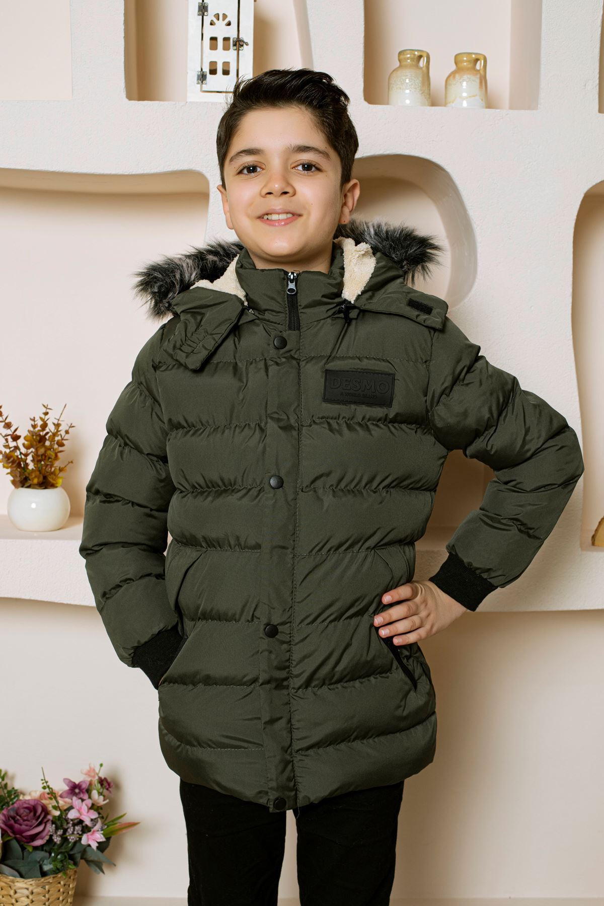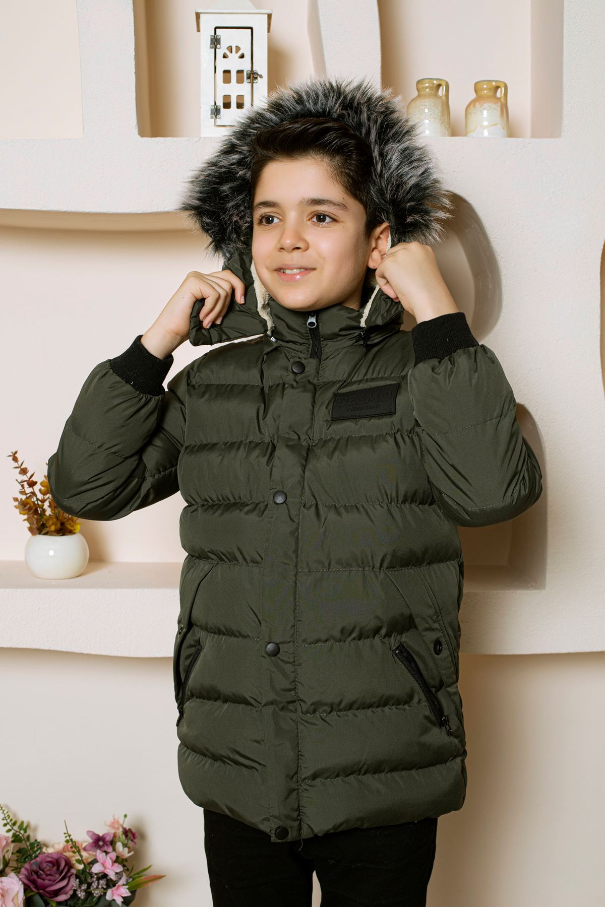 Kapşonlu İçi Yünlü Erkek Çocuk Şişme Mont