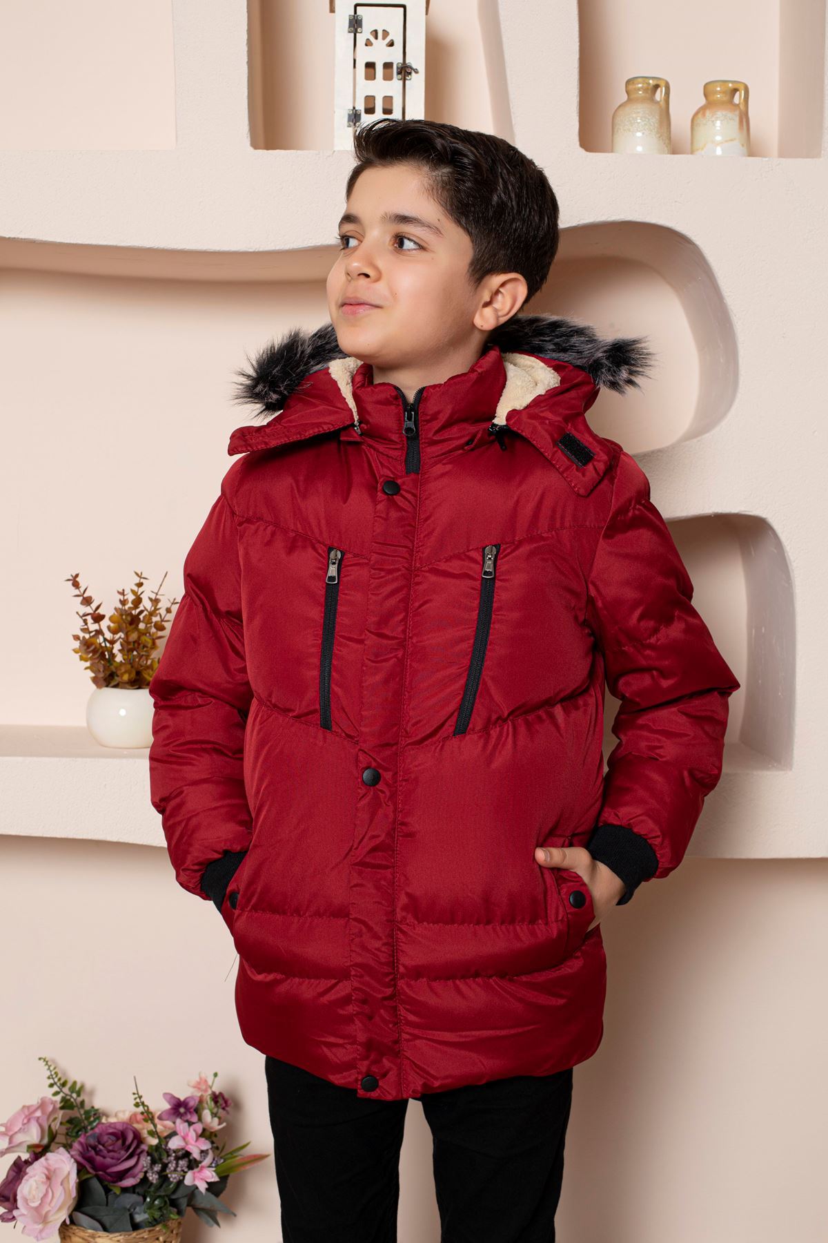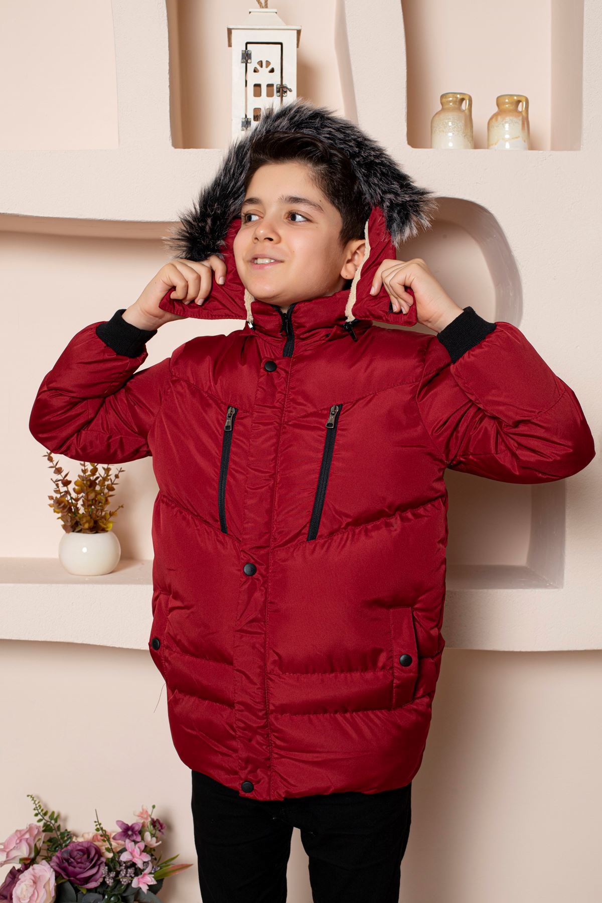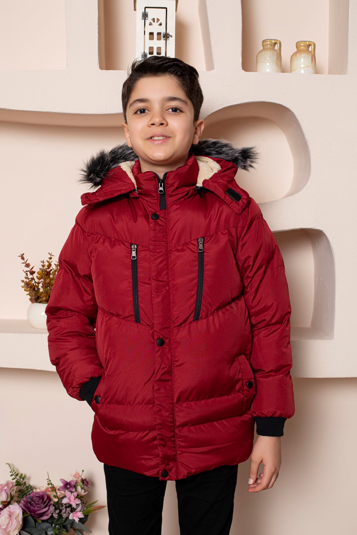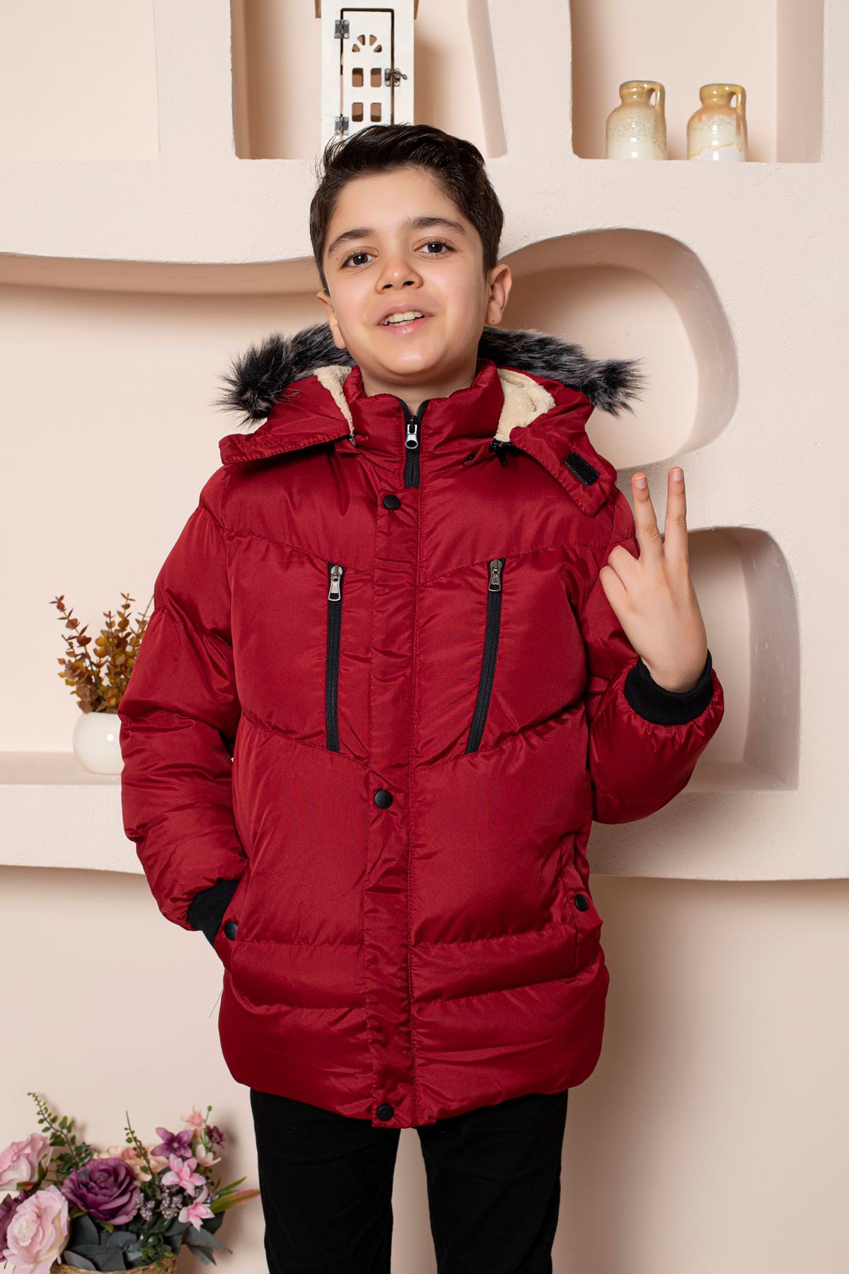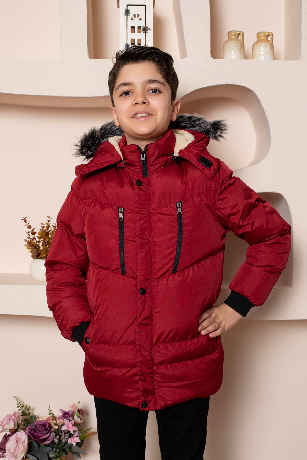 Kapşonlu İçi Yünlü Erkek Çocuk Şişme Mont