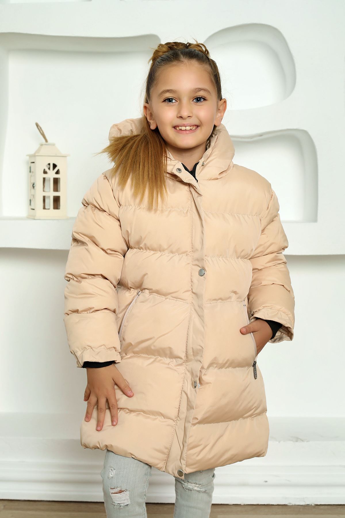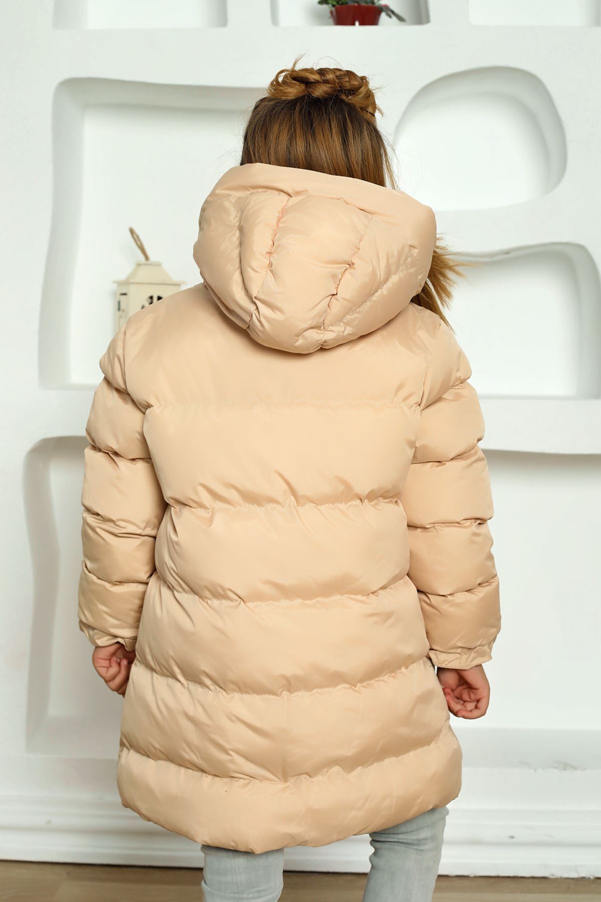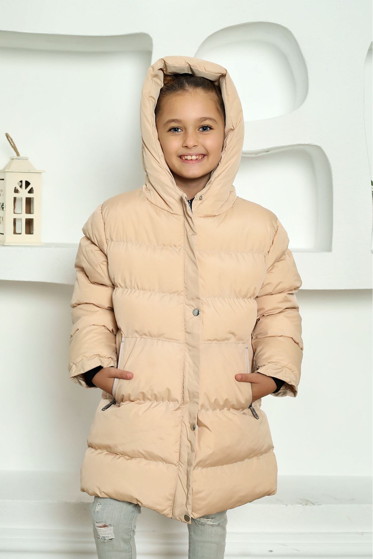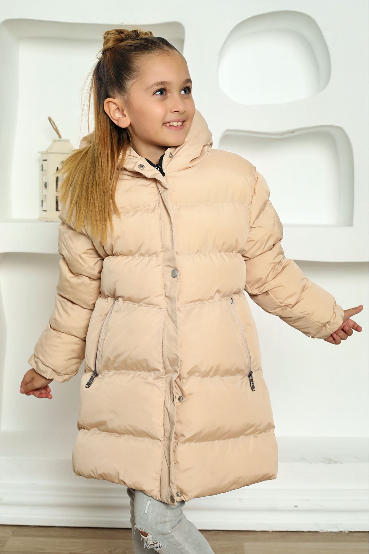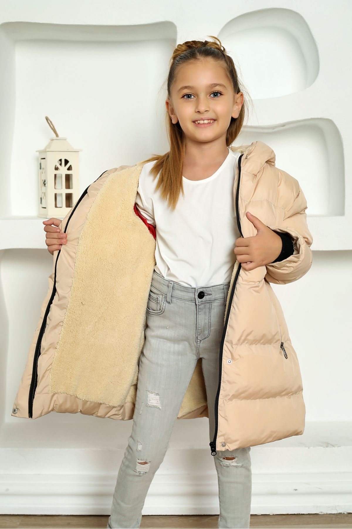 Kapşonlu İçi Yünlü Krem Çocuk Kaban