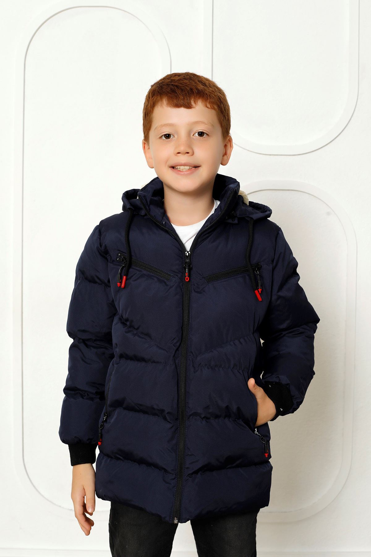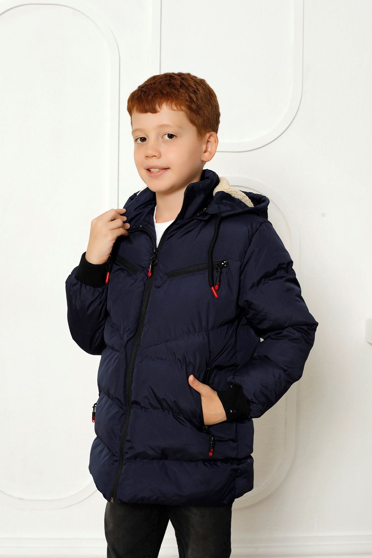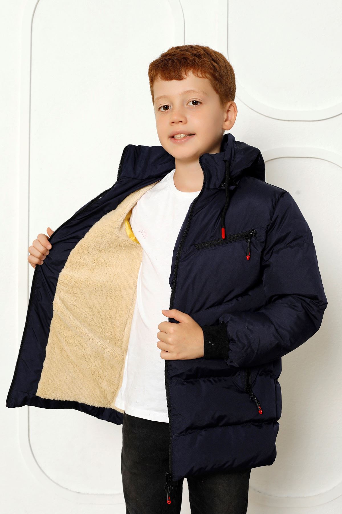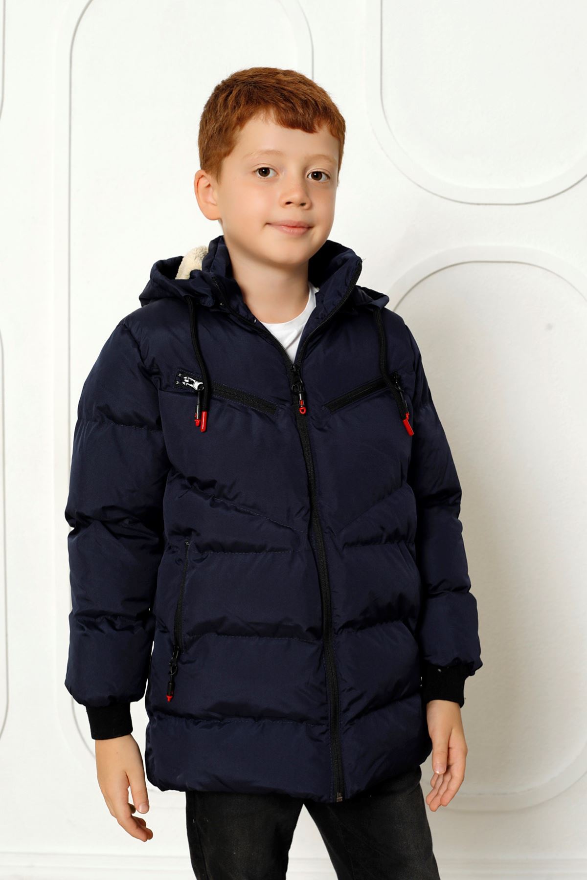 Kapşonlu İçi Yünlü Lacivert Çocuk Kaban