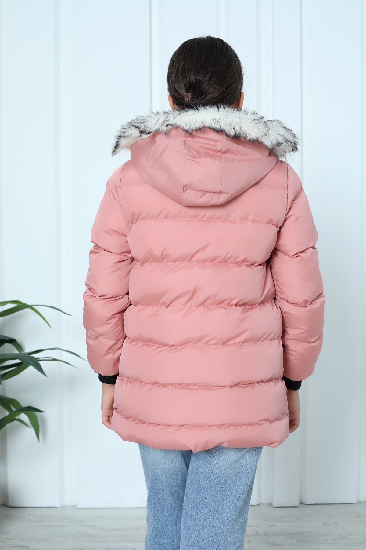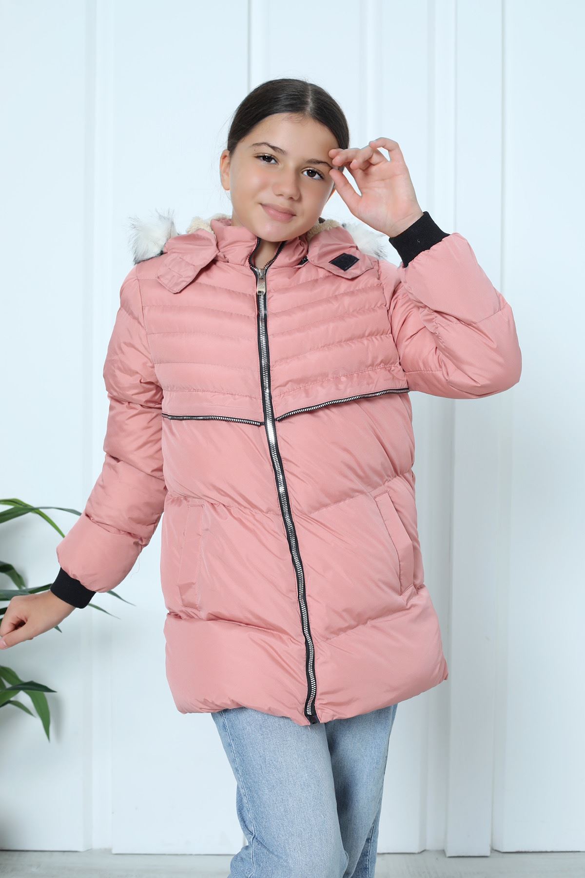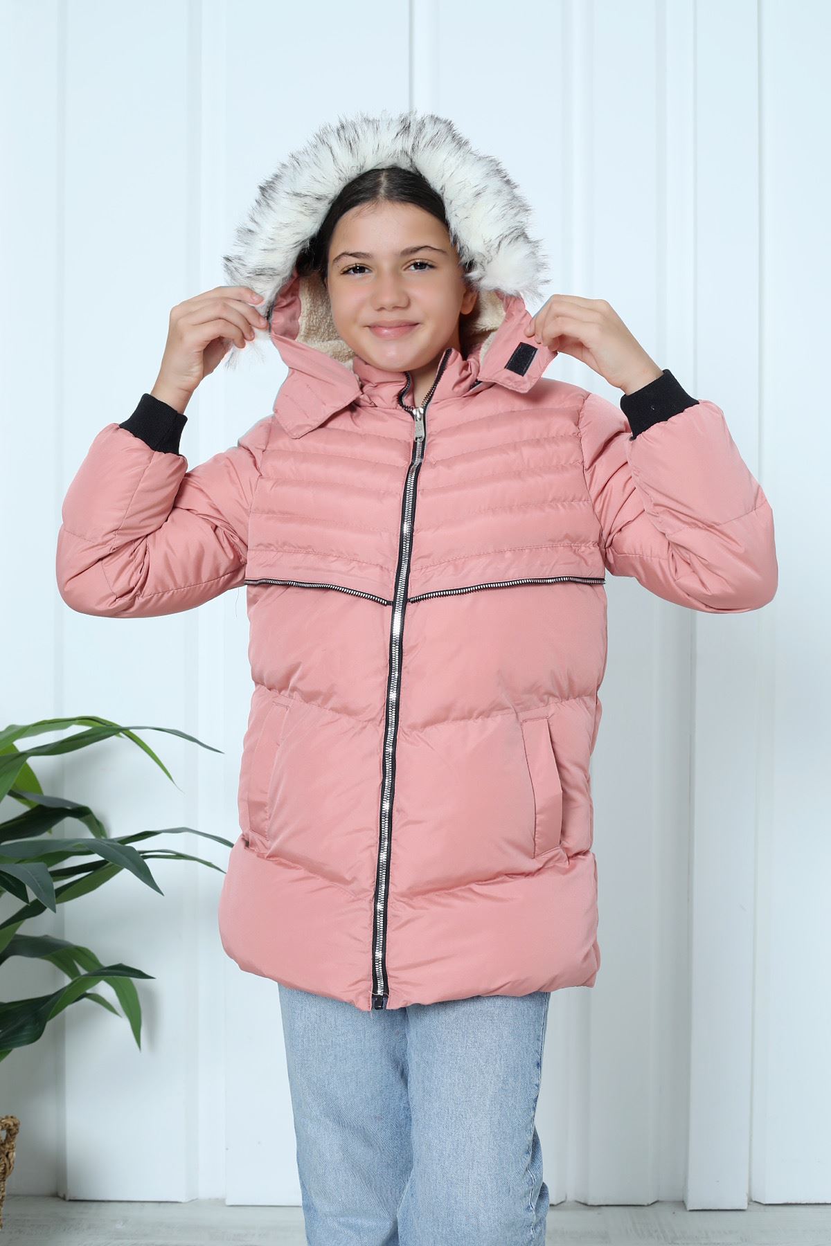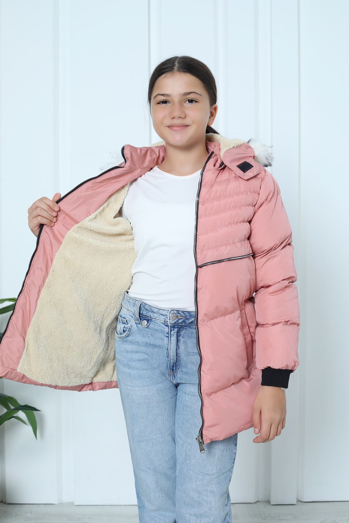 Kapşonlu İçi Yünlü Pudra Çocuk Kaban