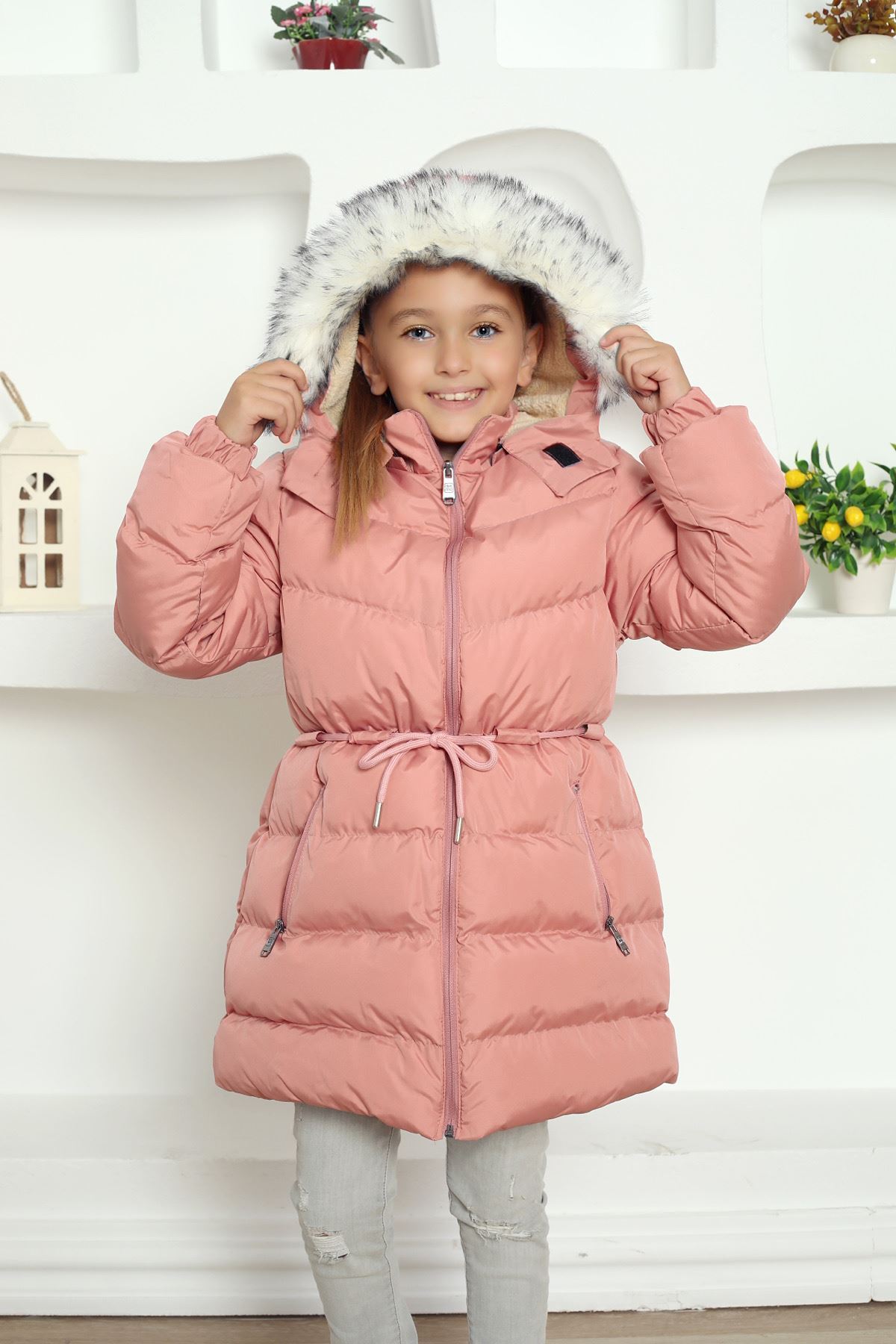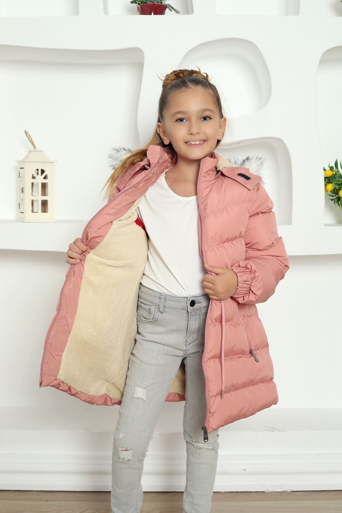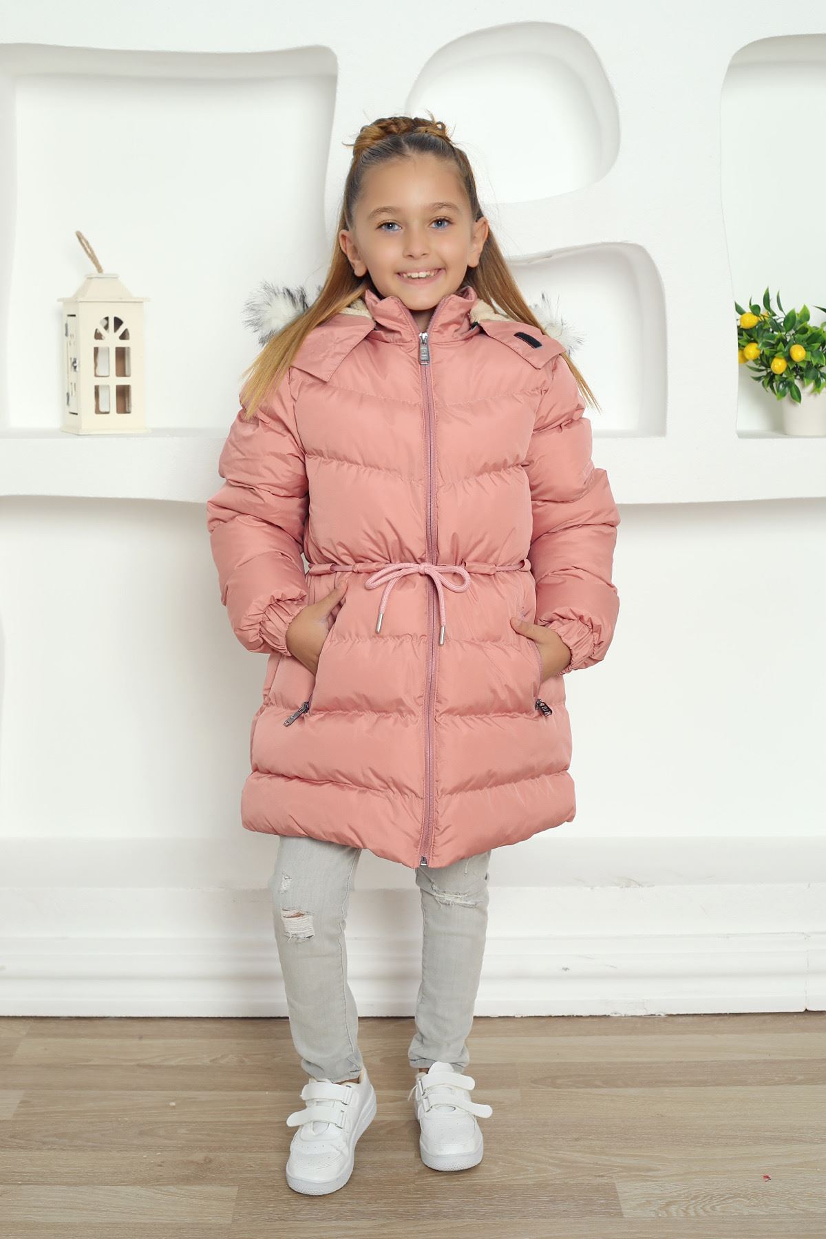 Kapşonlu İçi Yünlü Pudra Çocuk Kaban