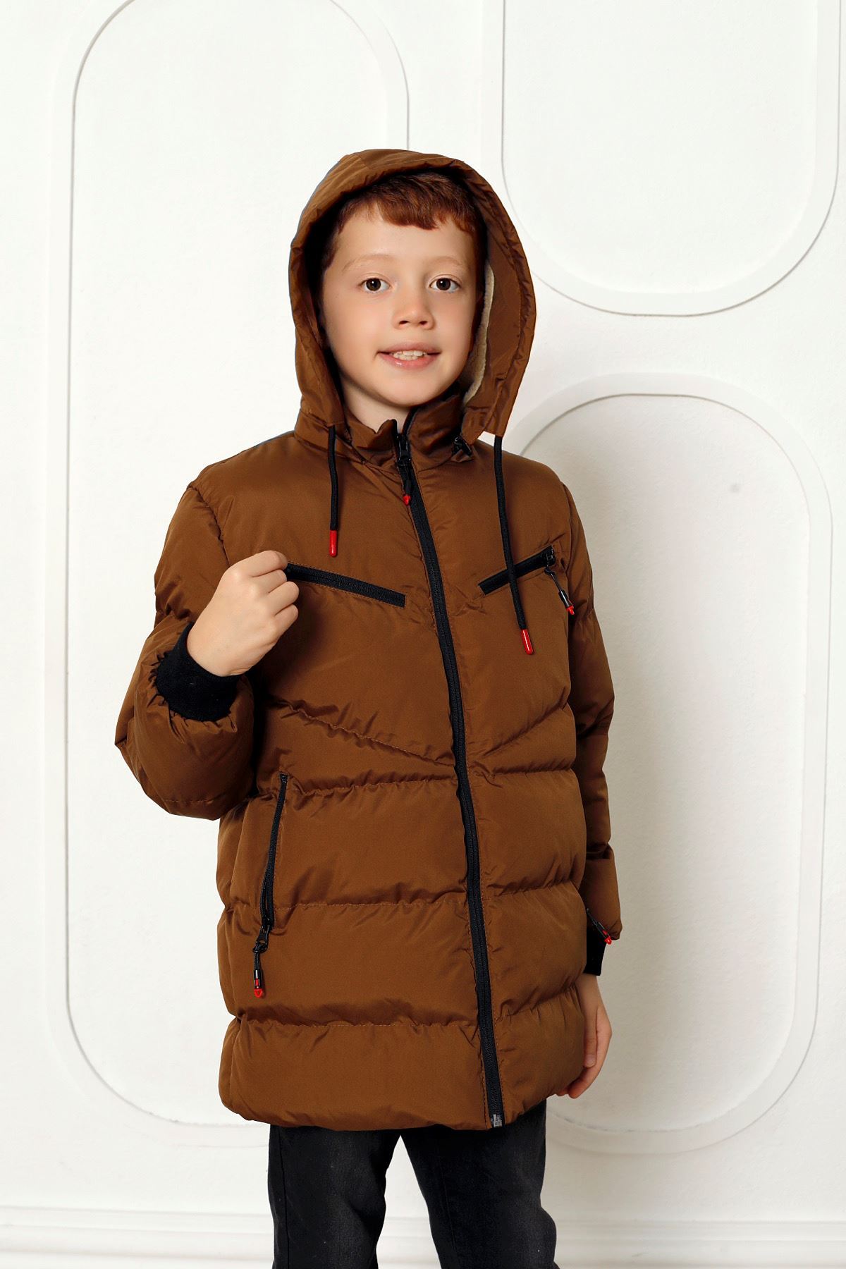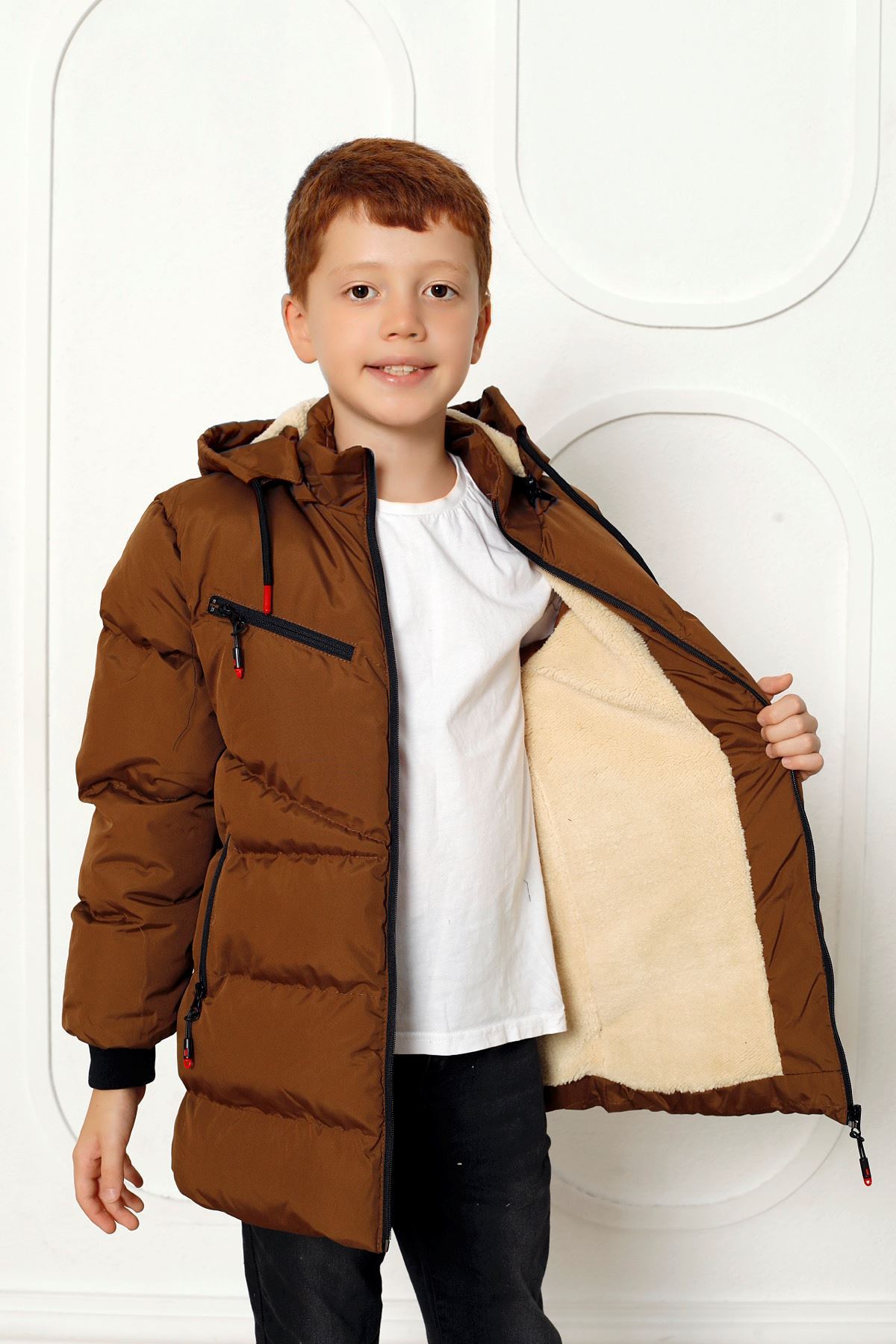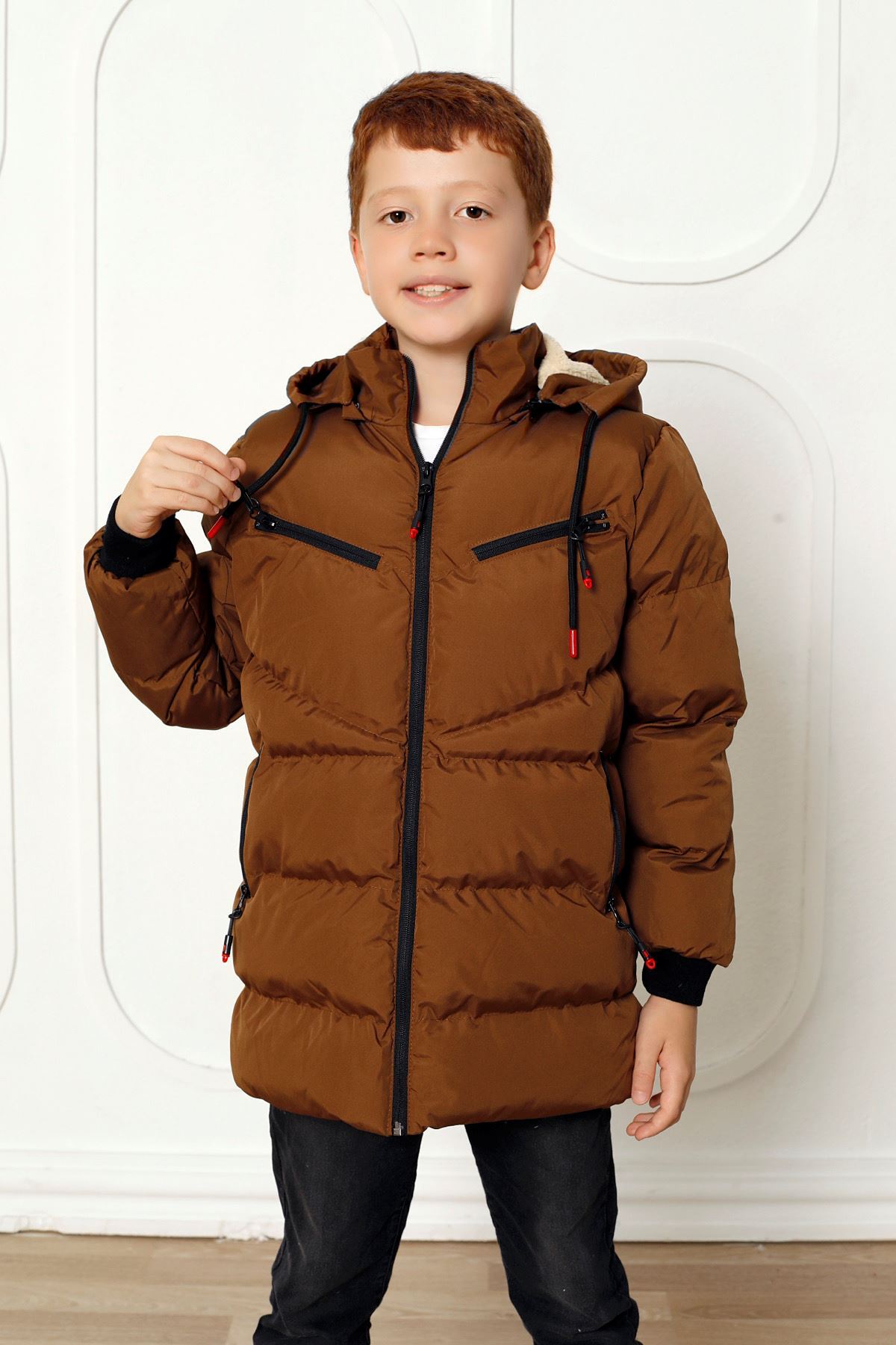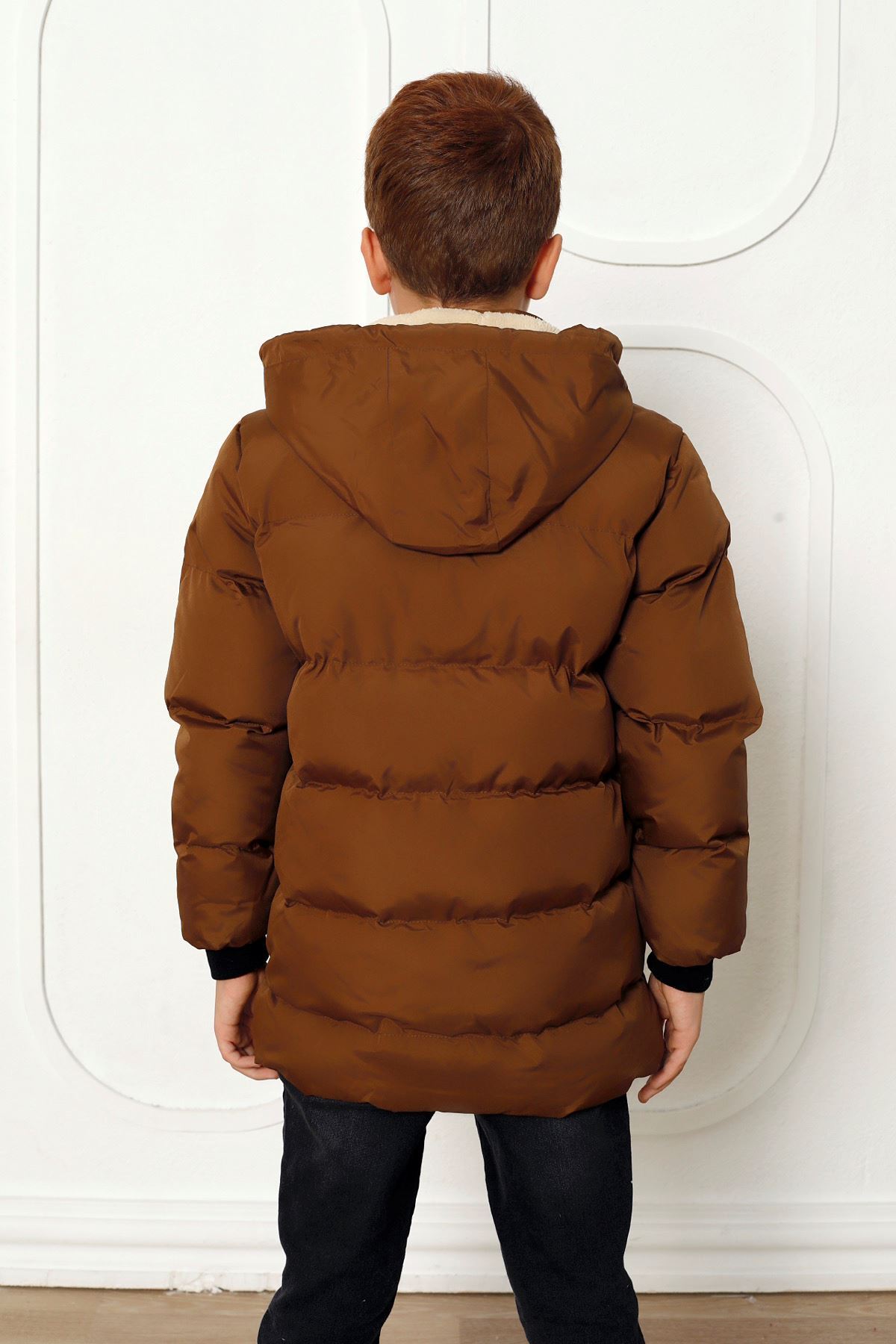 Kapşonlu İçi Yünlü Taba Çocuk Kaban