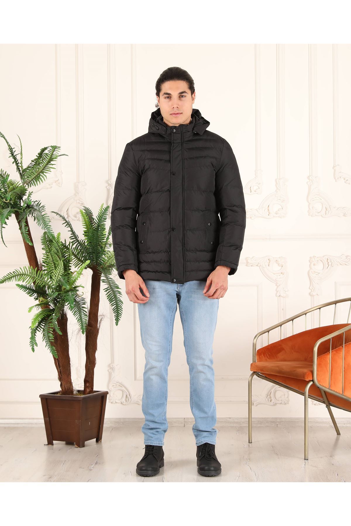 Kapşonlu Şişme Erkek Mont