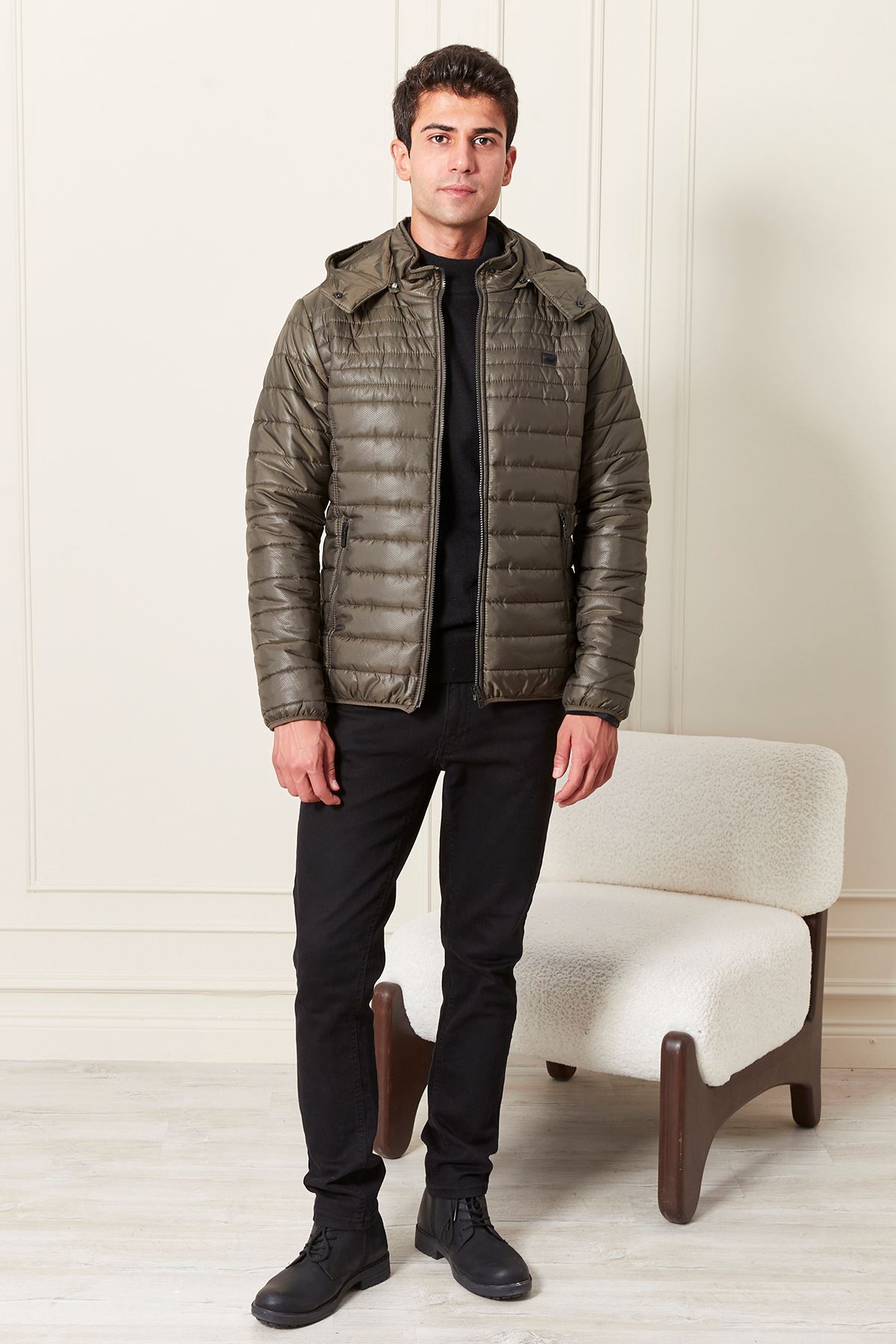 Kapşonlu Şişme Erkek Mont