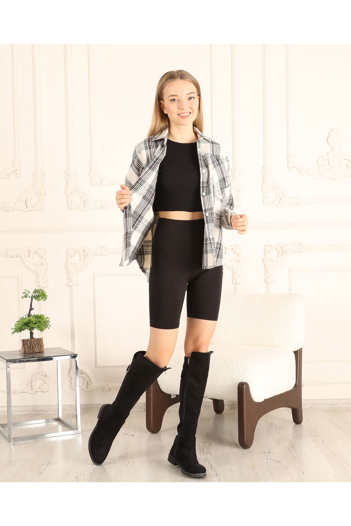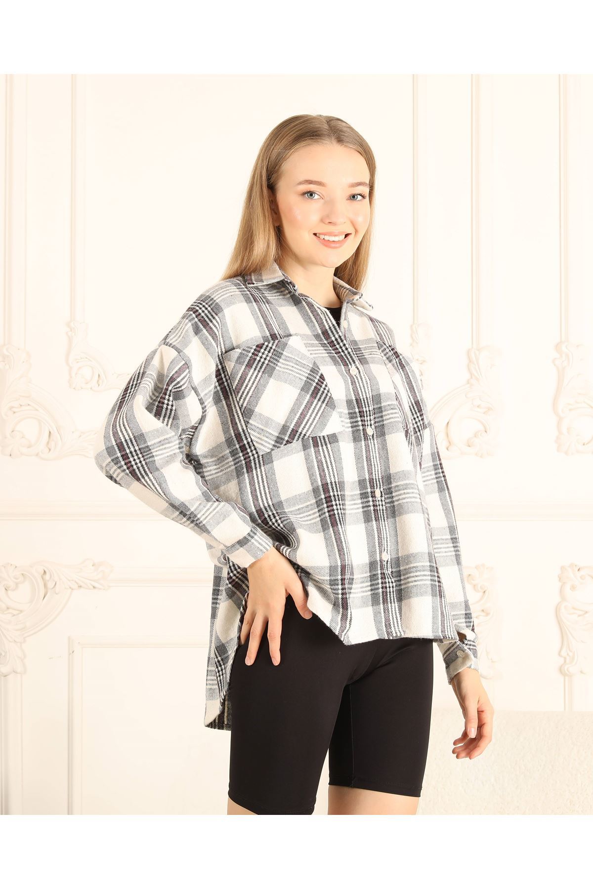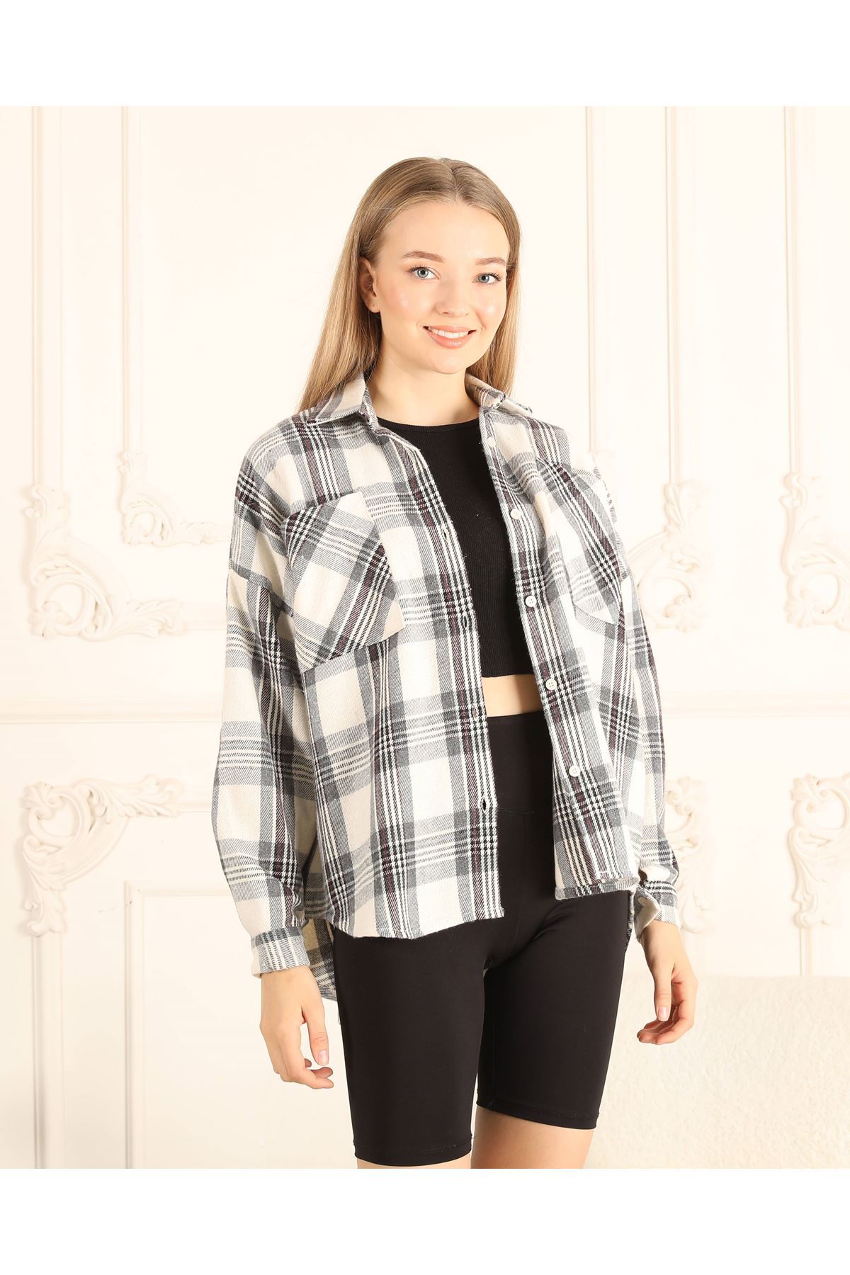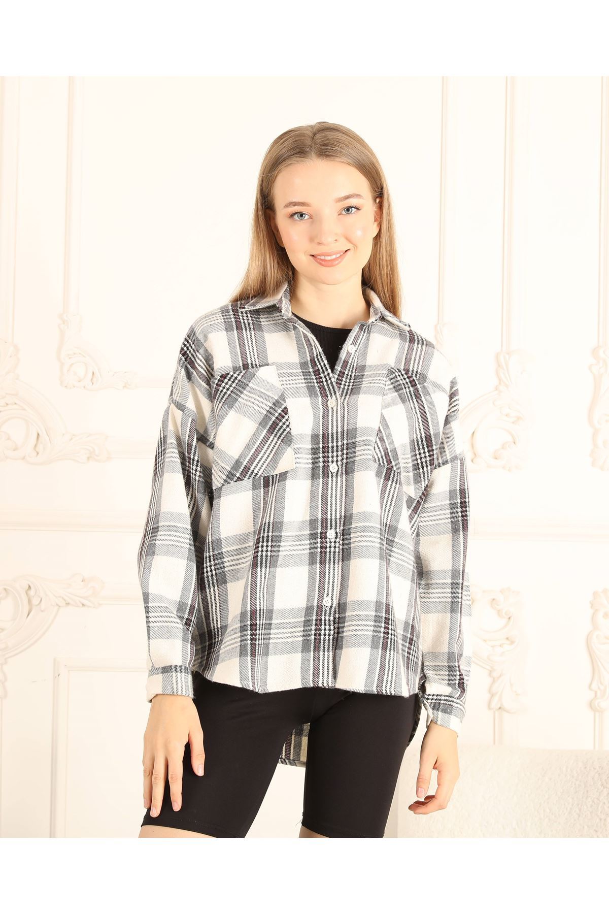 Kare Desenli Kadın Gömlek