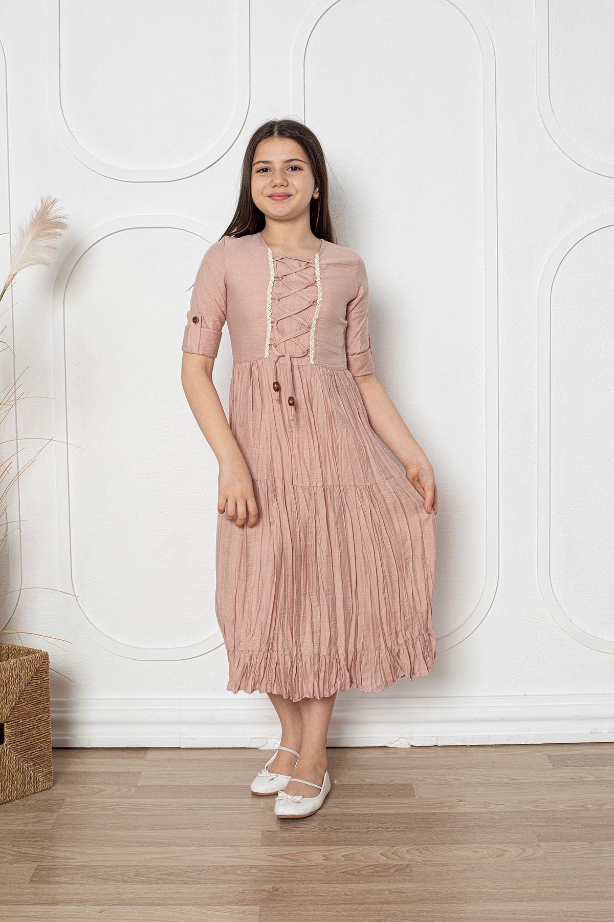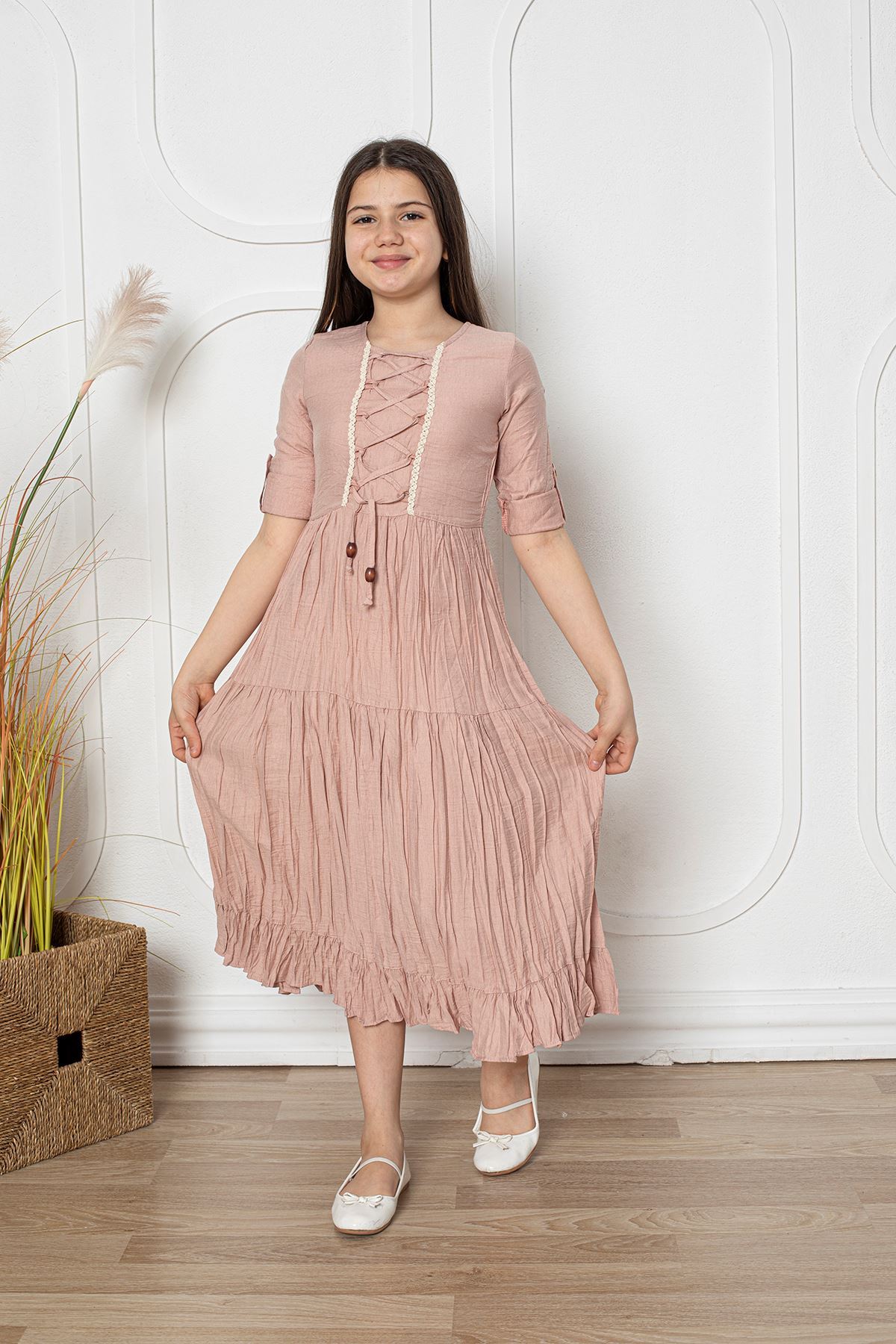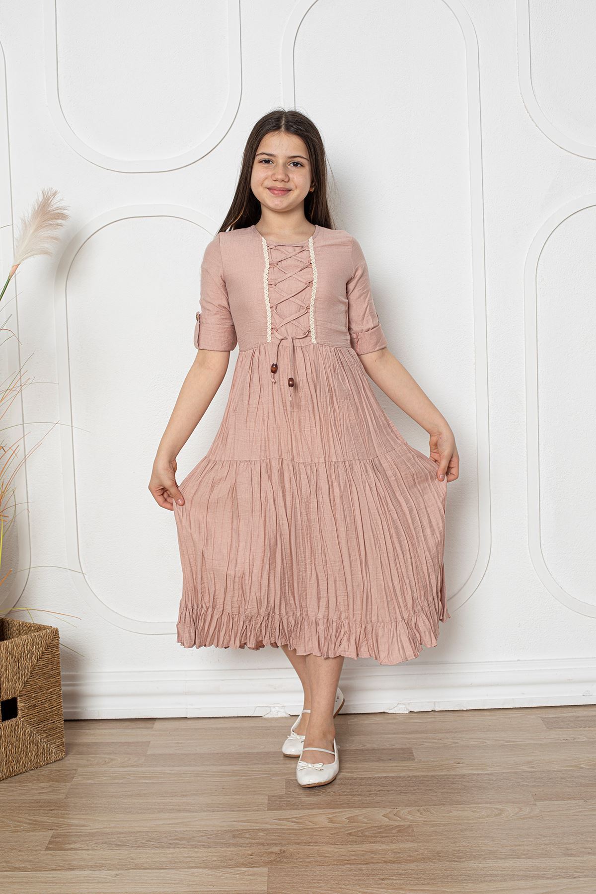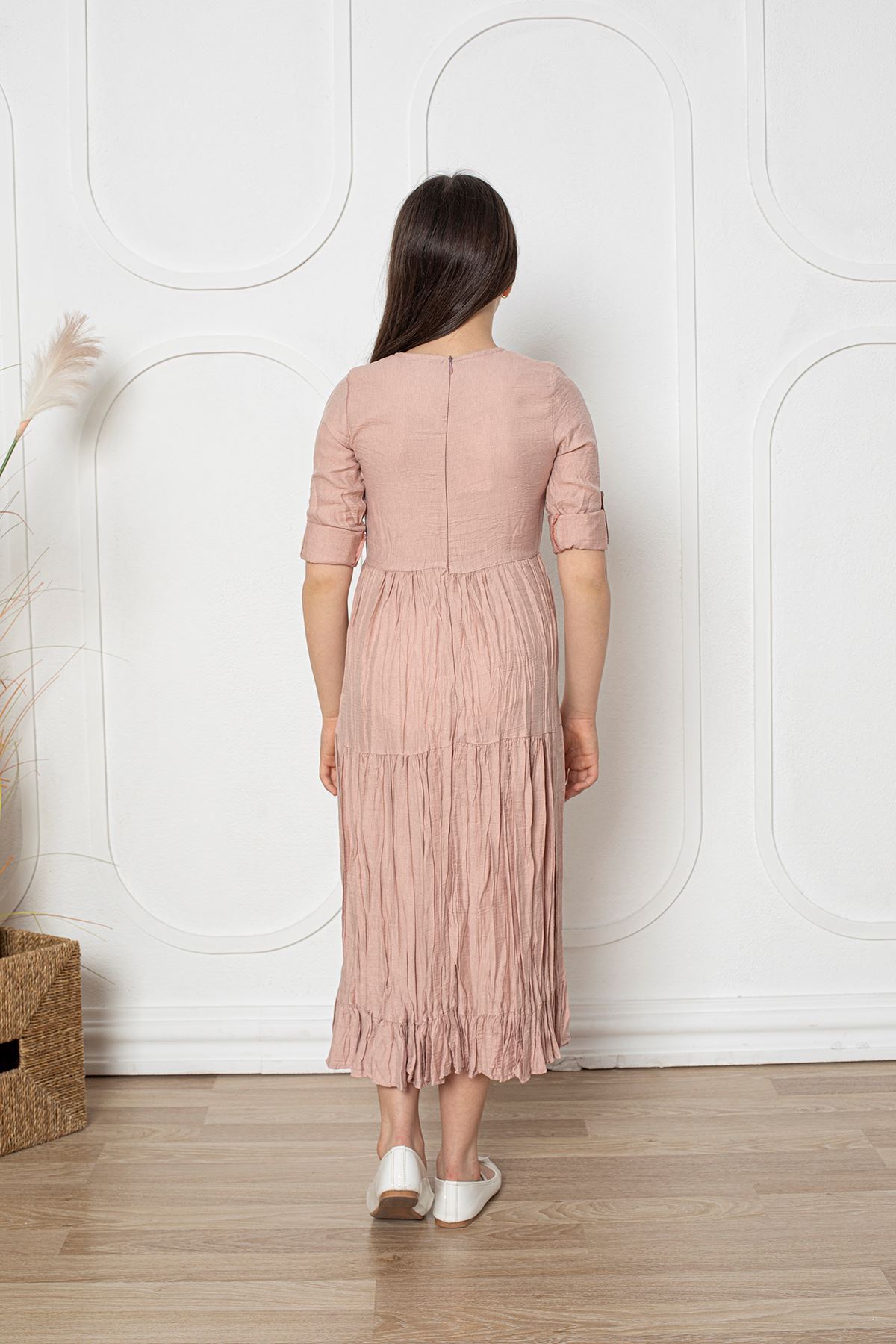 Katlama Kol Kız Çocuk Elbise