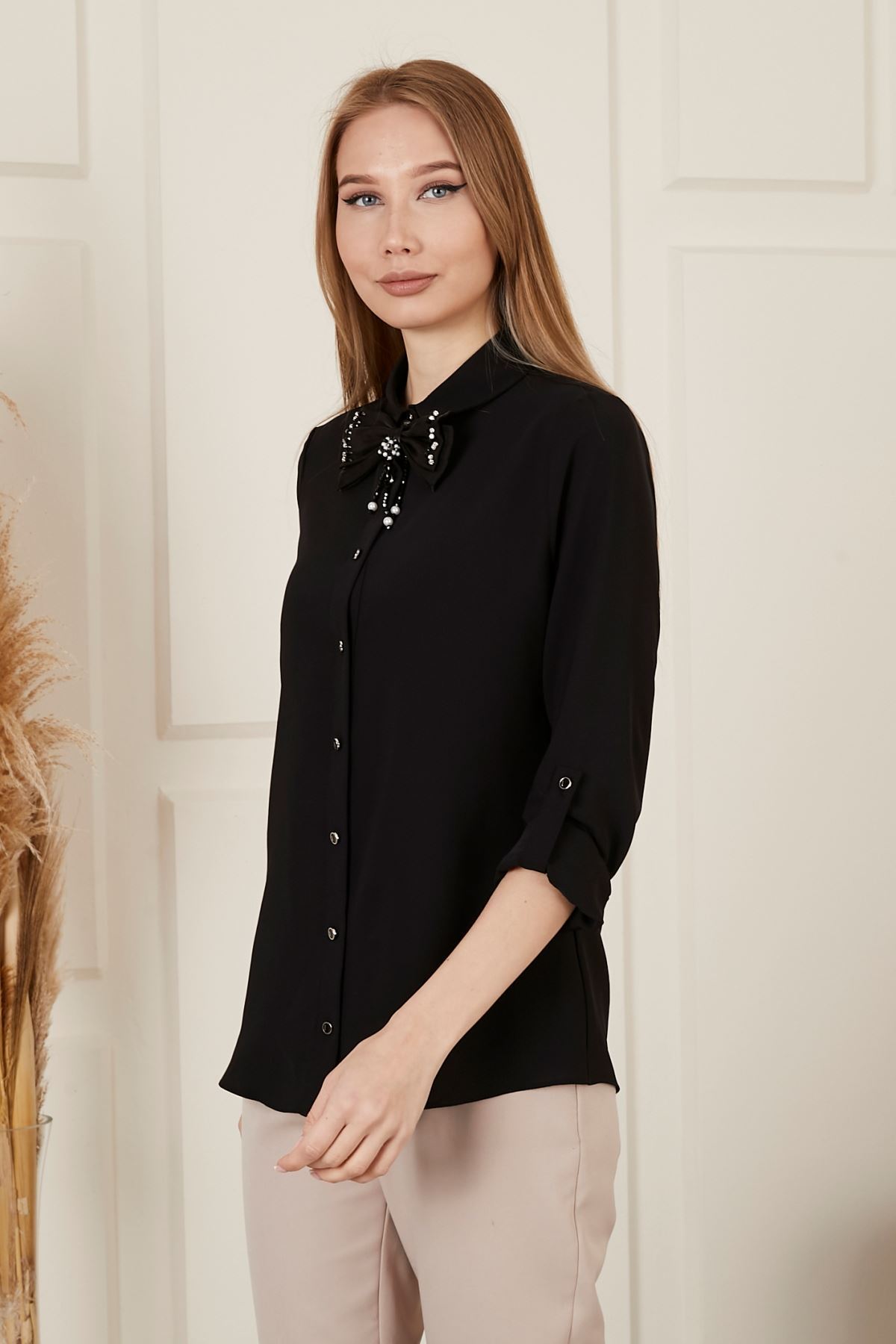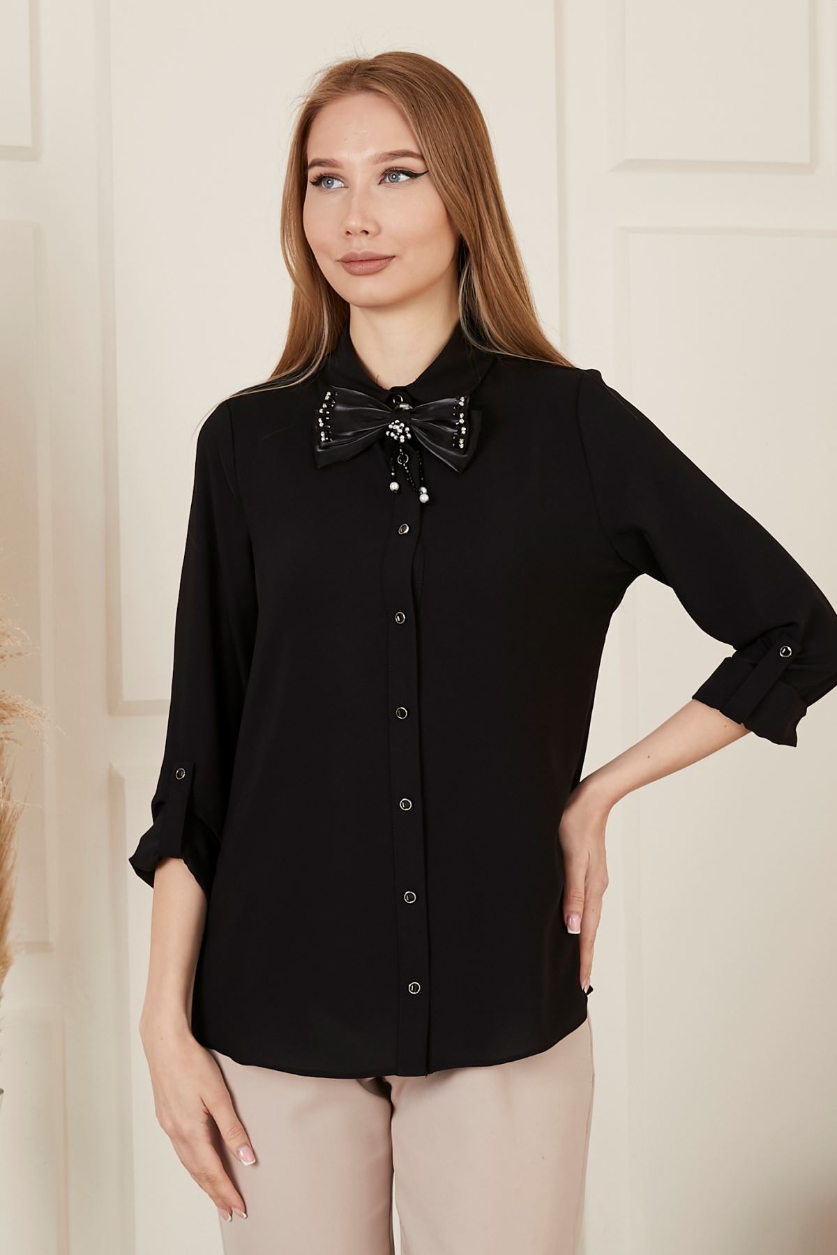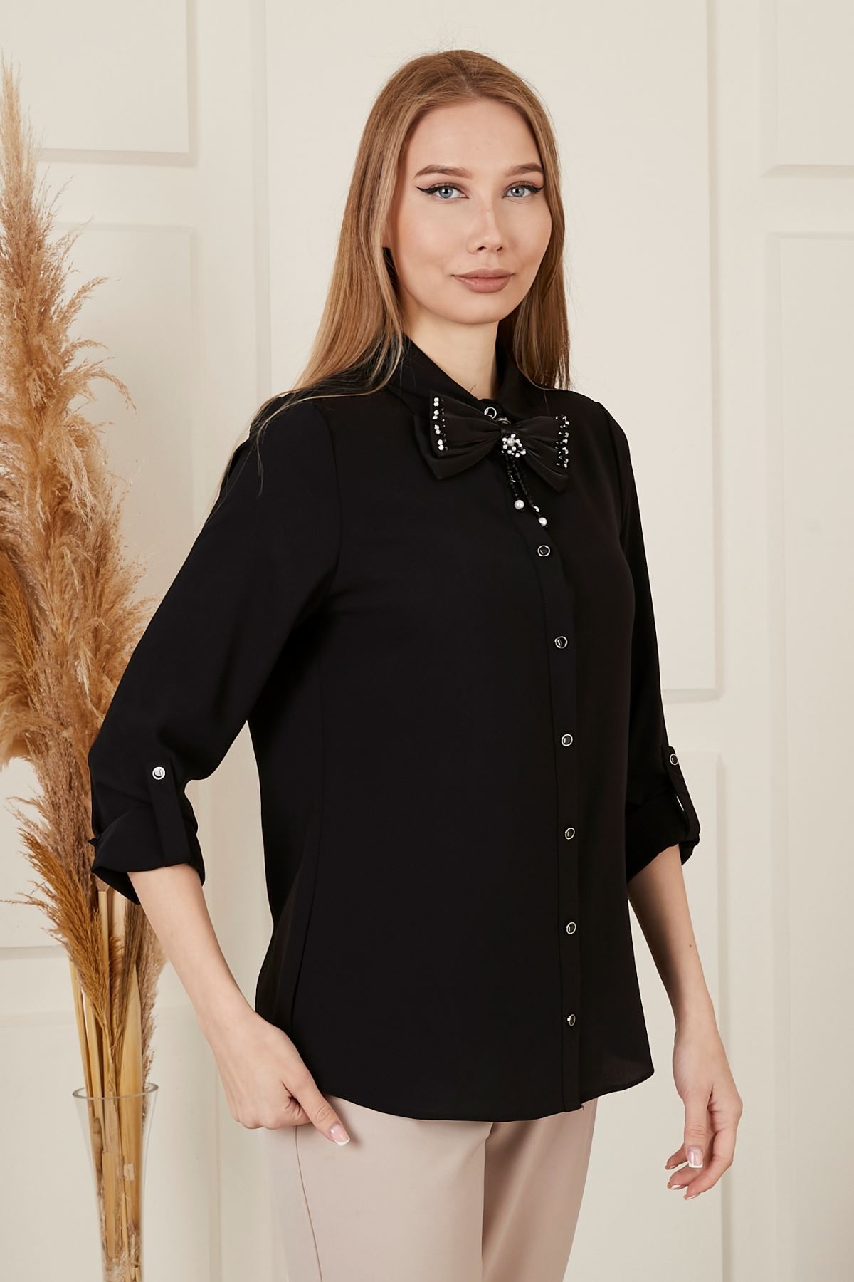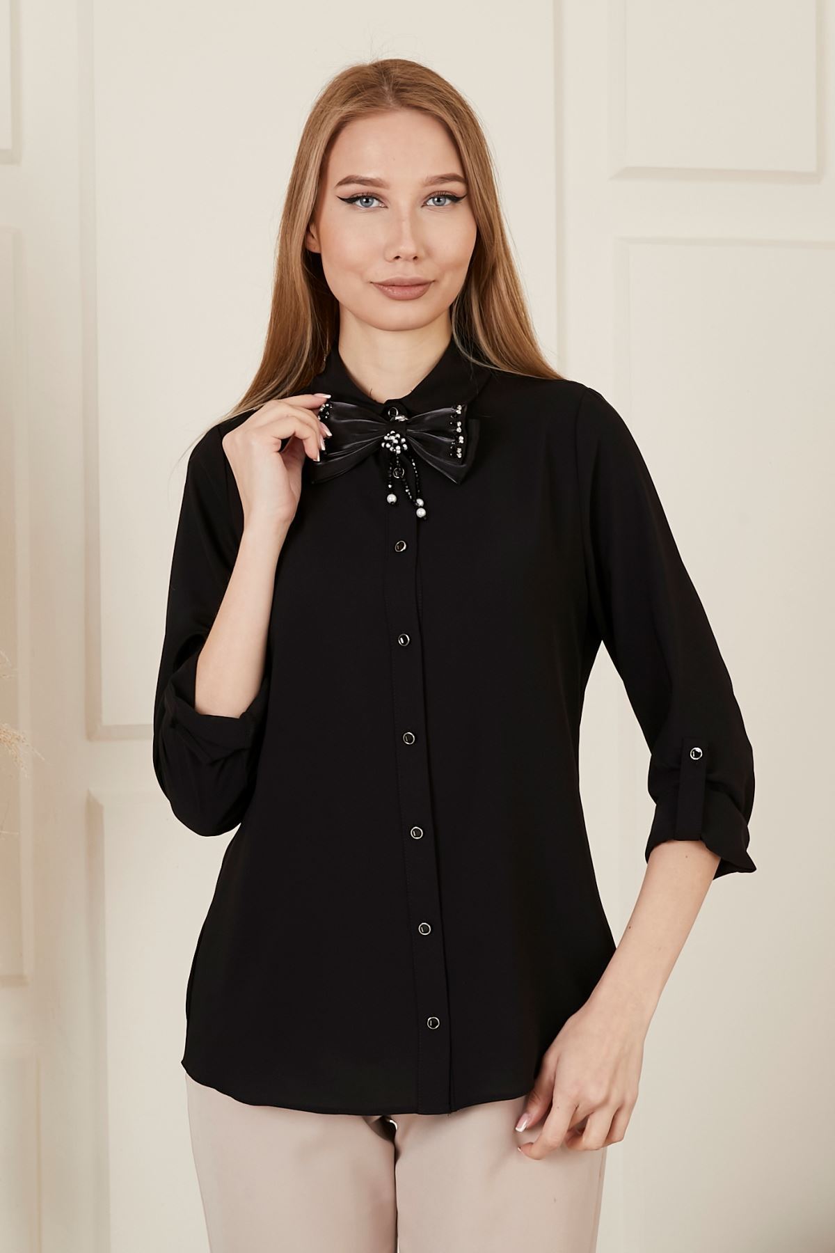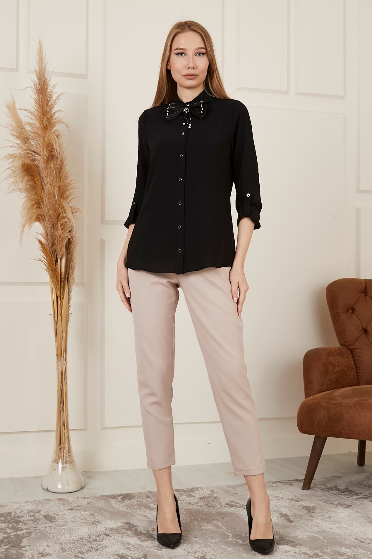 Katlama Kol Yakası Fiyonklu Kadın Gömlek