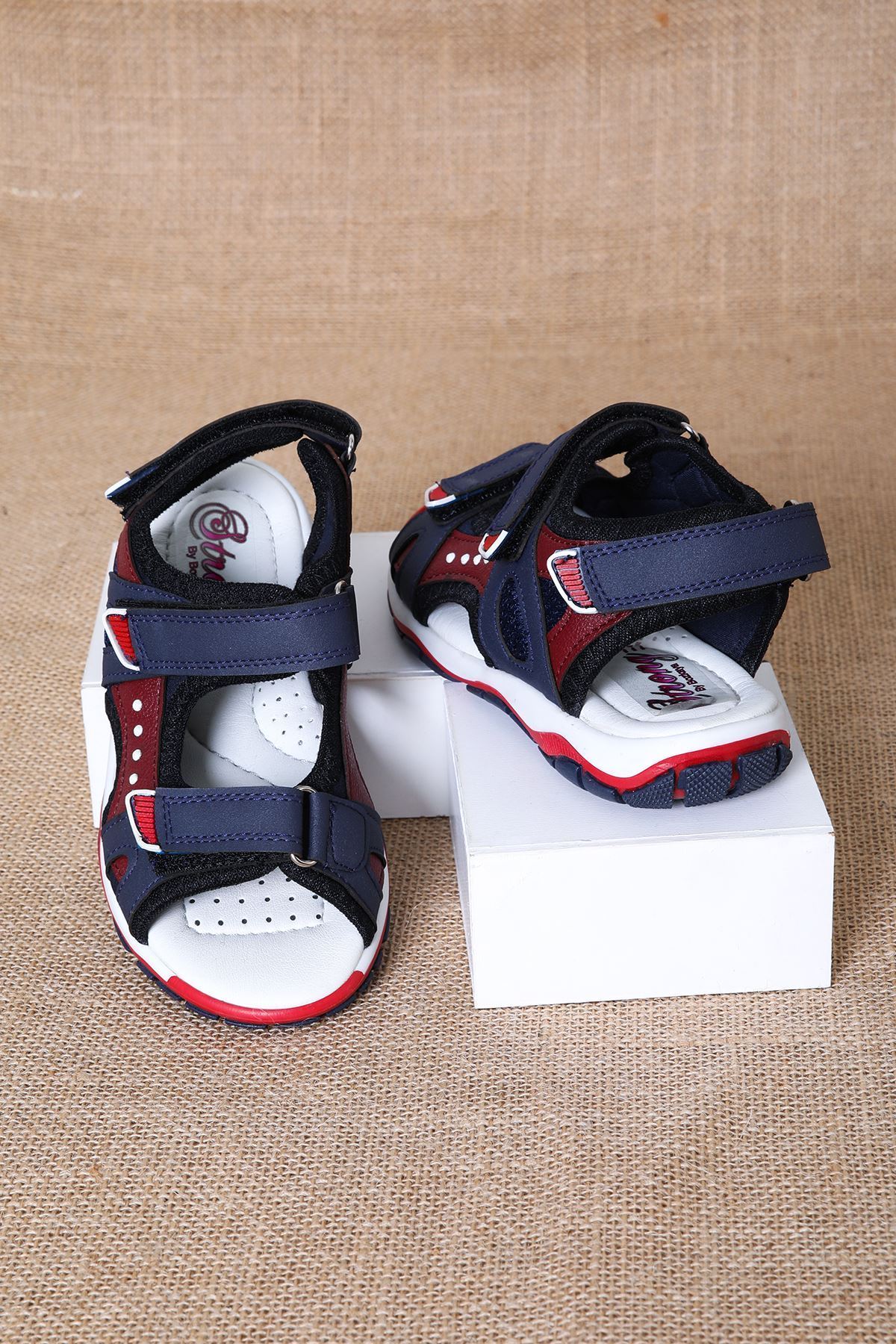 Kırmızı Garnili Lacivert Çocuk Sandalet