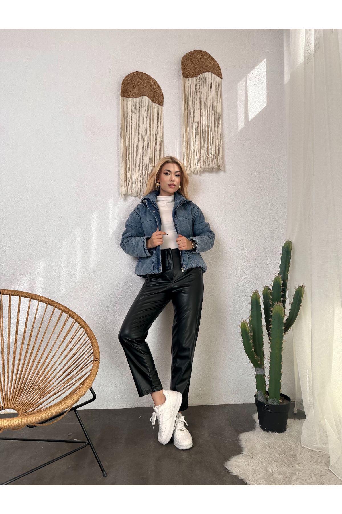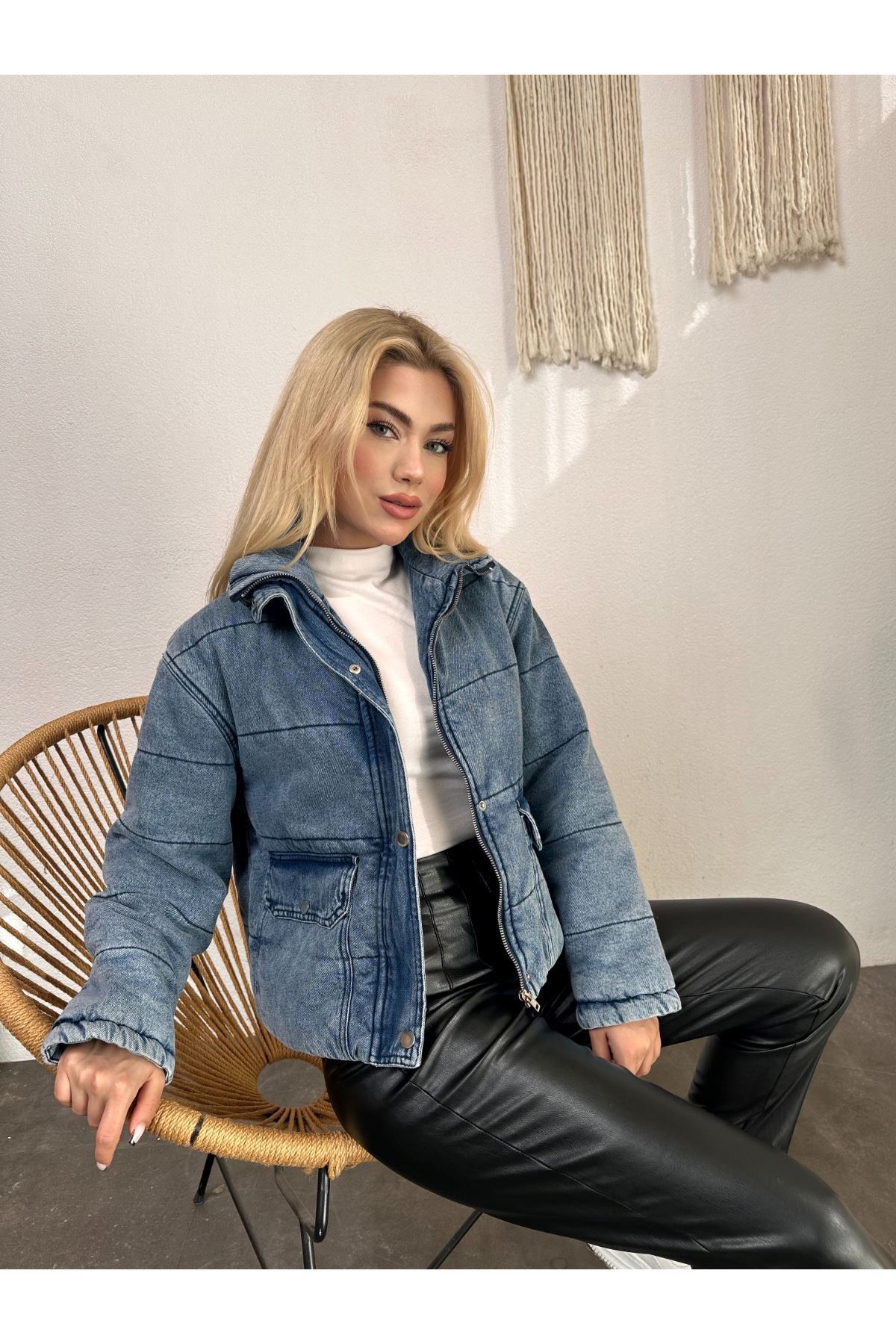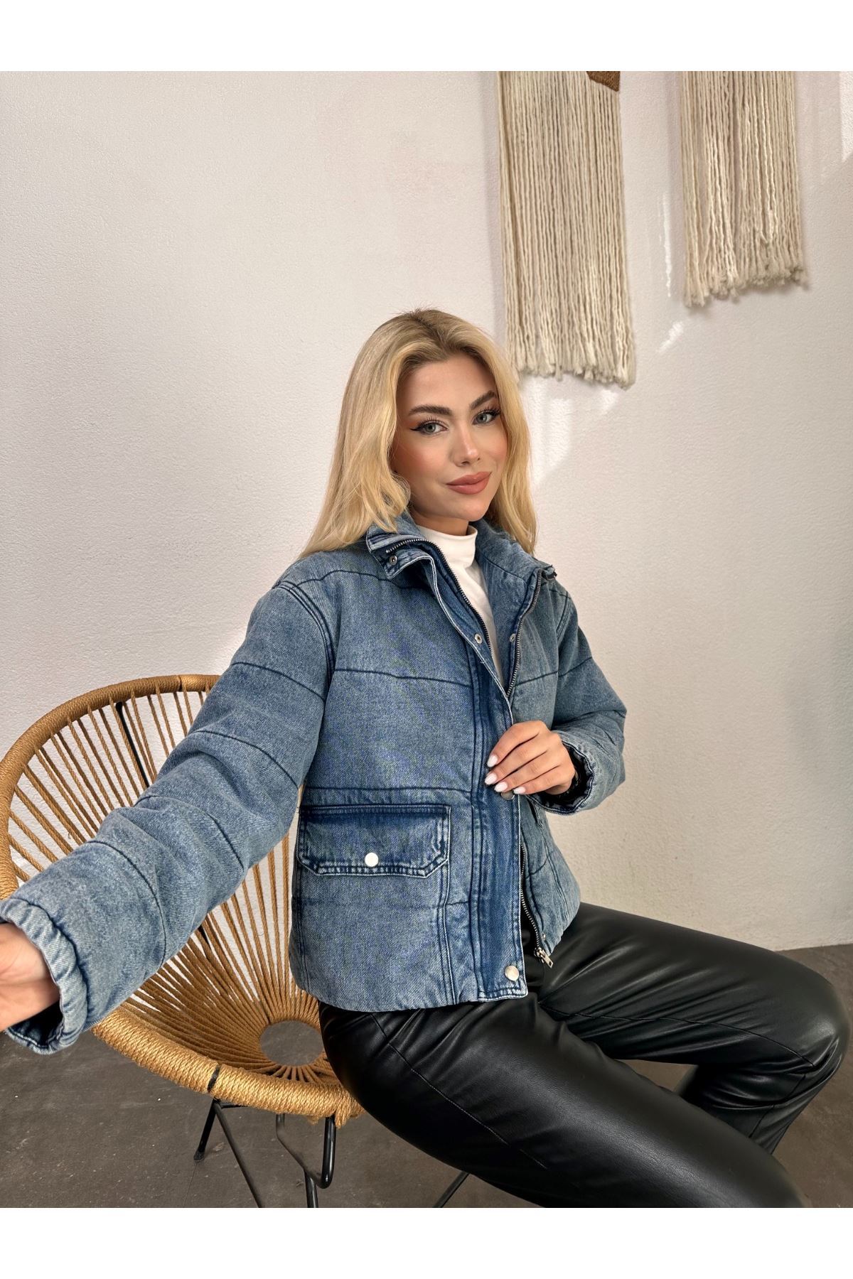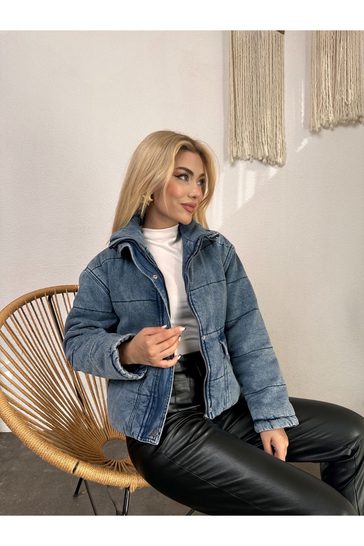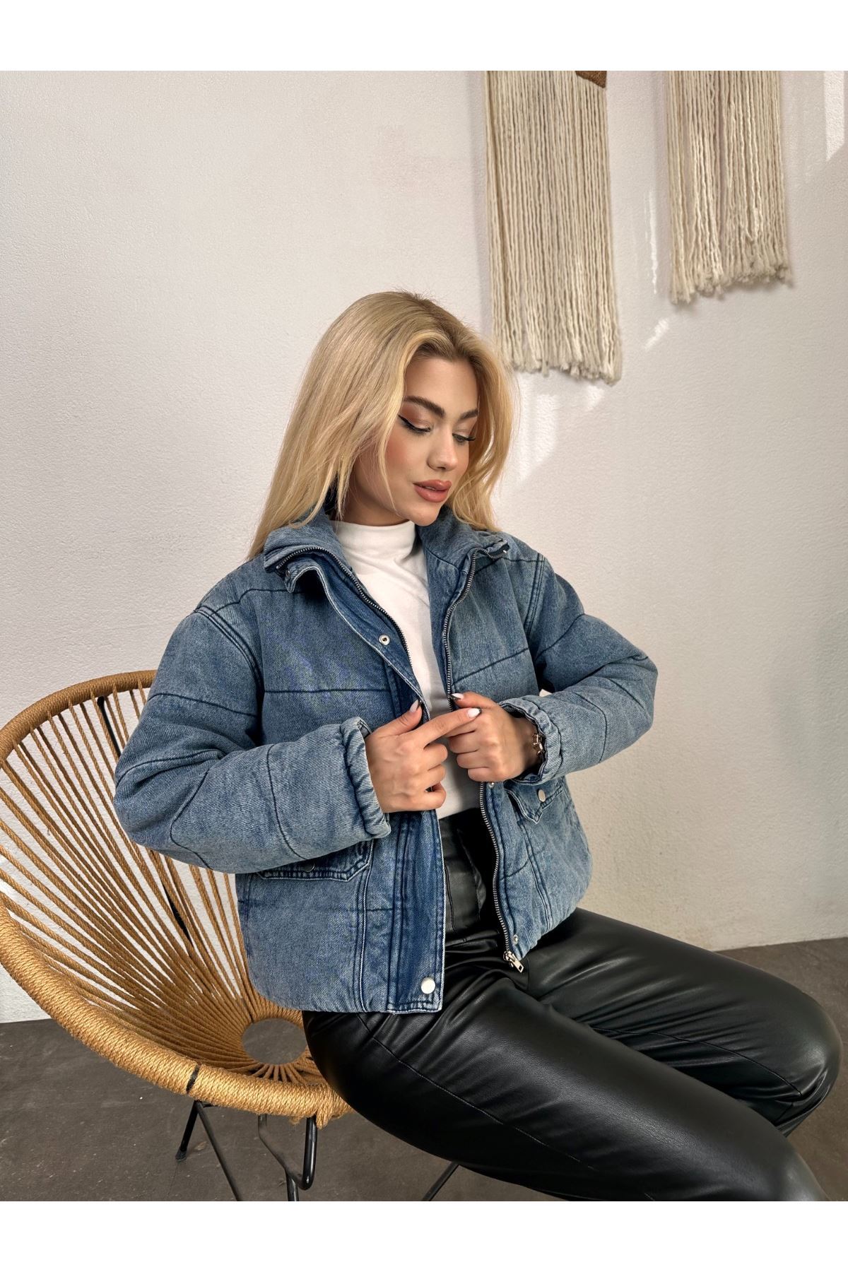 Kısa Fermuarlı Kot Mont