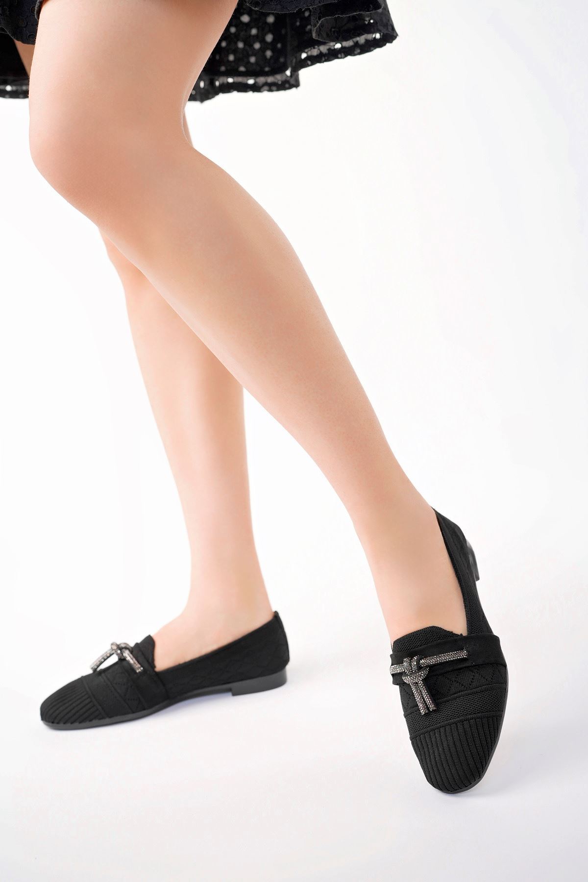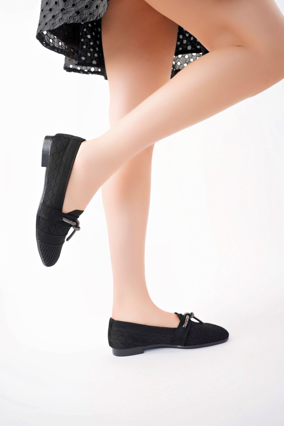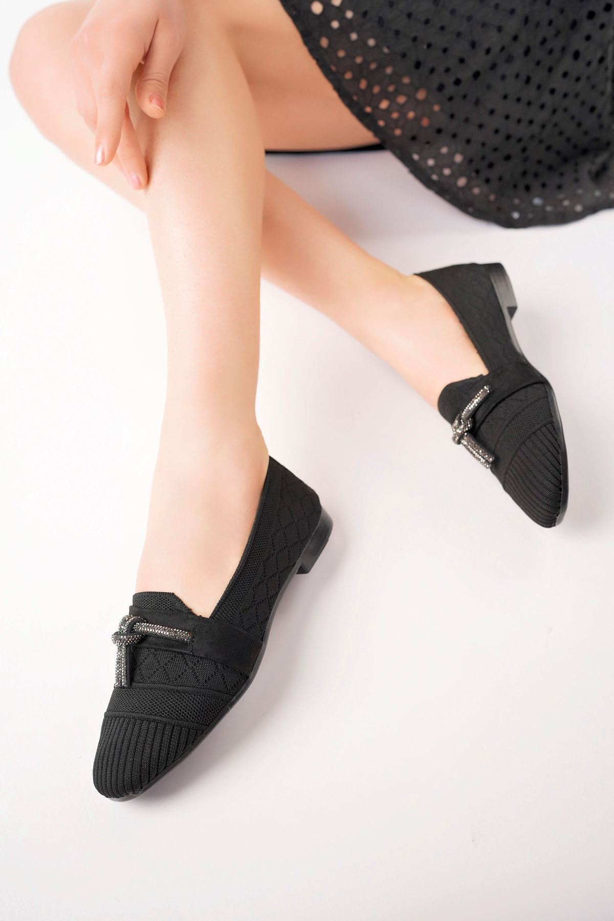 Köşeli Kalıp Siyah Triko Ayakkabı