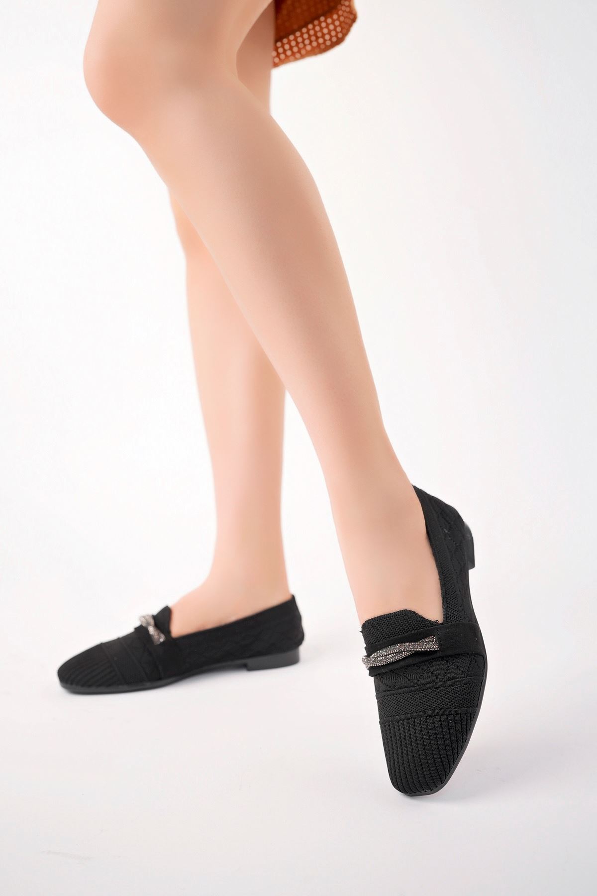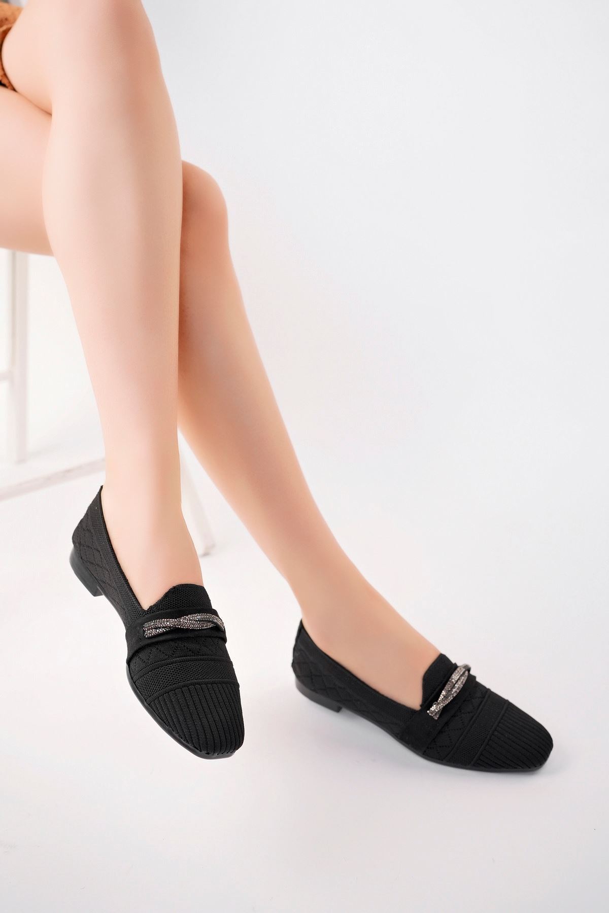 Köşeli Kalıp Siyah Triko Ayakkabı