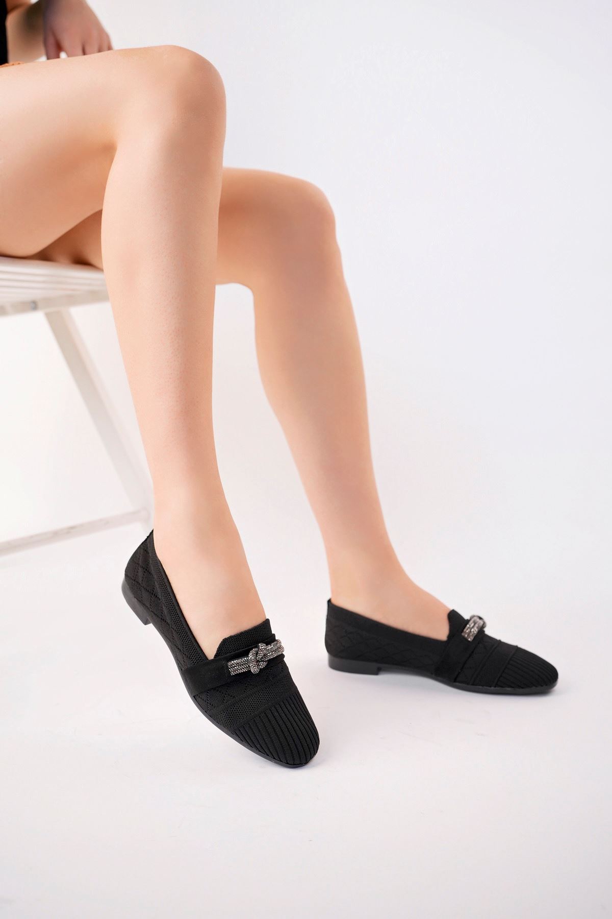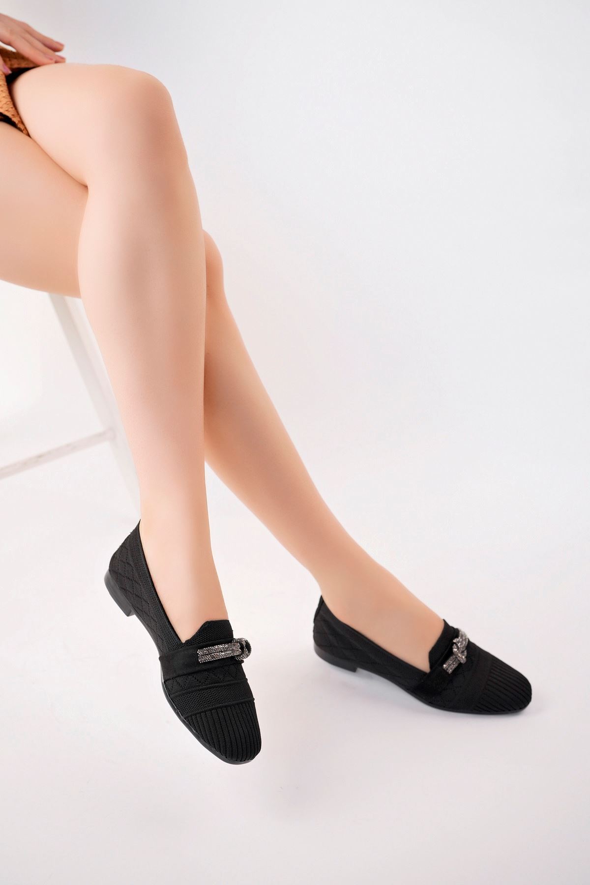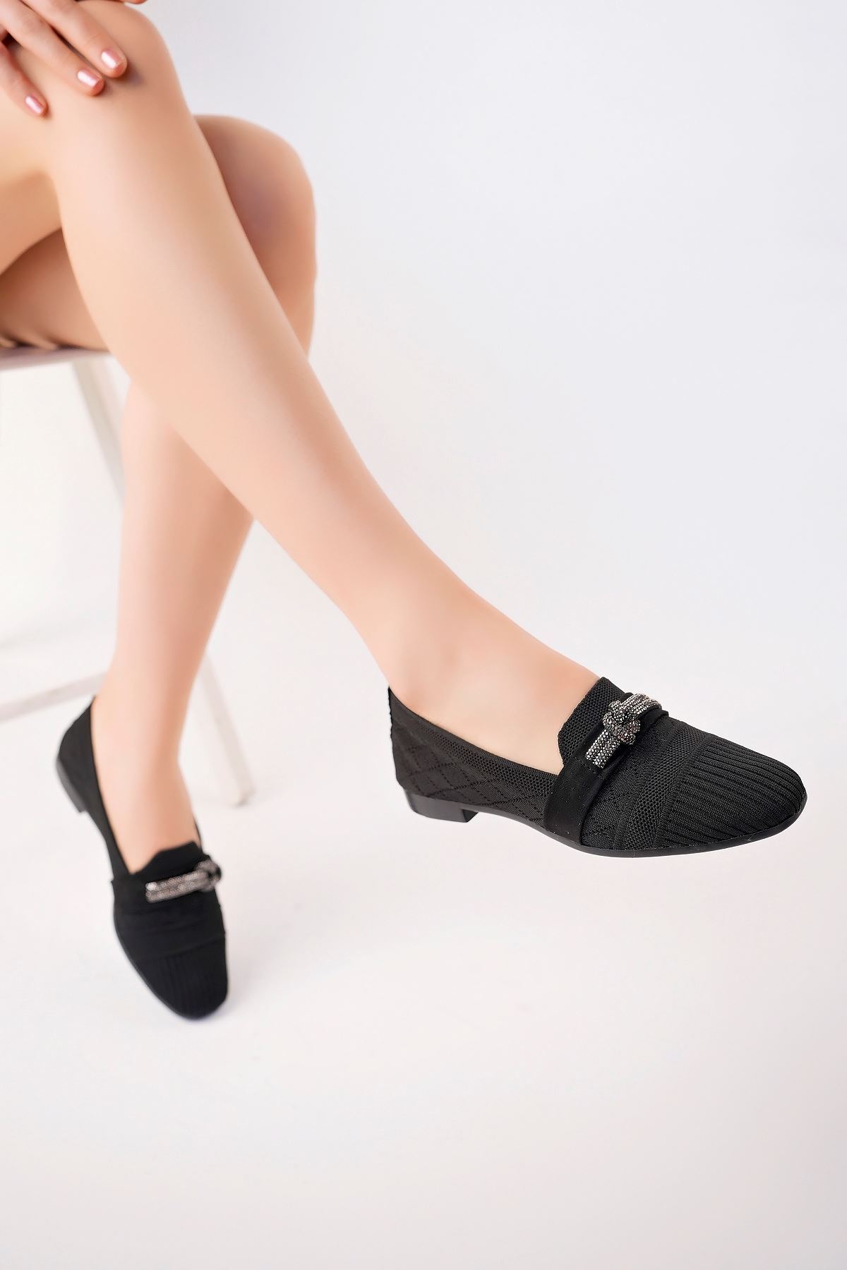 Köşeli Kalıp Siyah Triko Ayakkabı