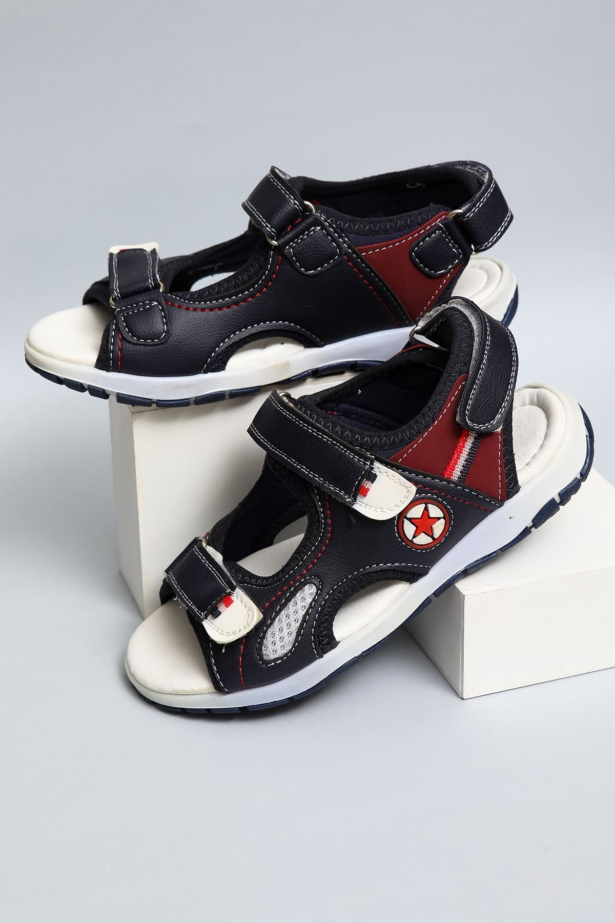 Laciverte Kırmızı Garnili Erkek Çocuk Sandalet