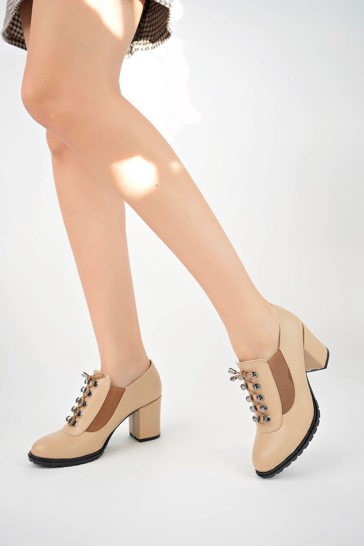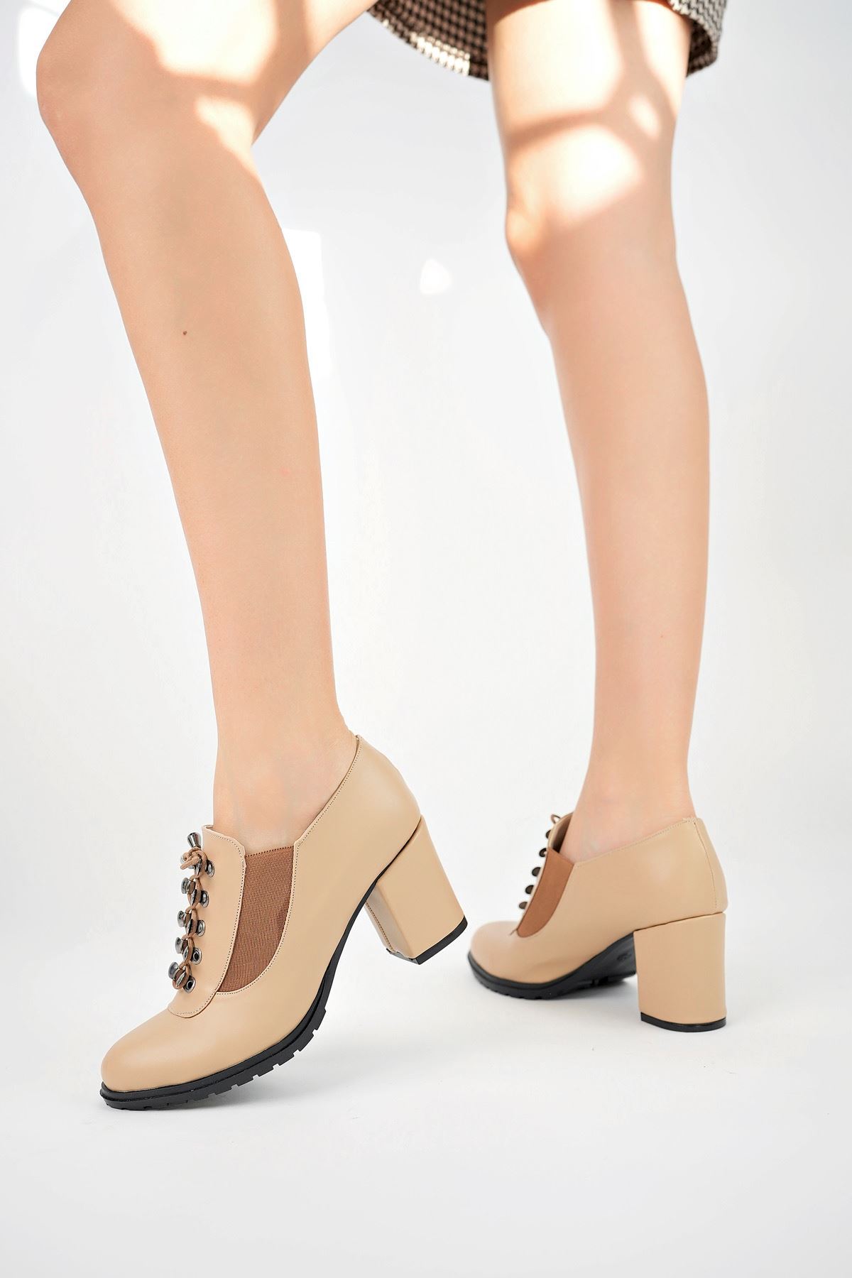 Lastikli Kancalı Nut Cilt Kadın Ayakkabı
