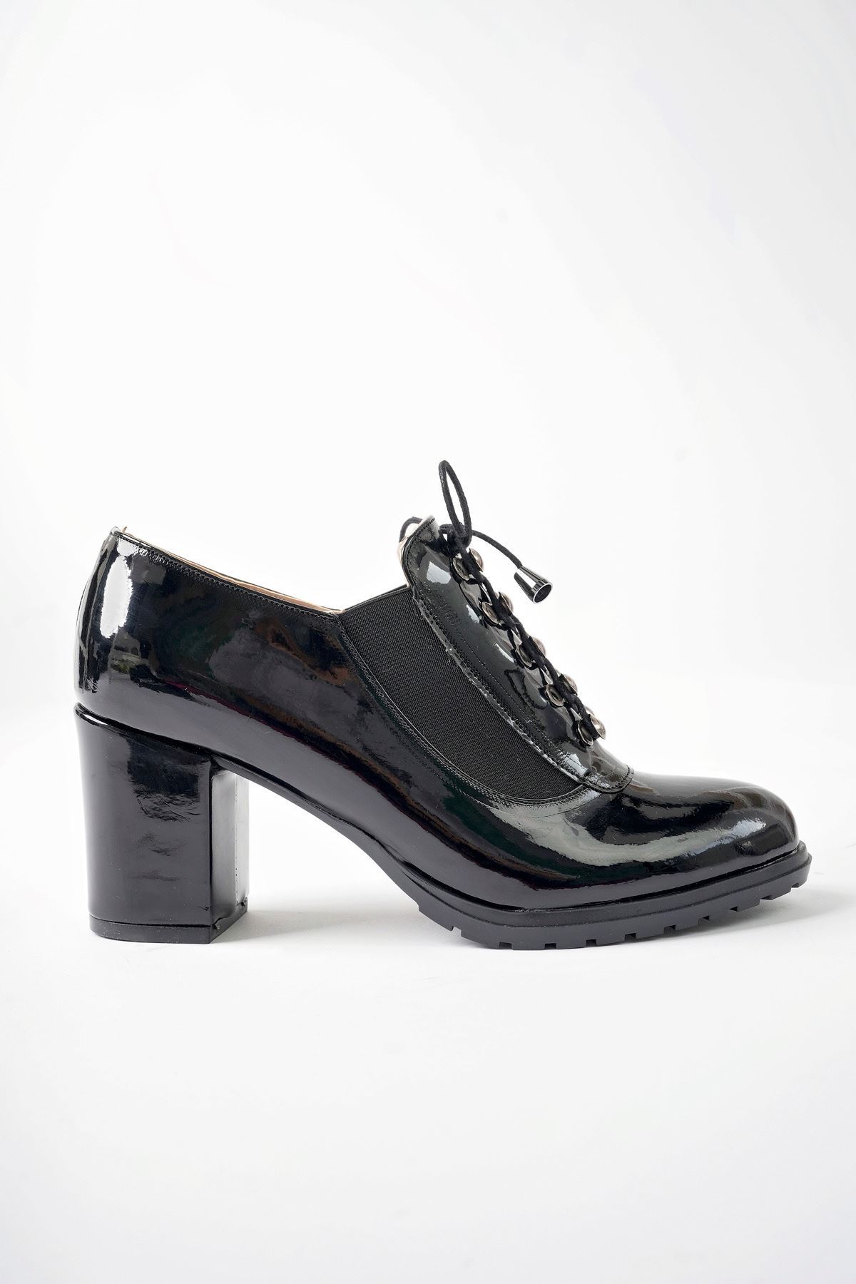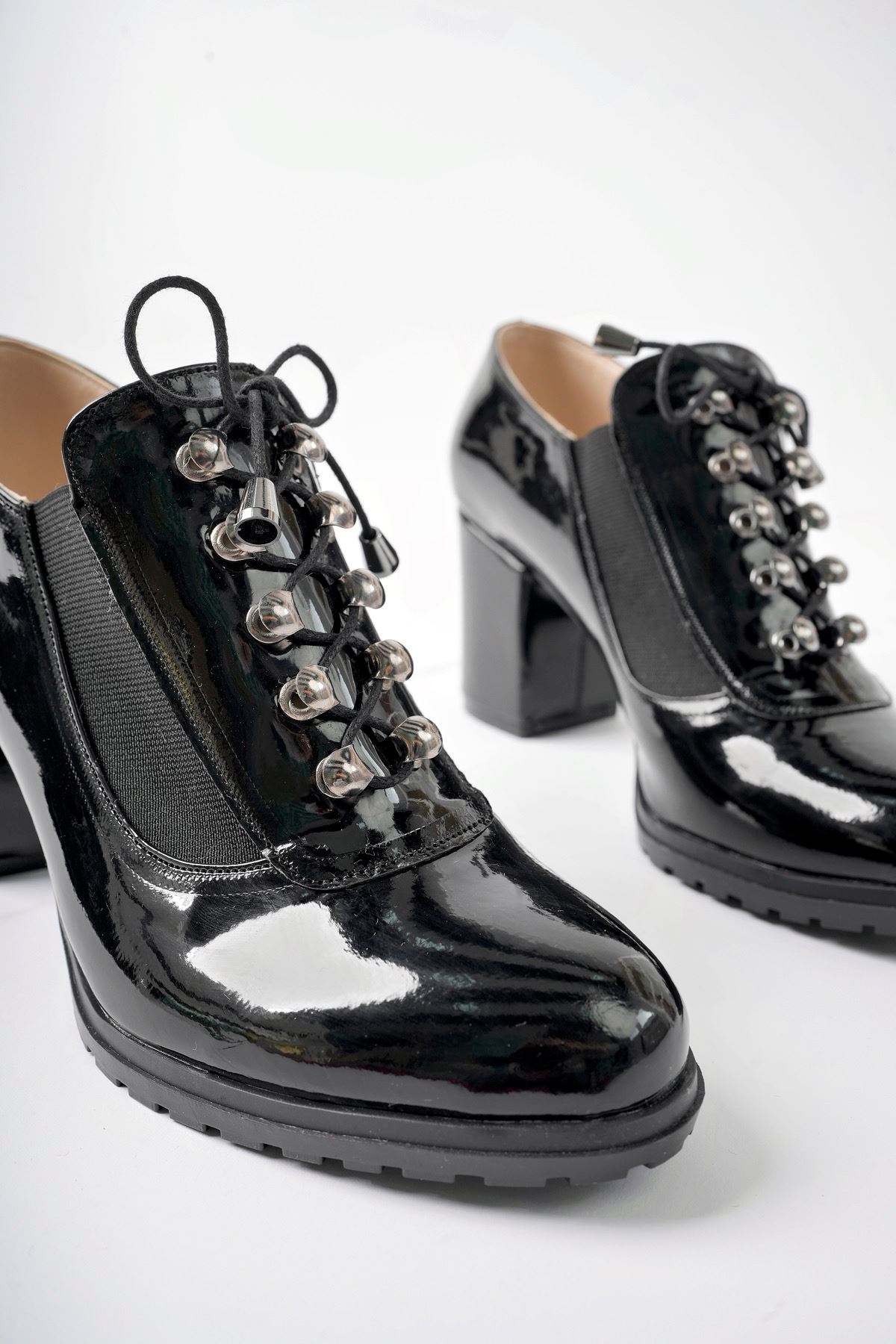 Lastikli Kancalı Siyah Rugan Kadın Ayakkabı