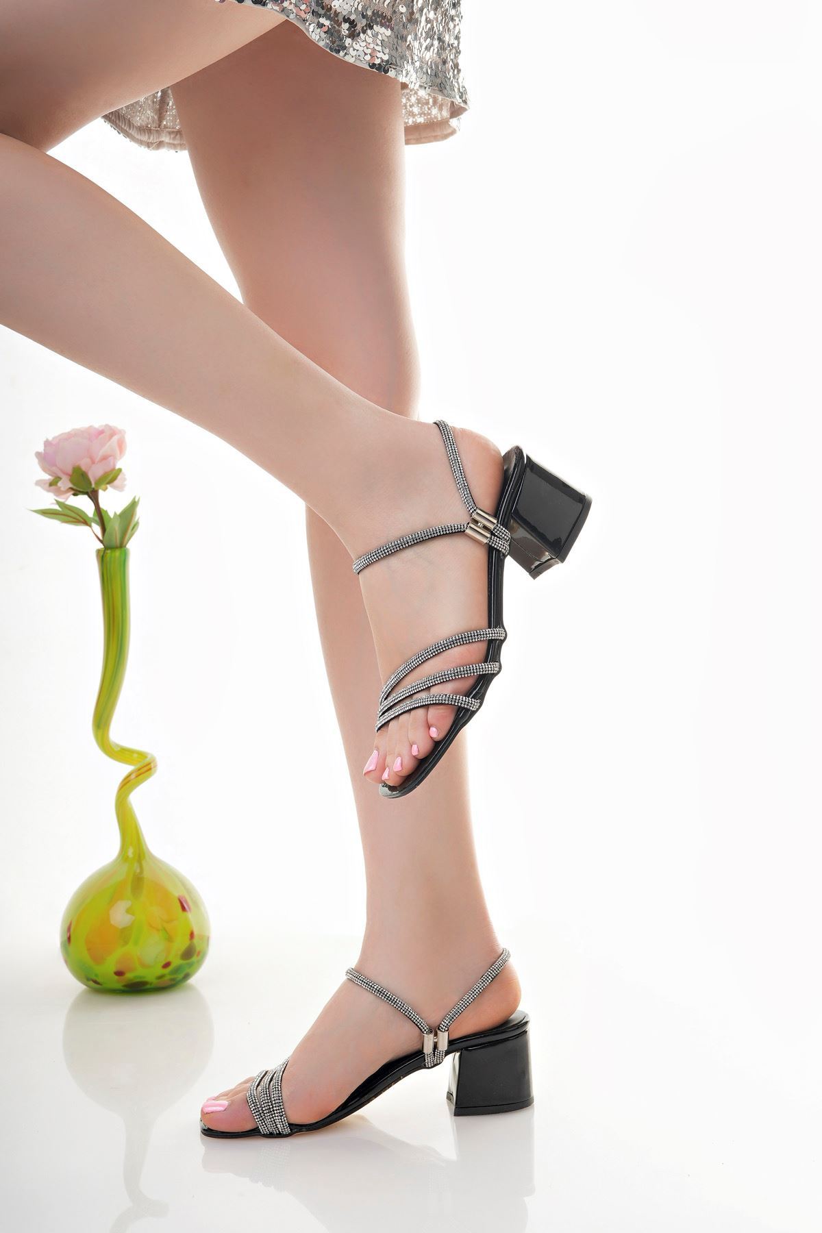Ökçeli Siyah Taşlı Sandalet Terlik