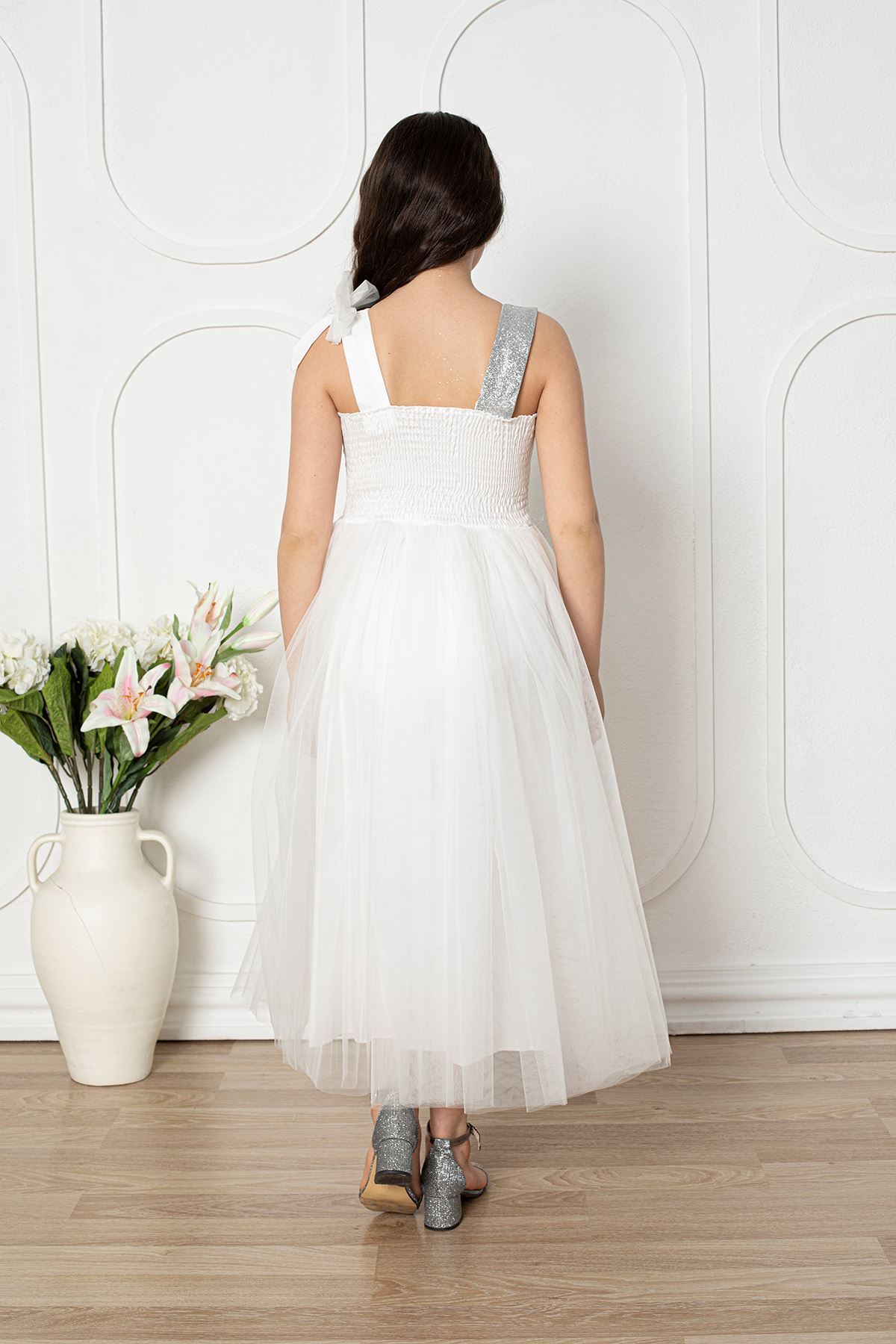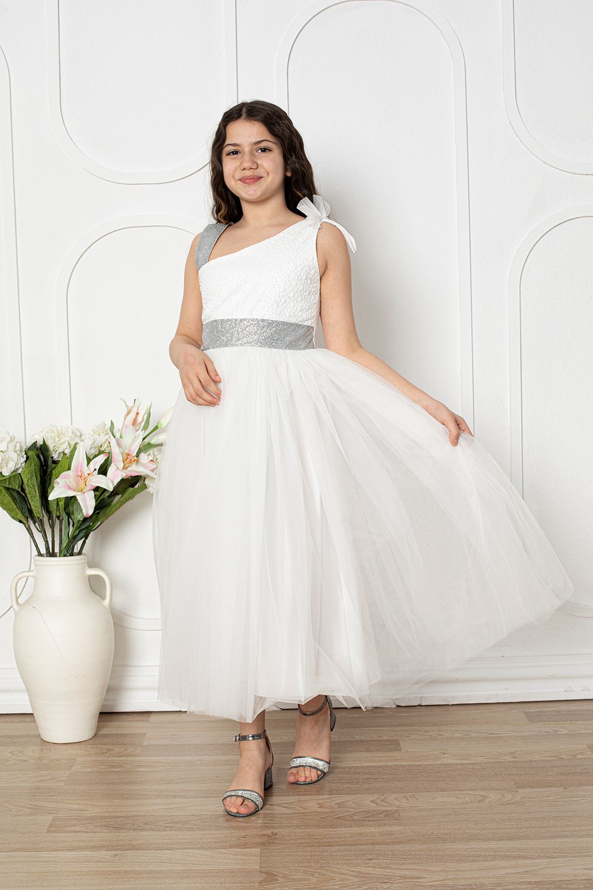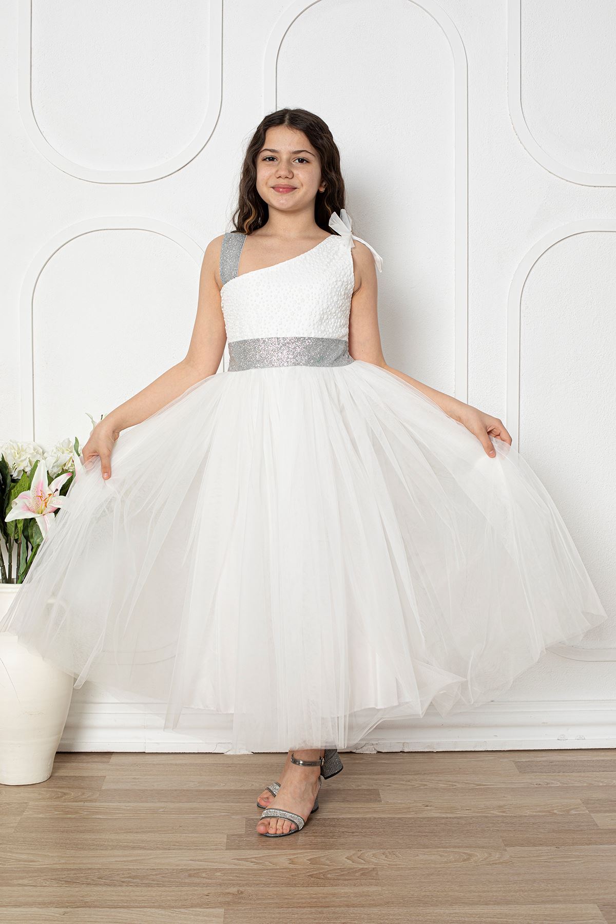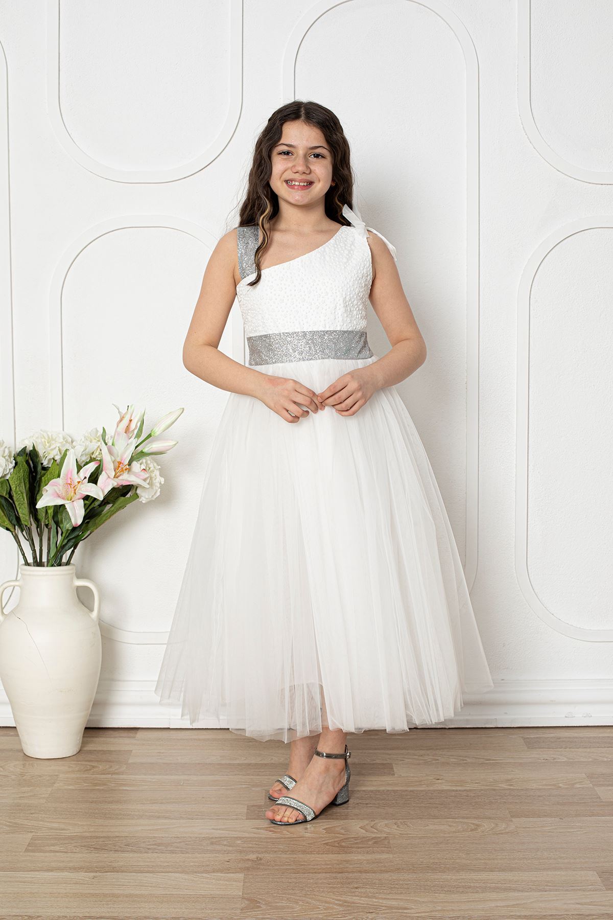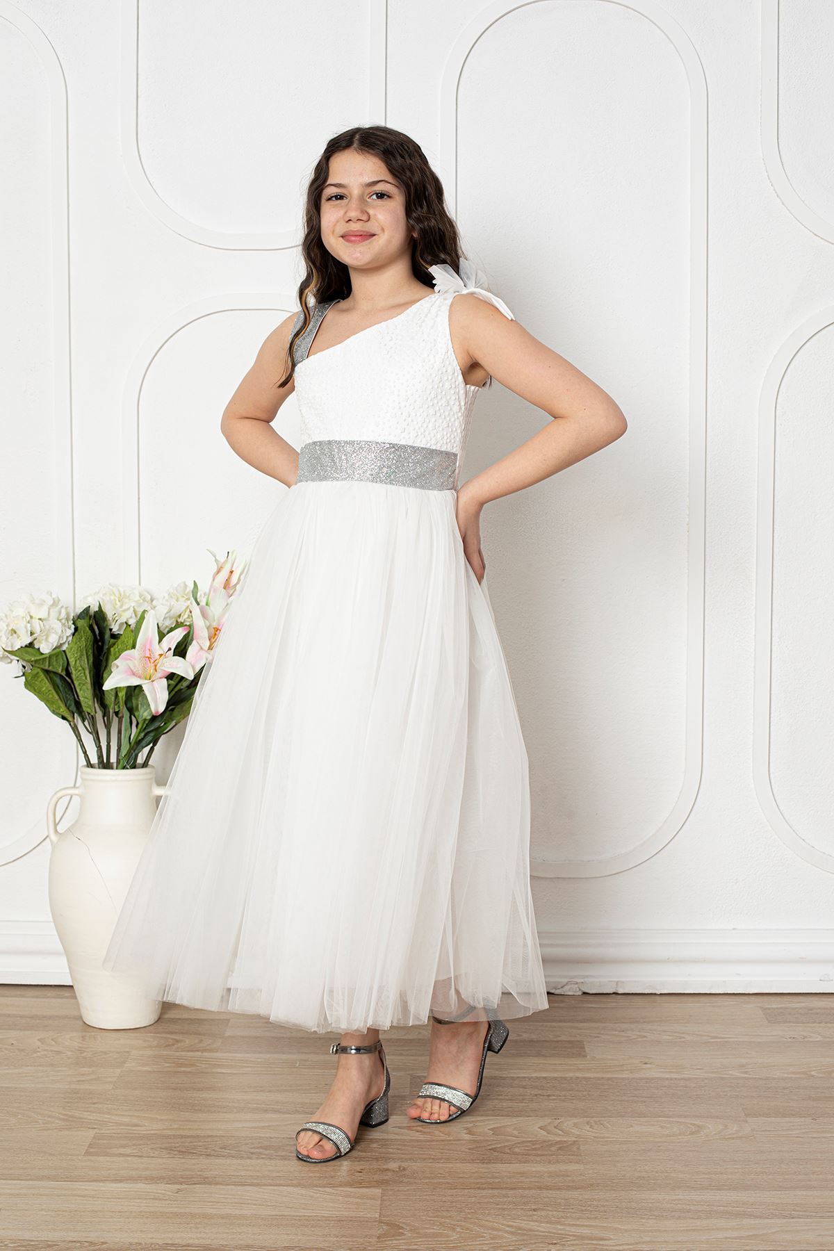 Omuzu Fiyonklu Kız Çocuk Abiye Elbise
