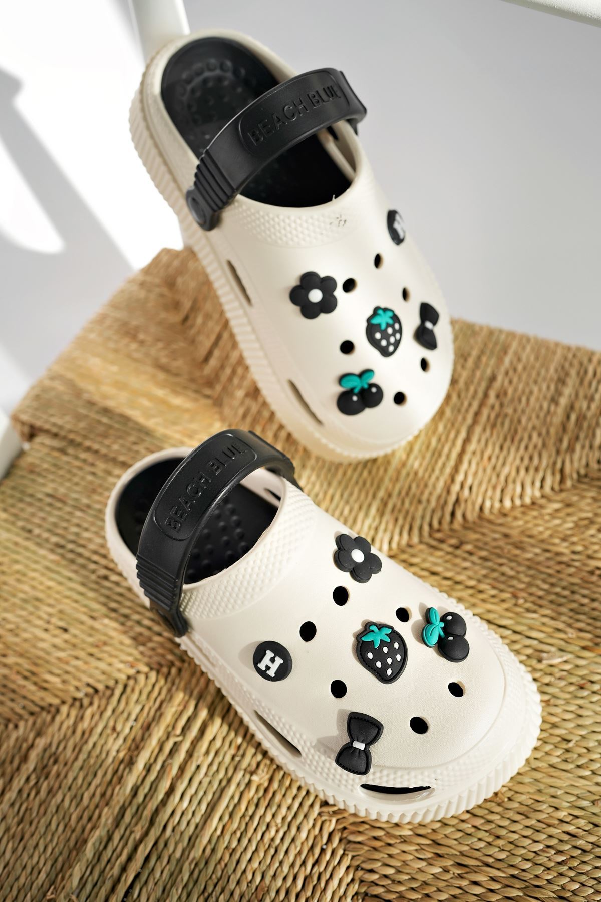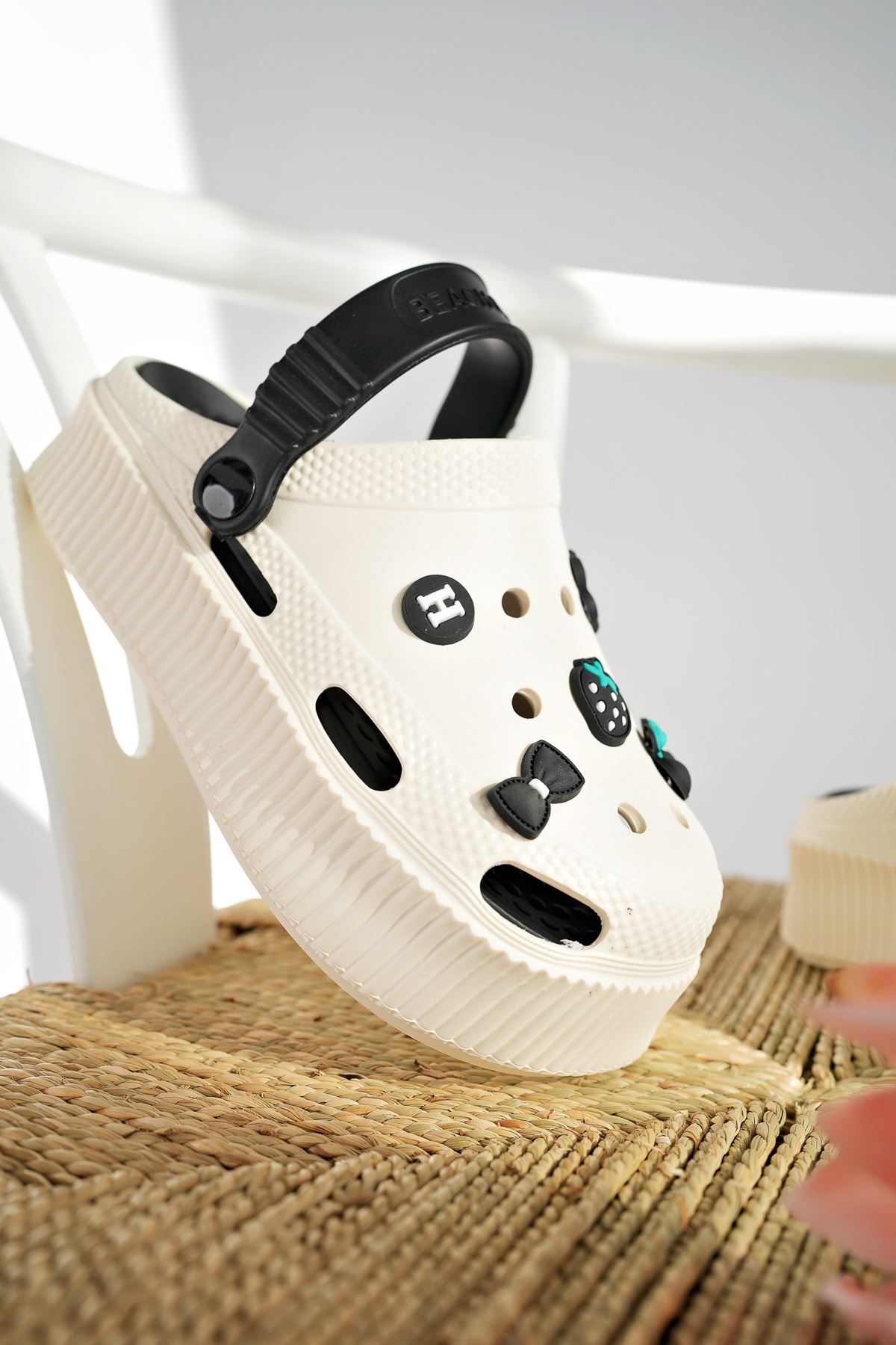 Önü Kapalı Beyaz Siyah Garnili Kadın Terlik