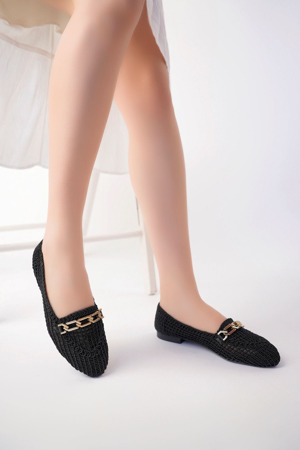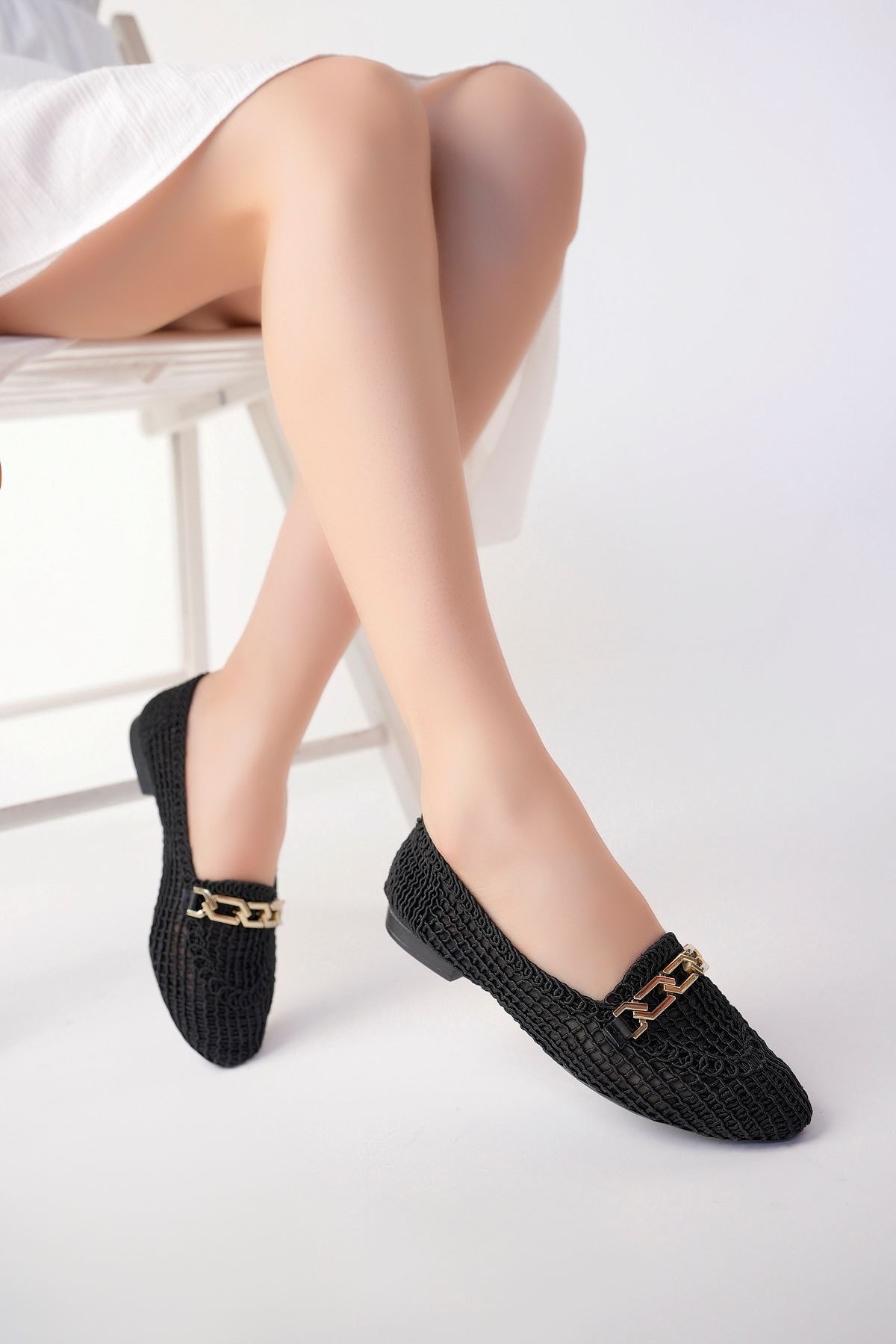 Örgülü Siyah Kadın Ayakkabı