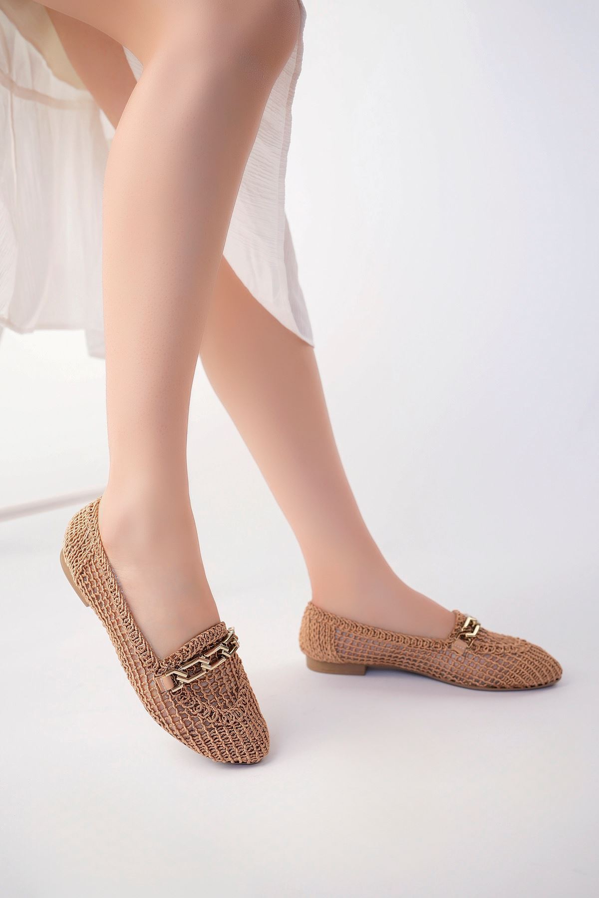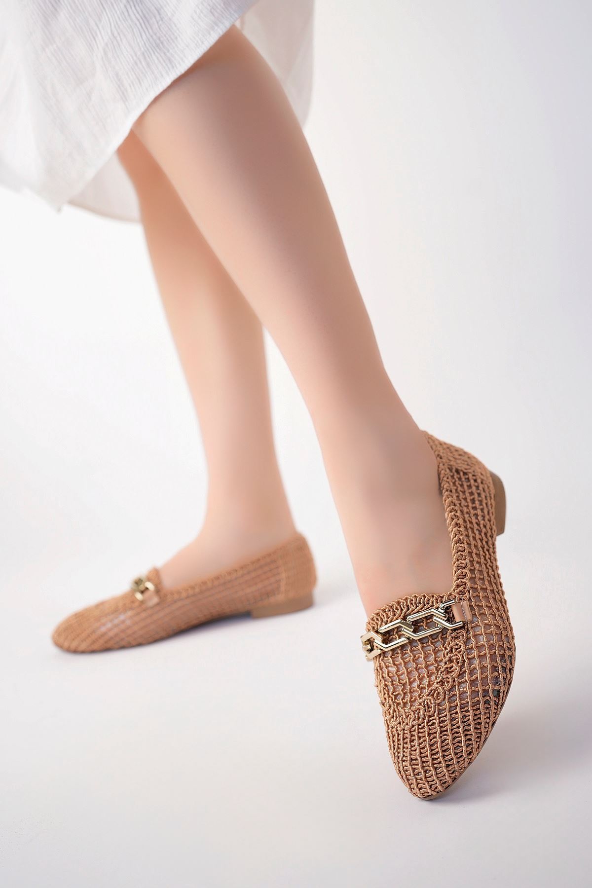 Örgülü Vizon Kadın Ayakkabı