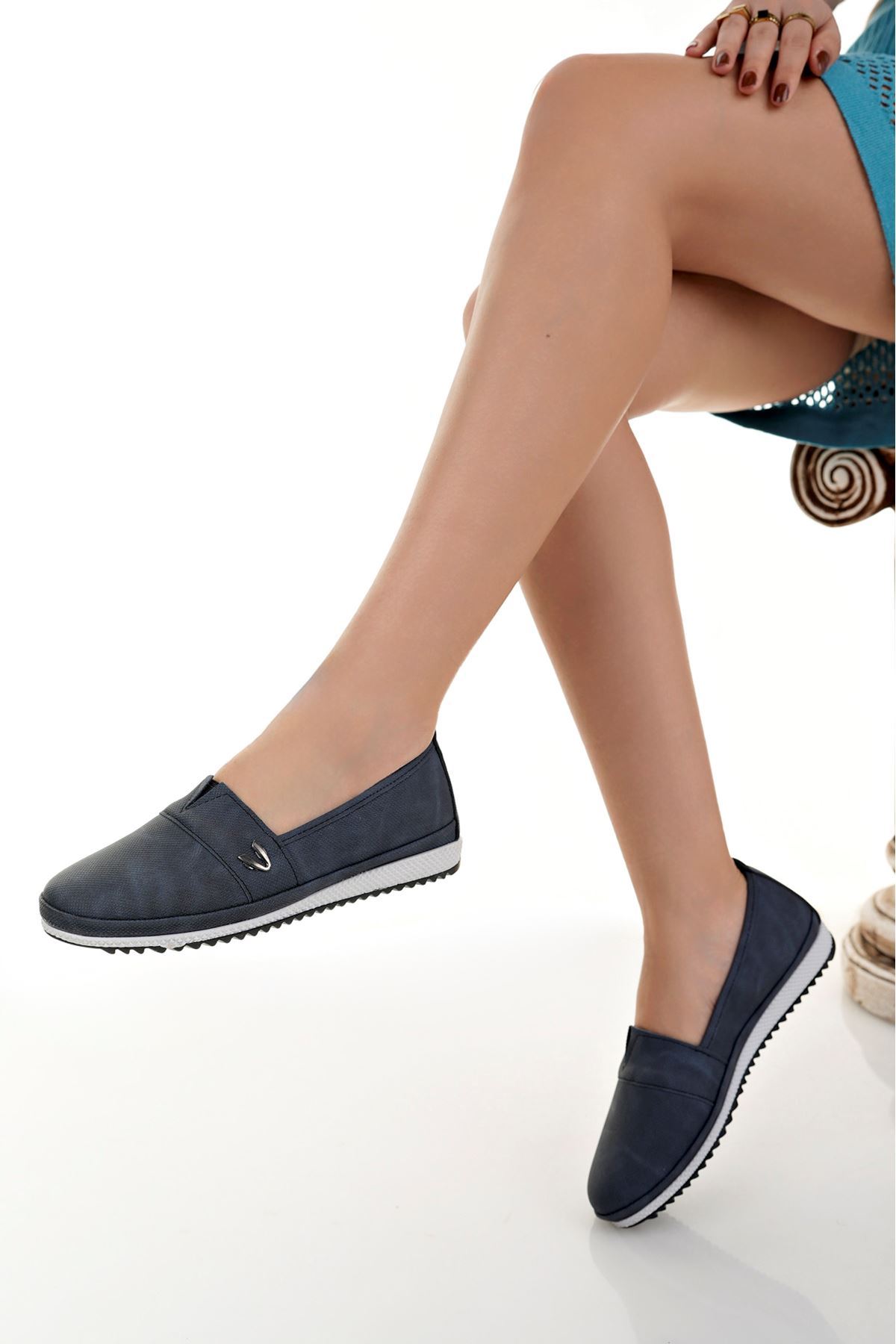 Ortapedik Taban Metal Detaylı Lacivert Kot Kadın Ayakkabı