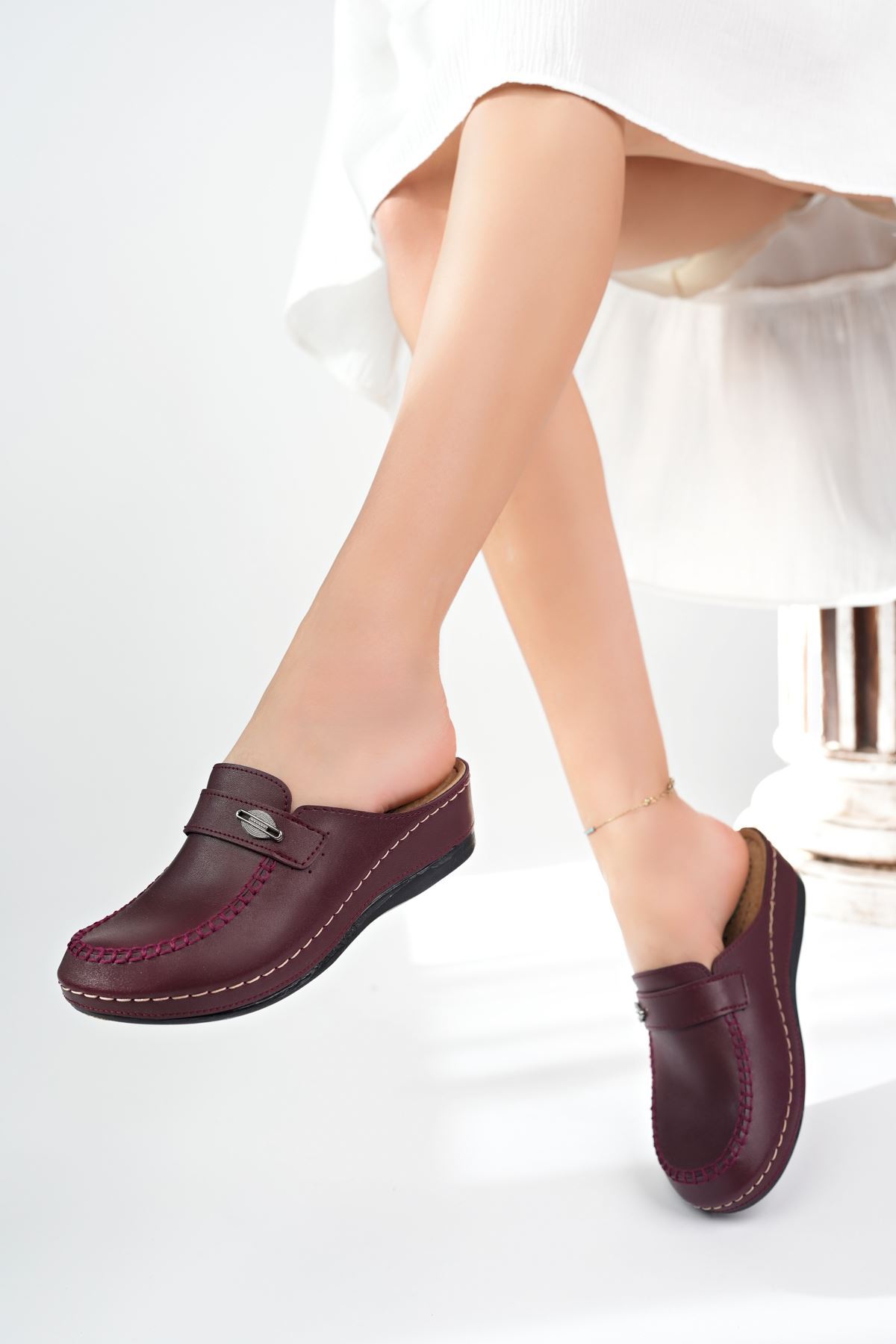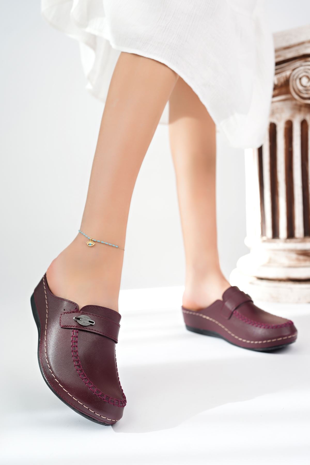 Ortapedik Taban Önü Kapalı Bordo Kadın Terlik