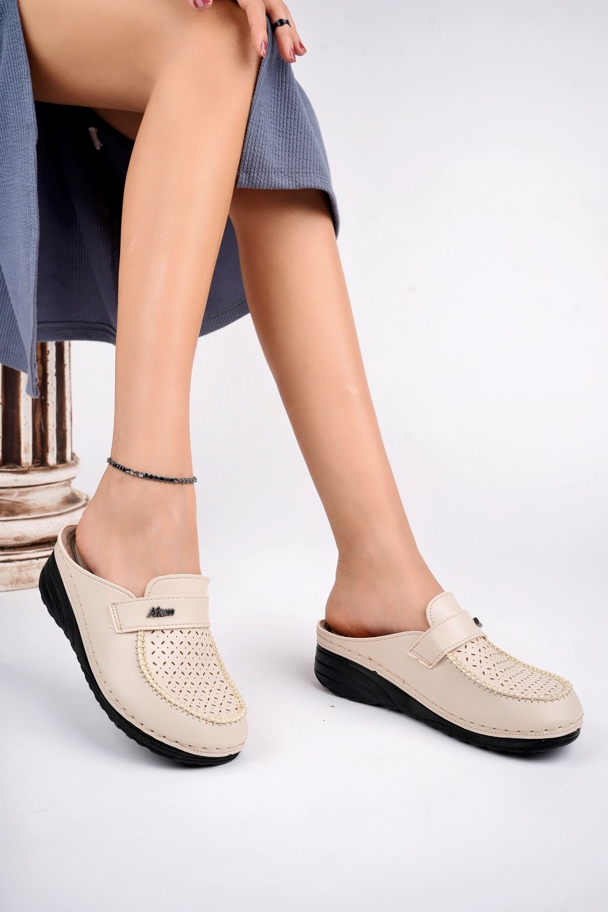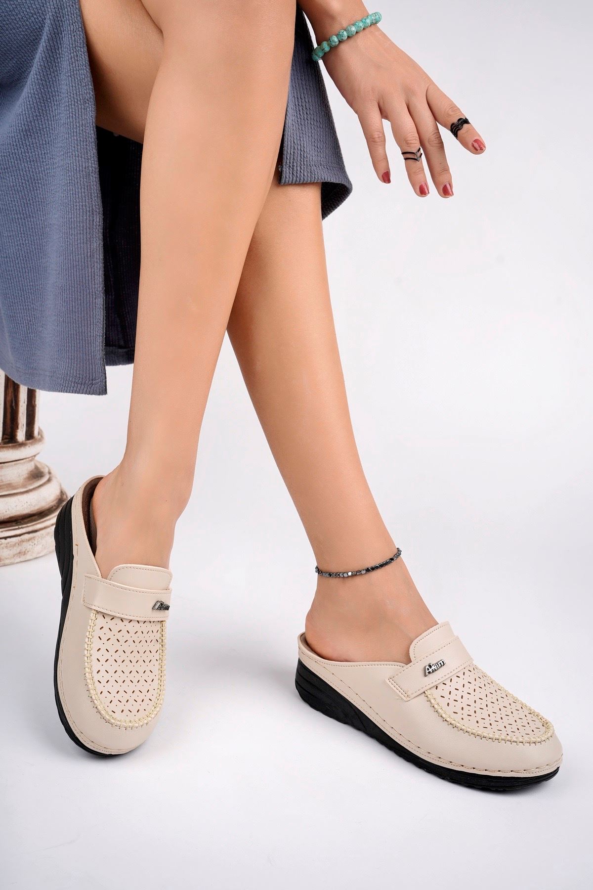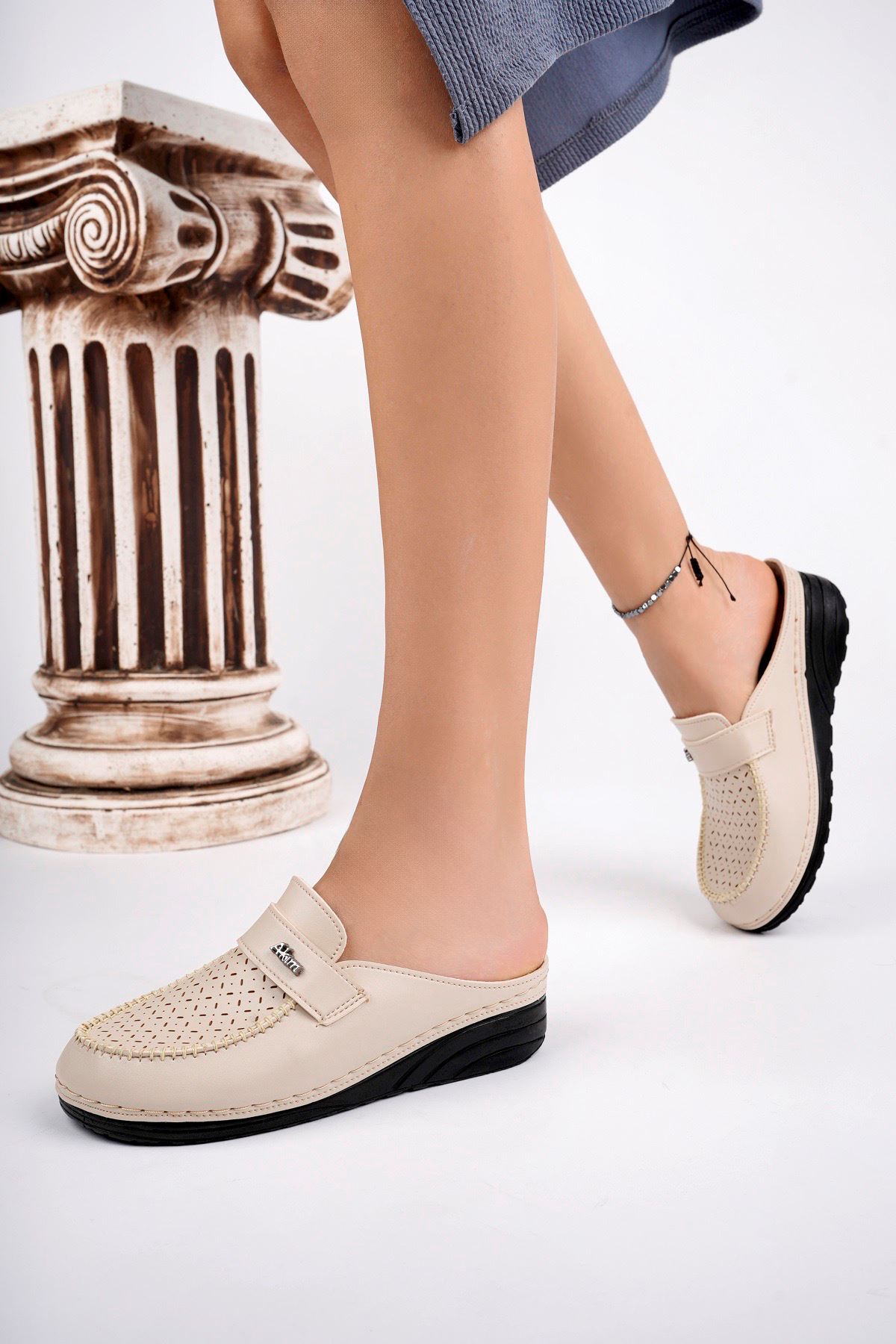 Ortapedik Taban Önü Kapalı Krem Kadın Terlik