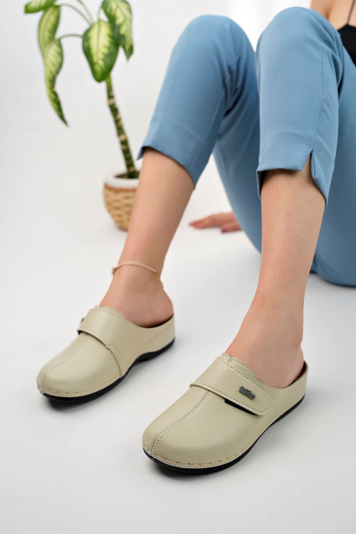 Ortopedik Ped Burnu Kapalı Cırtlı Krem Terlik