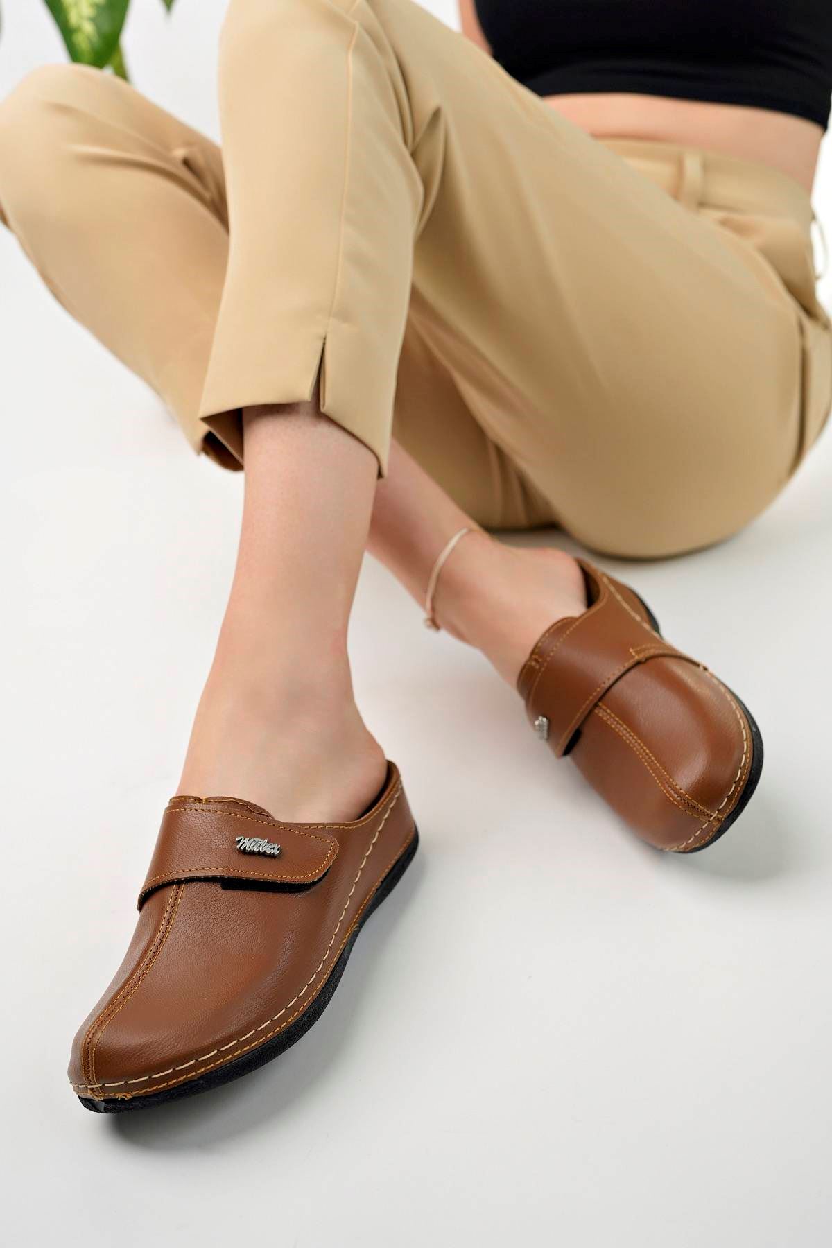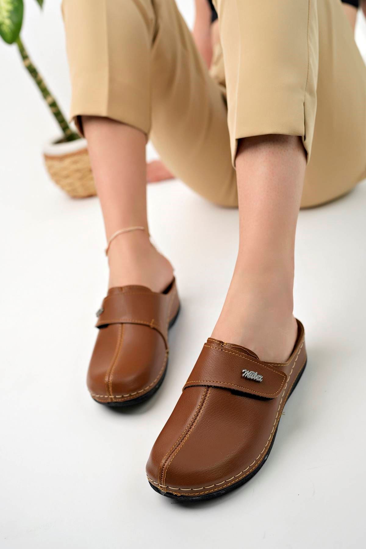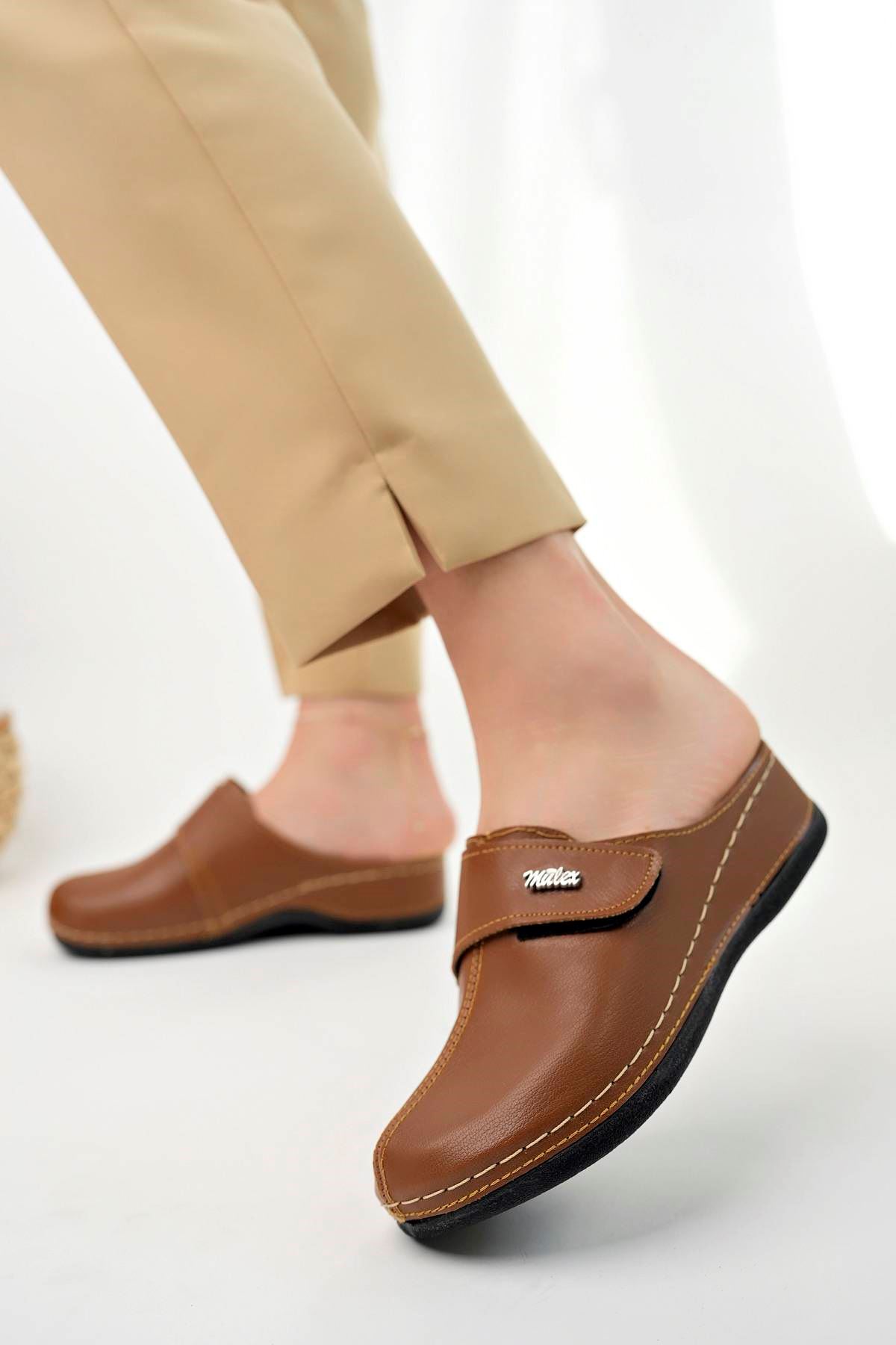 Ortopedik Ped Burnu Kapalı Cırtlı Taba Terlik