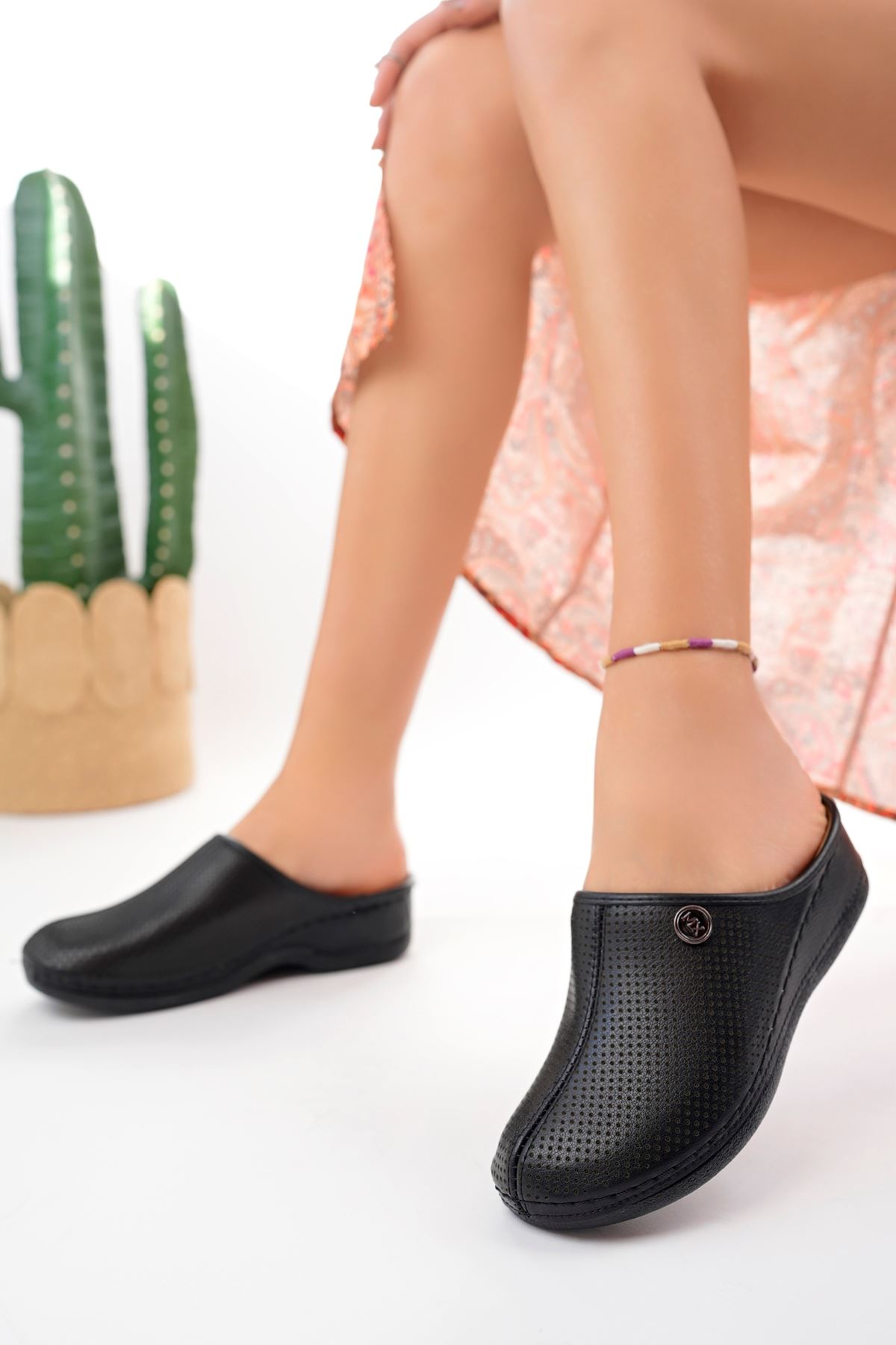 Ortopedik Ped Burnu Kapalı Siyah Terlik
