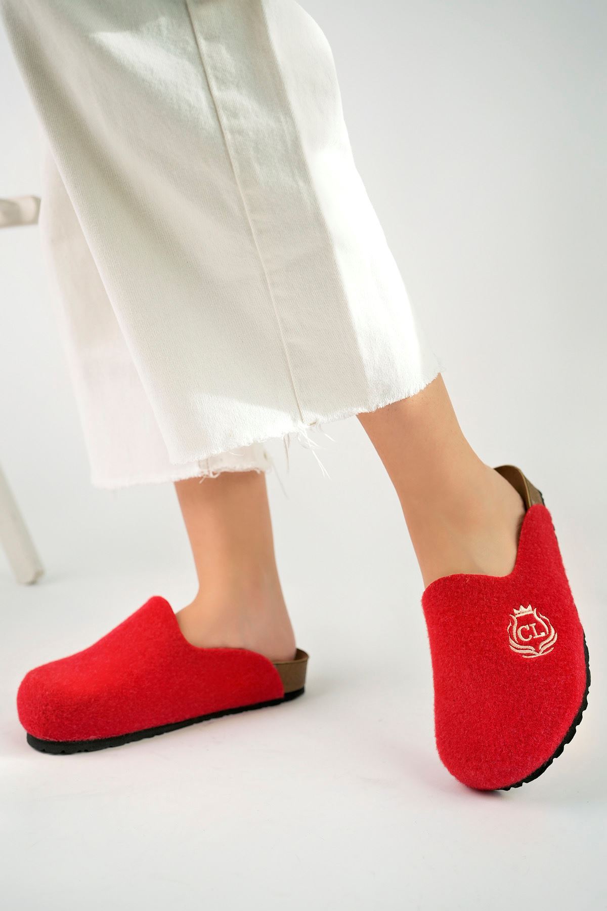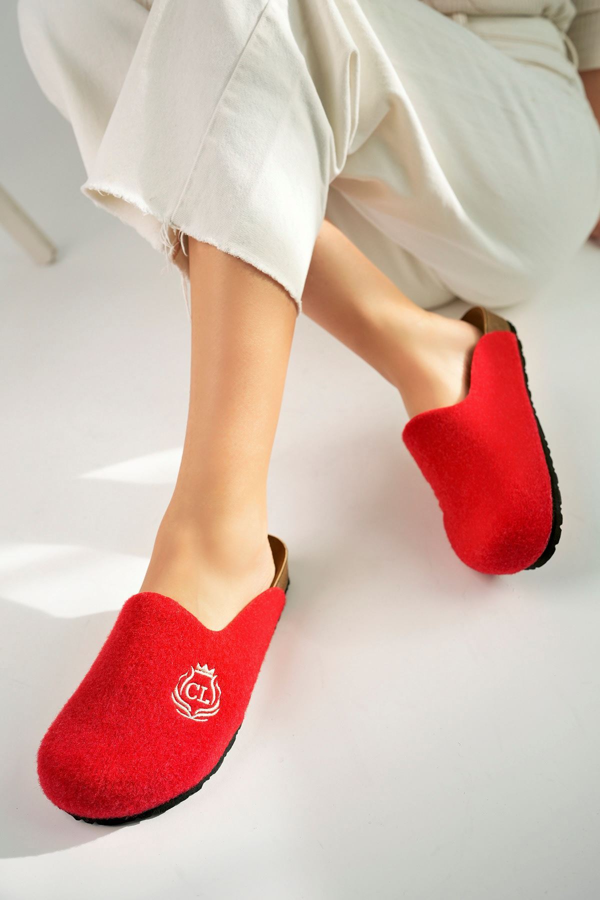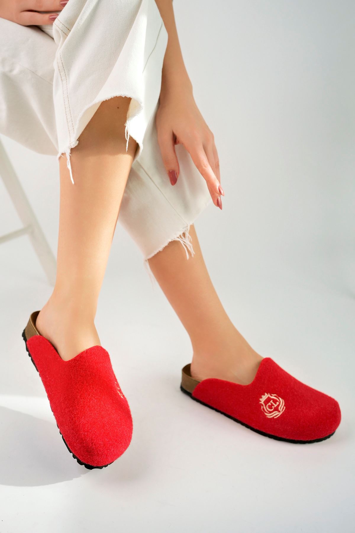 Ortopedik Taban Burnu Kapalı Kırmızı Kadın Terlik