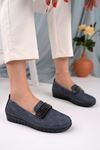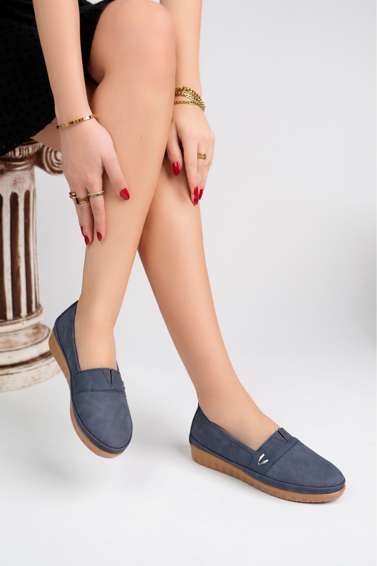 Ortopedik Taban V Tokalı Lacivert Kot Ayakkabı