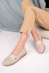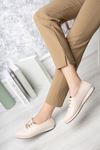 Dolgu Taban Önü Açık Krem Cilt Kadın Ayakkabı