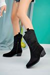 Pikolu Siyah Süet Kovboy Çizme