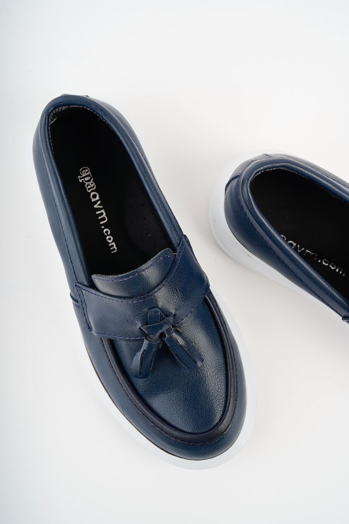 Püsküllü Lacivert Cilt Erkek Çocuk Ayakkabı