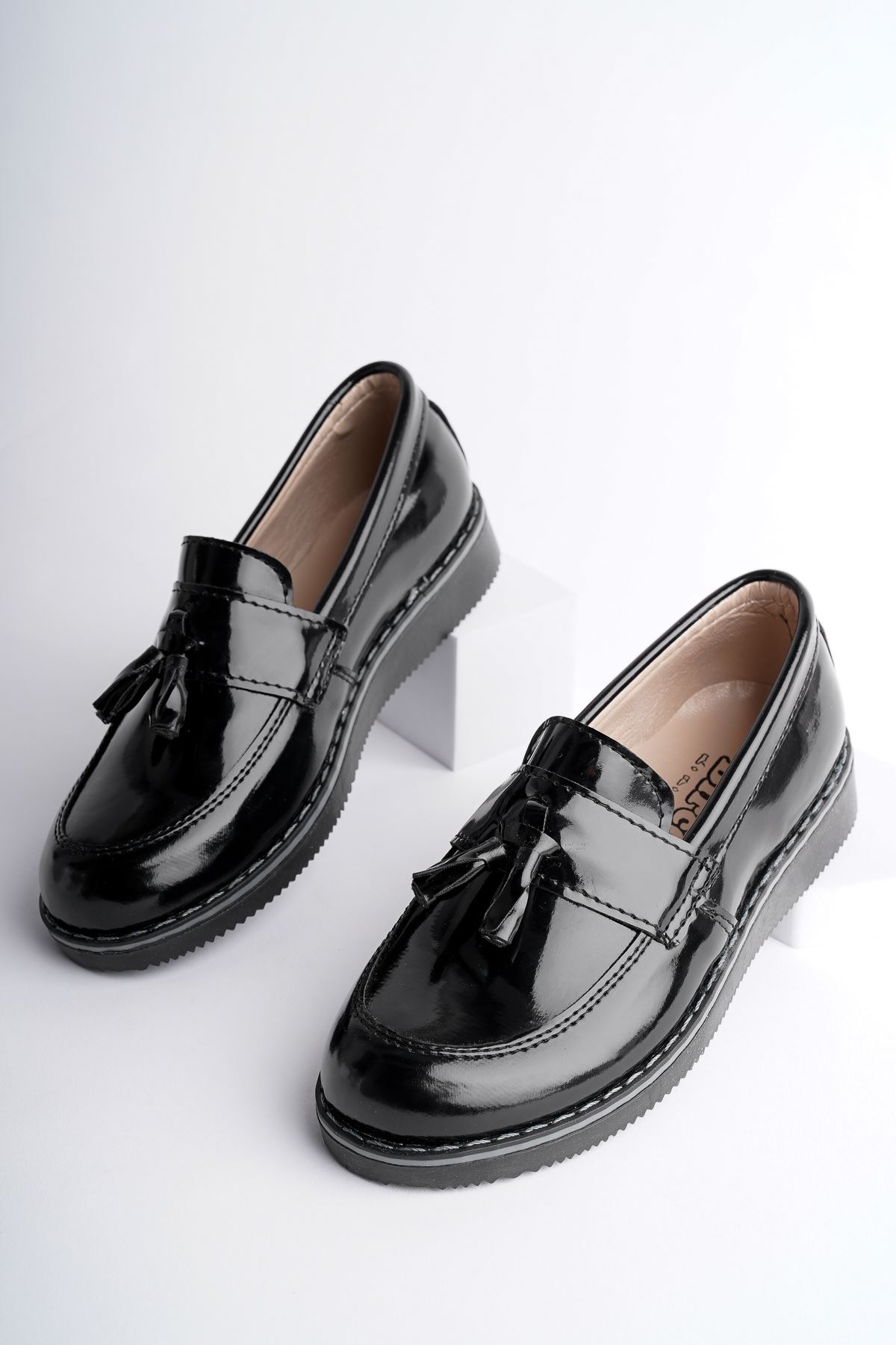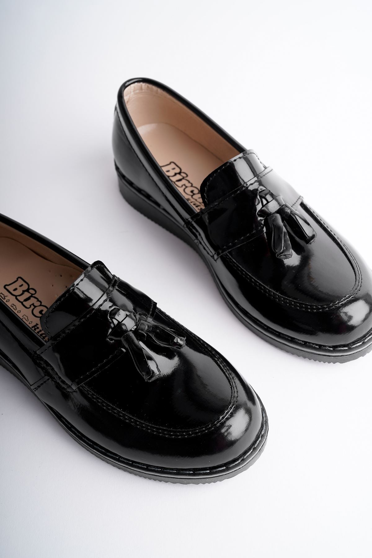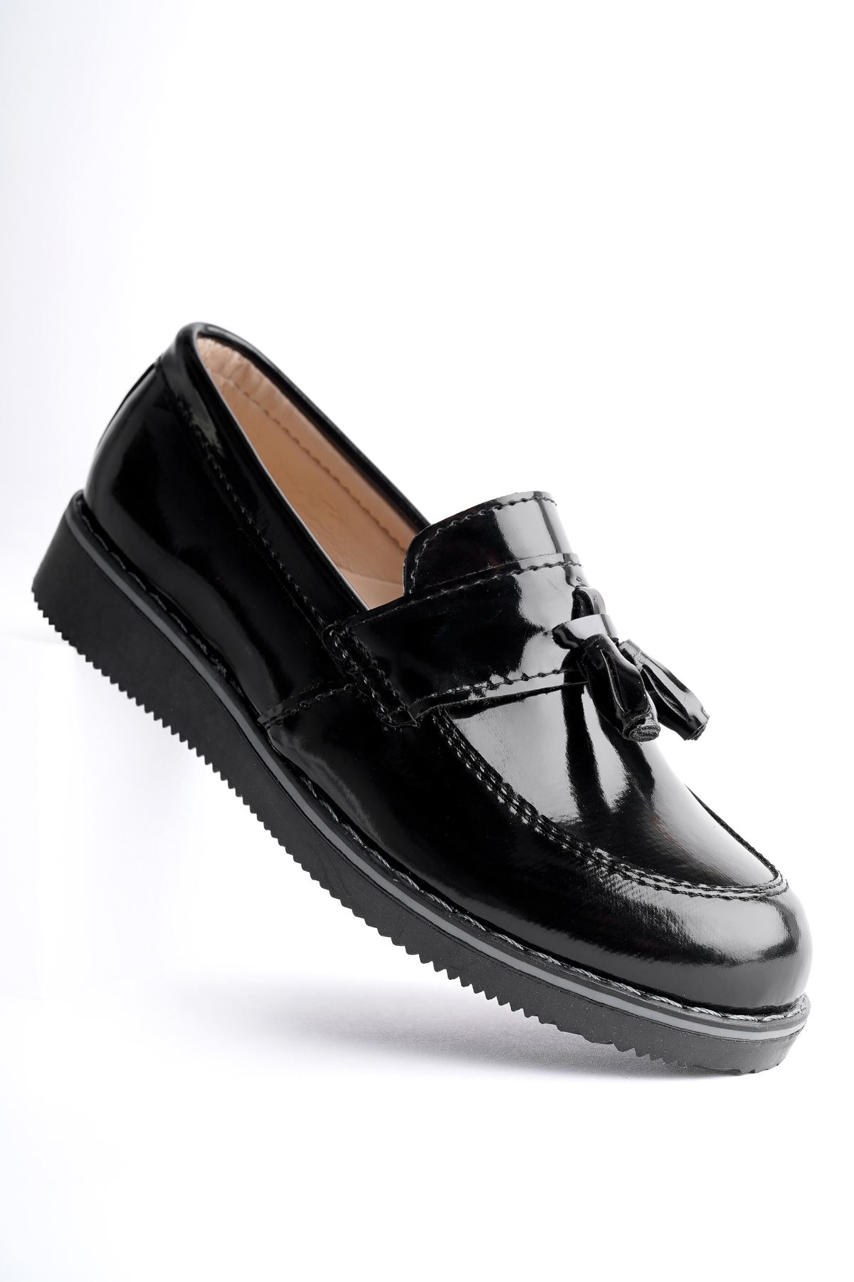 Püsküllü Ortapedik Termo Taban Siyah Rugan Erkek Çocuk Ayakkabı