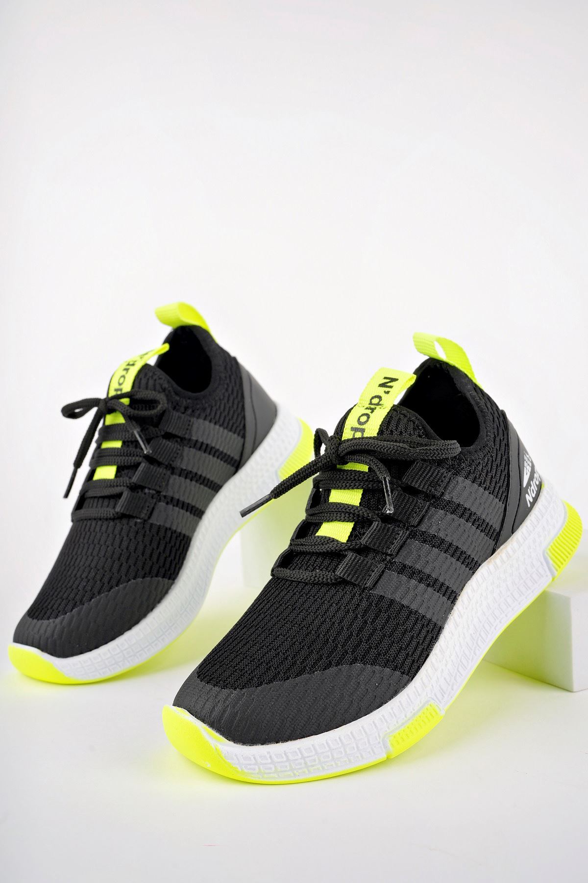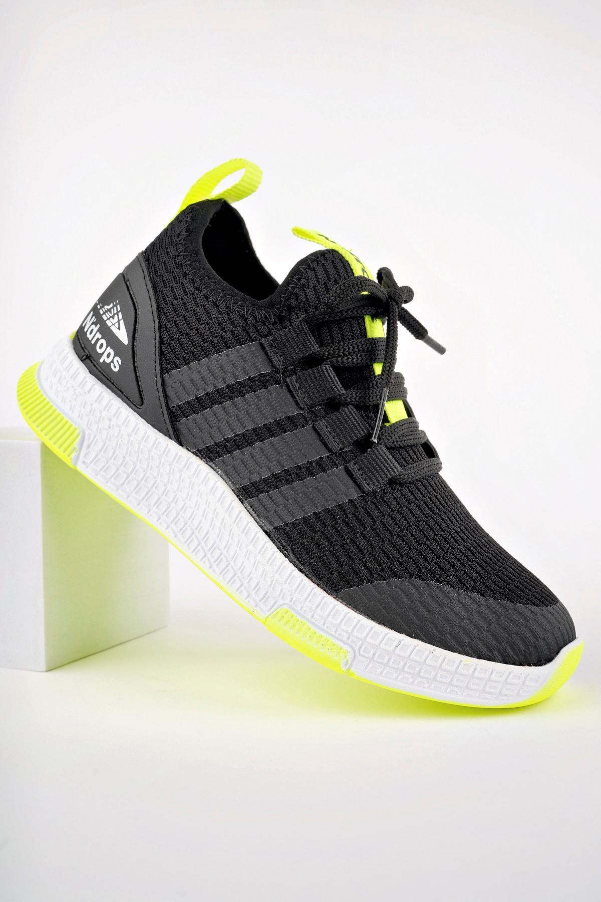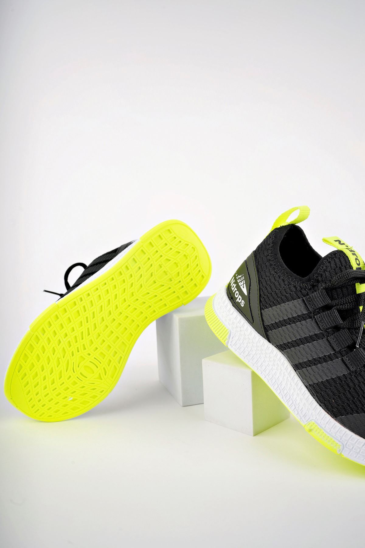 Sarı Garnili Siyah Çocuk Spor Ayakkabı