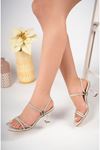 Şeffaf Kadeh Ökçe Platin Terlik Sandalet