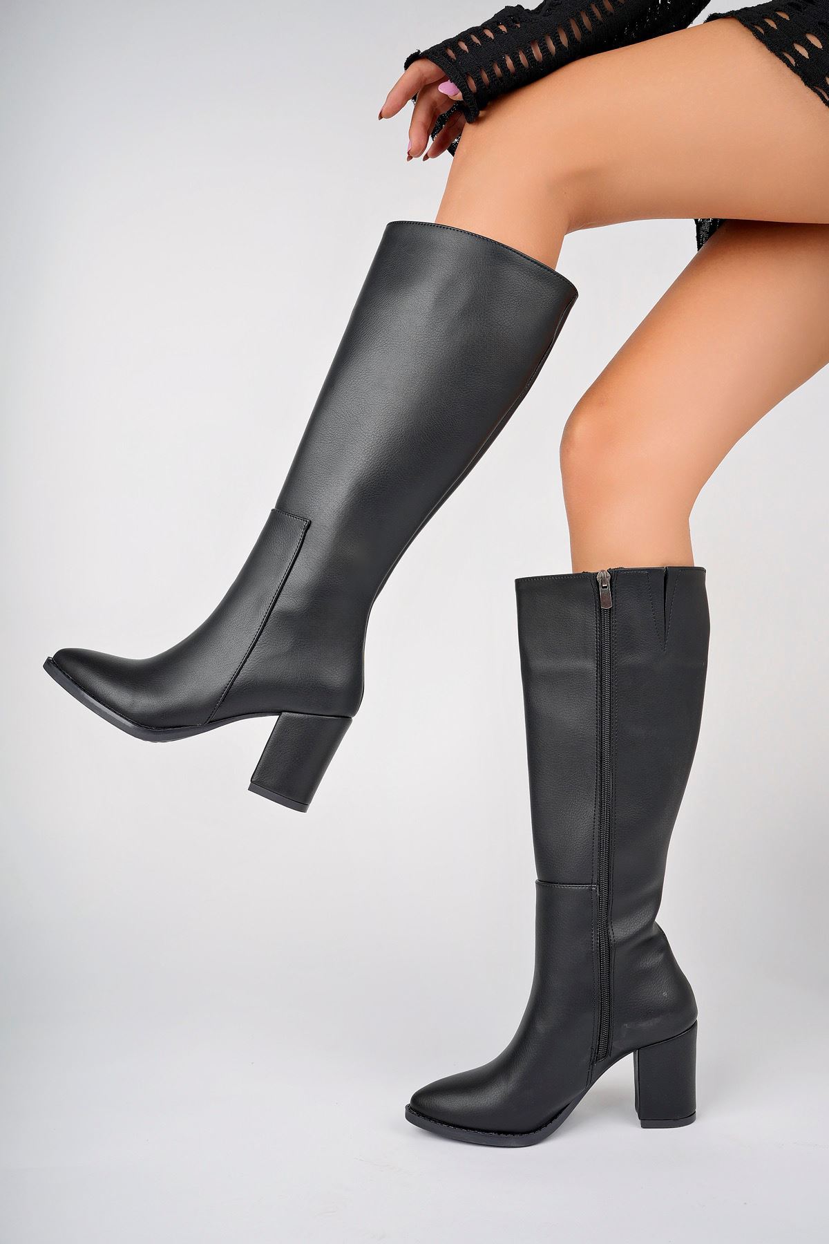Sivri Kalıp Siyah Cilt Kadın Çizme