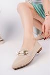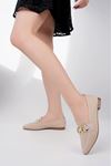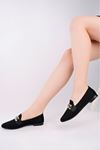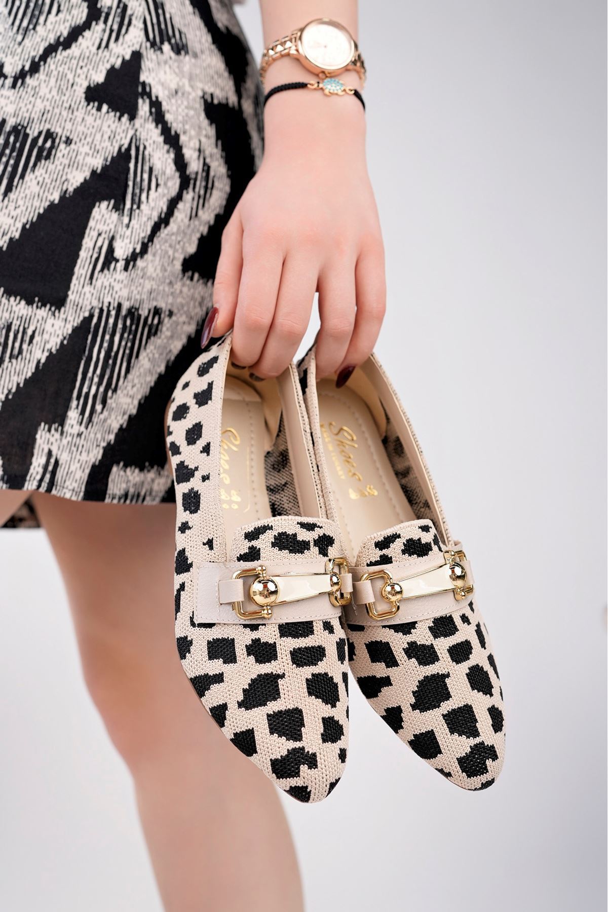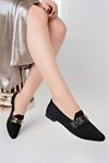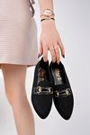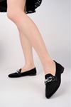 Sivri Kalıp Siyah Garnili Krem Tokalı Triko Ayakkabı