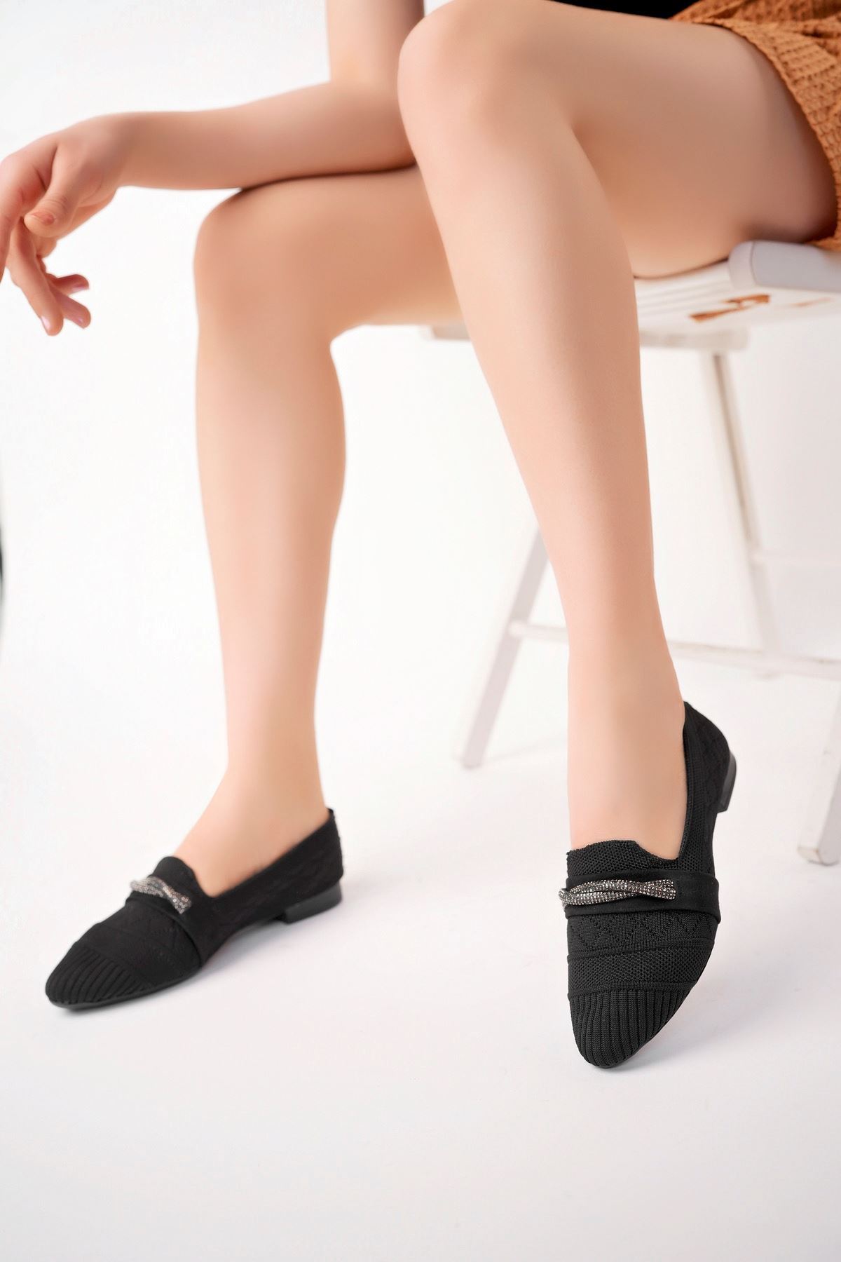 Sivri Kalıp Siyah Triko Ayakkabı