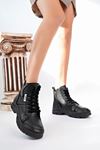 Dolgu Taban Siyah Kot Kadın Ayakkabı