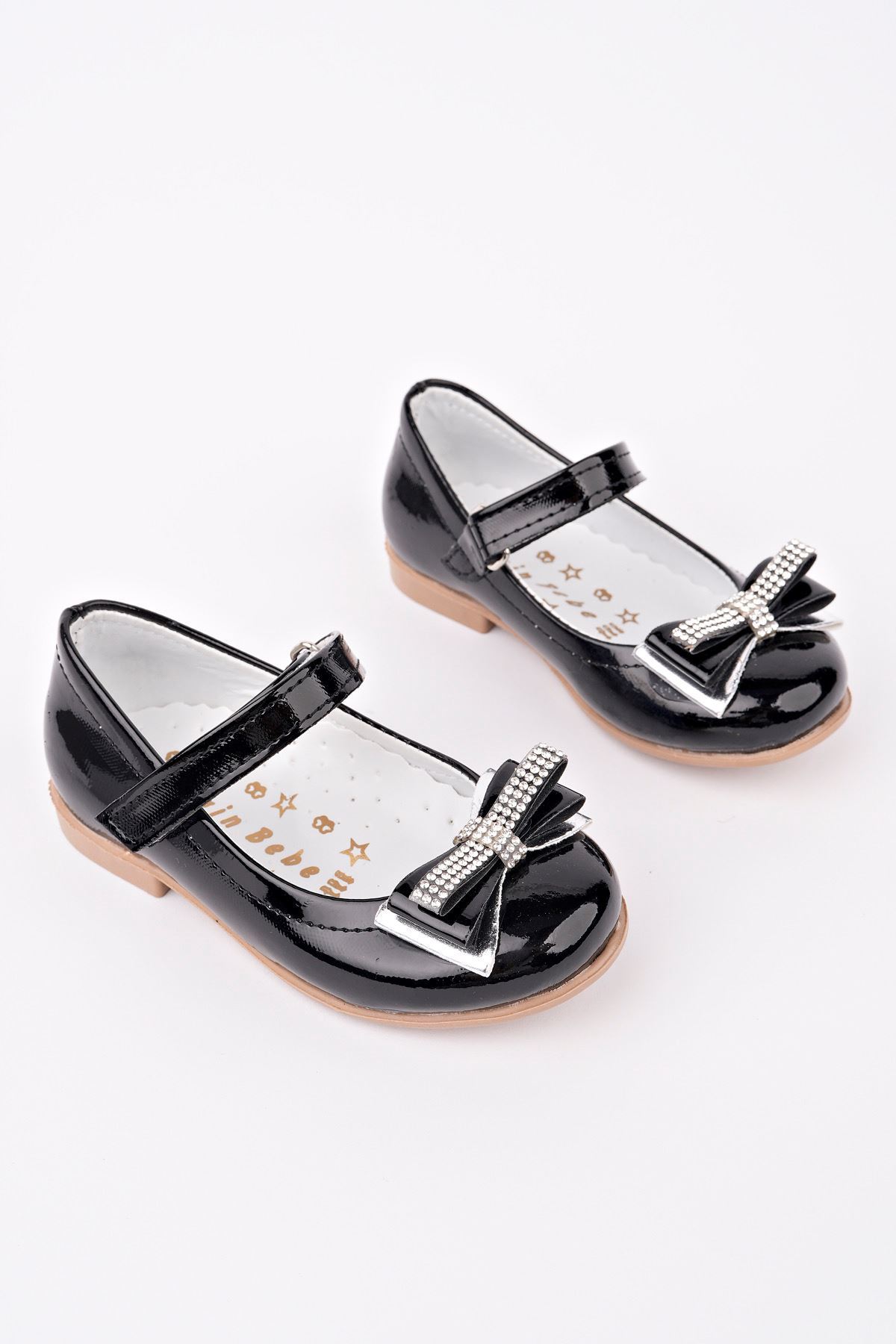 Siyah Rugan Kız Bebe Ayakkabı