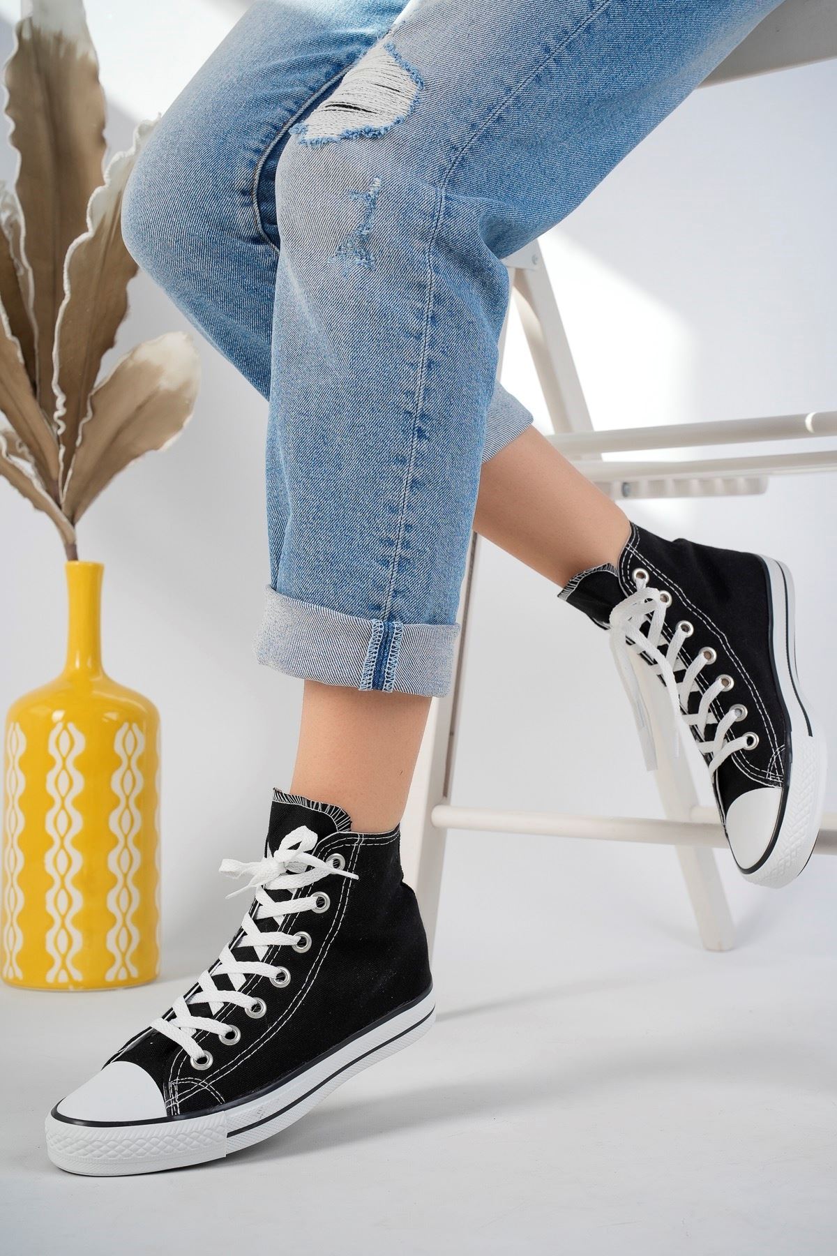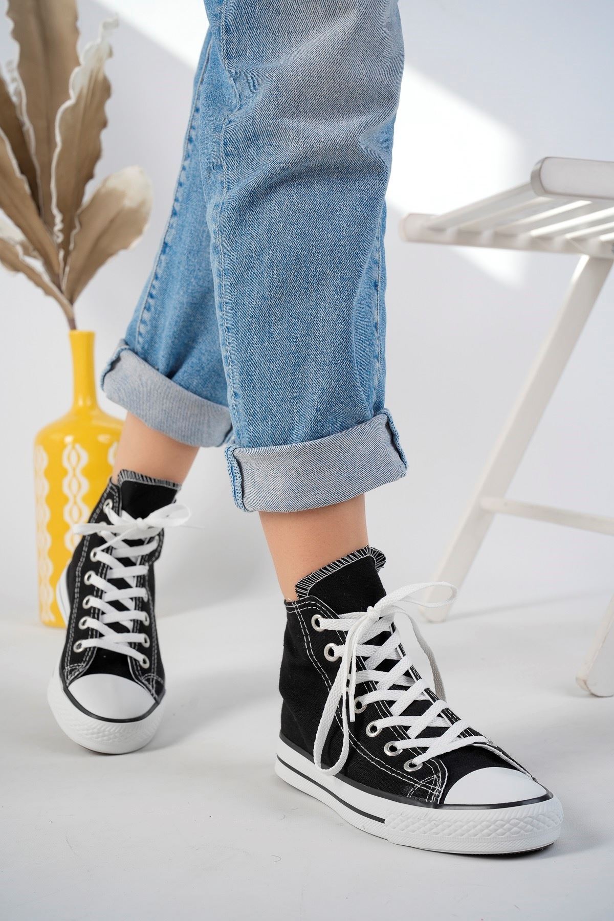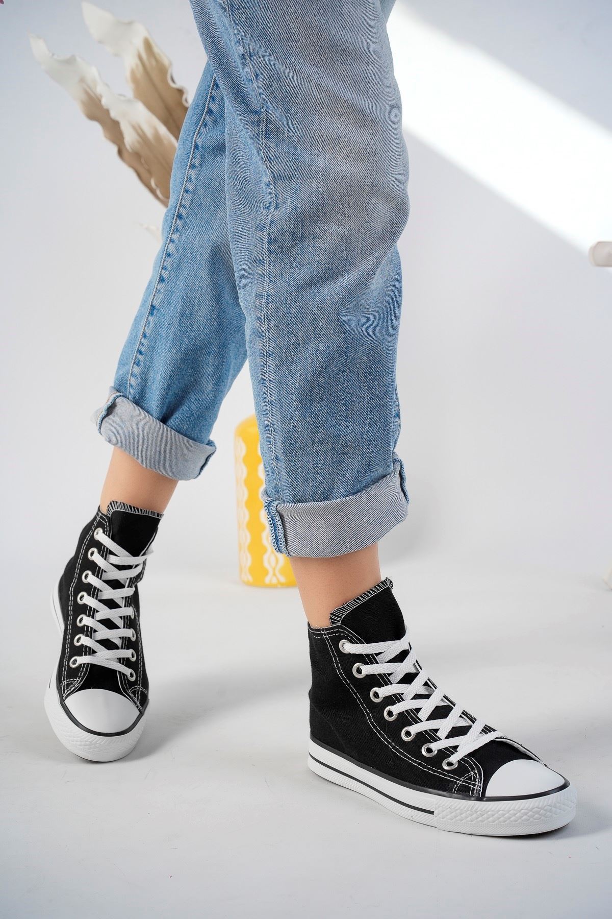 Siyah Uzun Keten Spor Ayakkabı