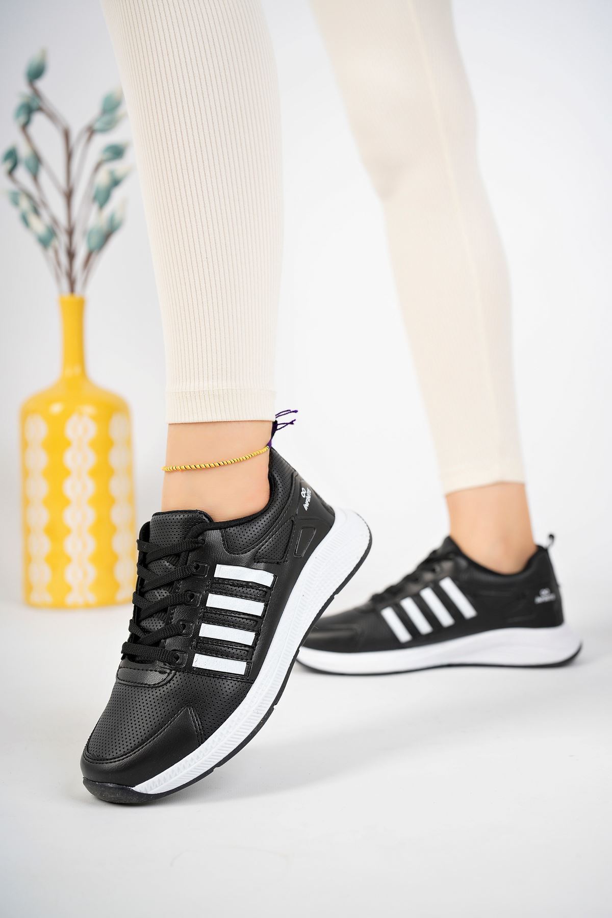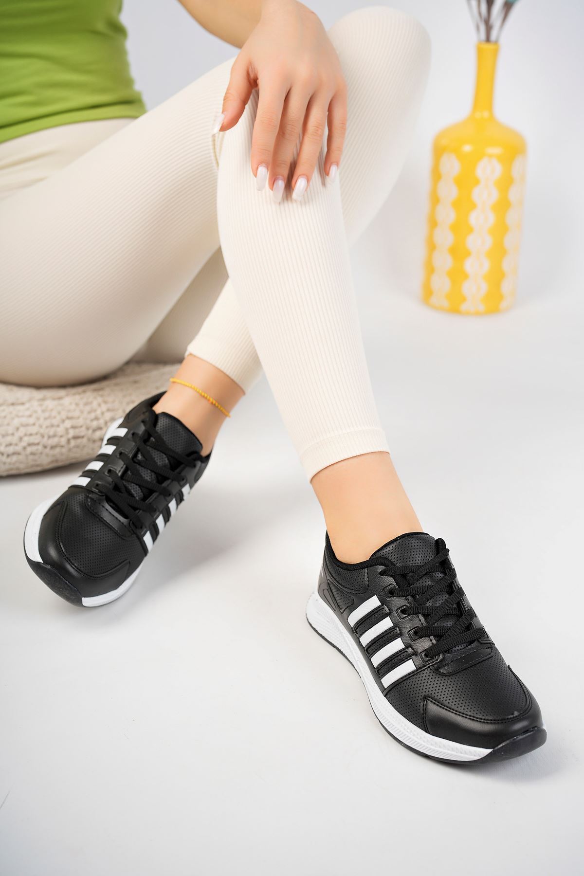 Siyaha Beyaz Şeritli Spor Ayakkabı