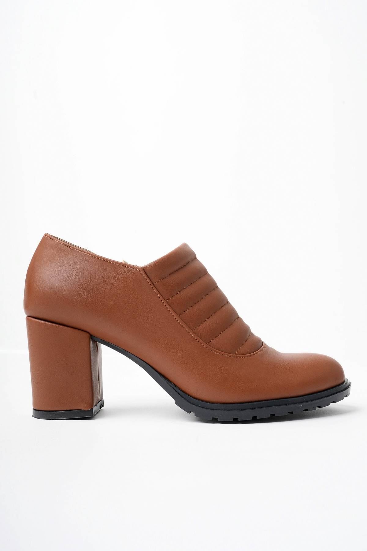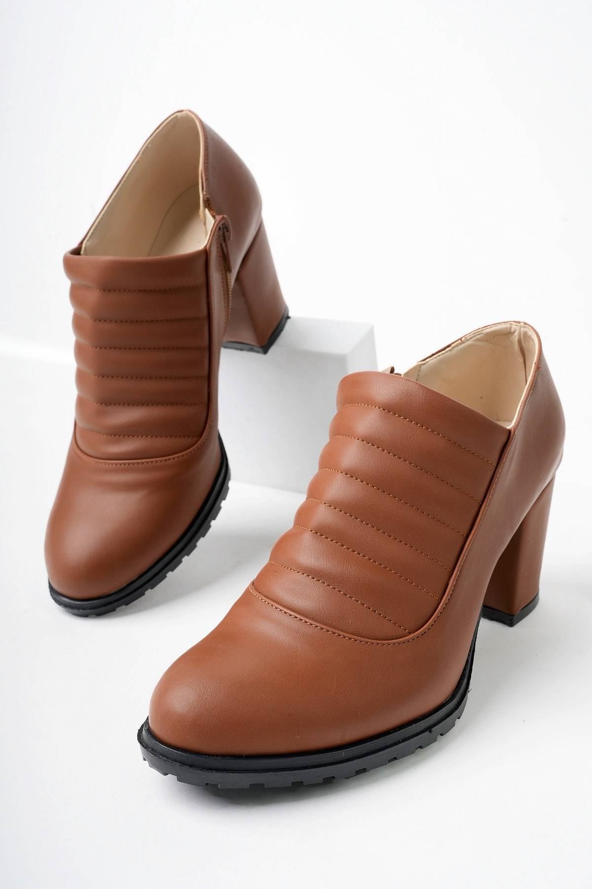 Dolgu Taban Yandan Fermuarlı Nut Cilt Ayakkabı
