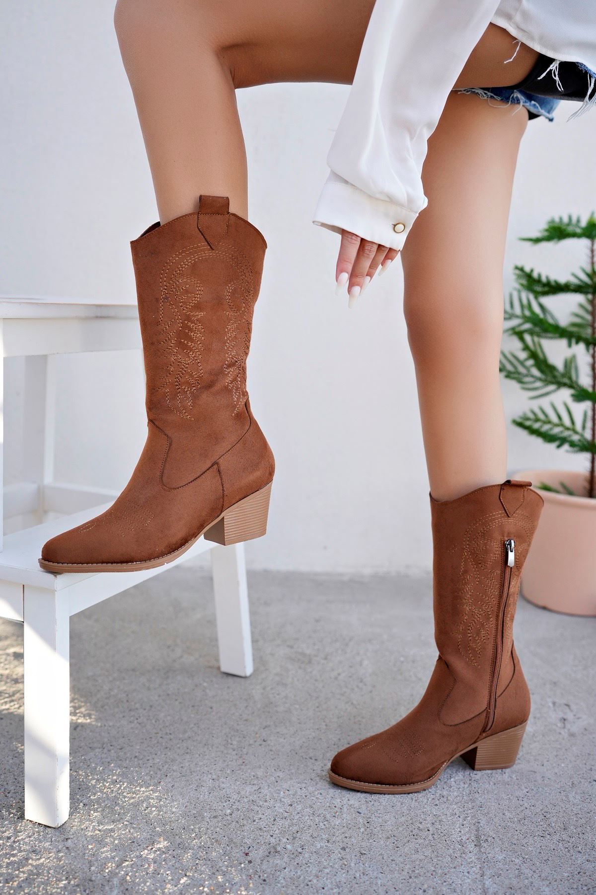 Taba Süet Kadın Kovboy Çizme