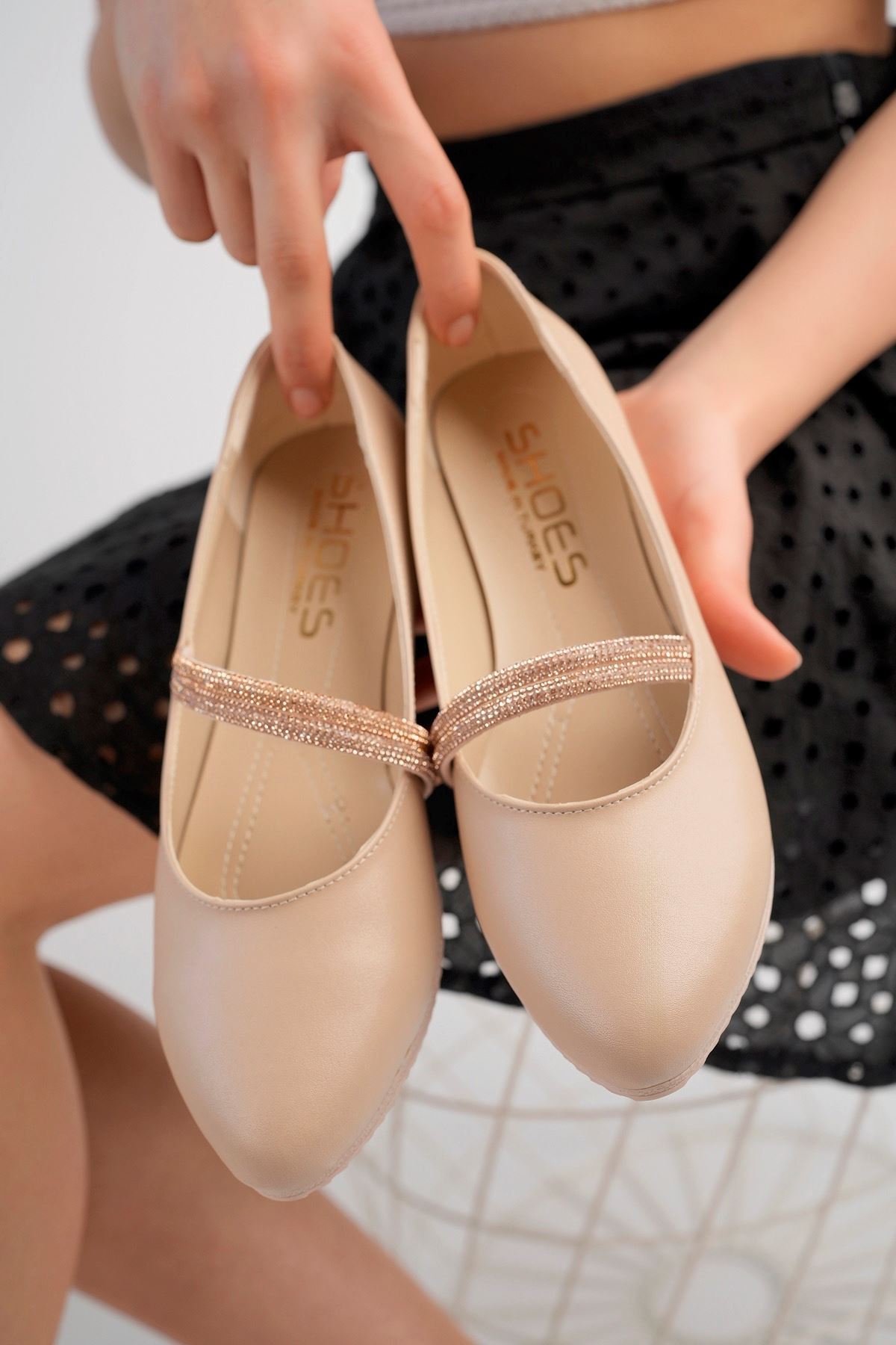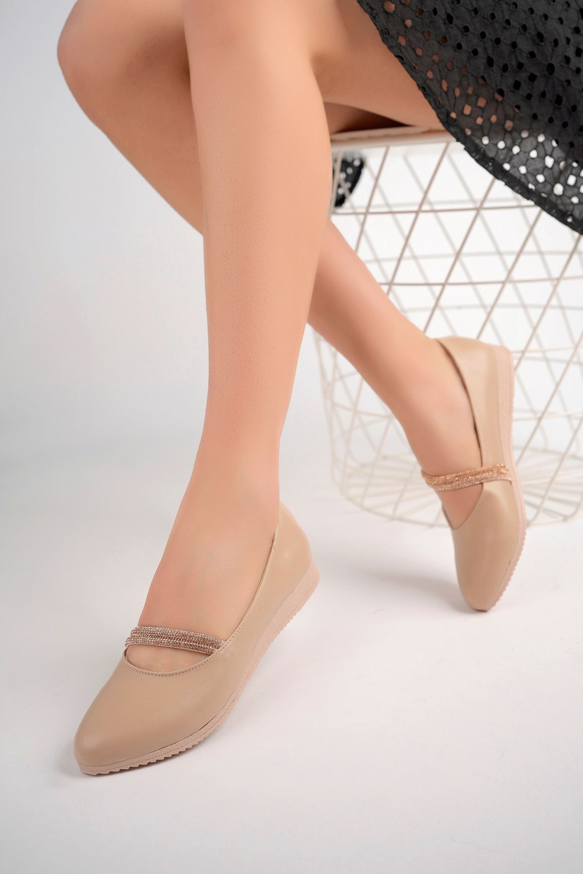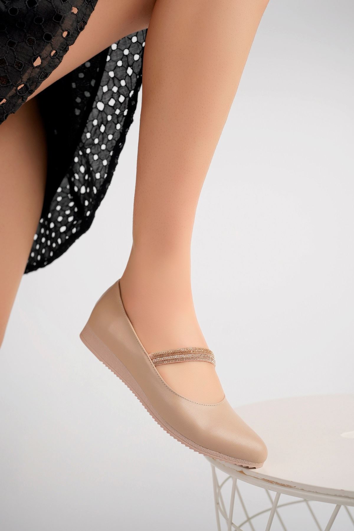Dolgu Taban Önü ve Yanı Açık Dekolte Nut Cilt Ayakkabı